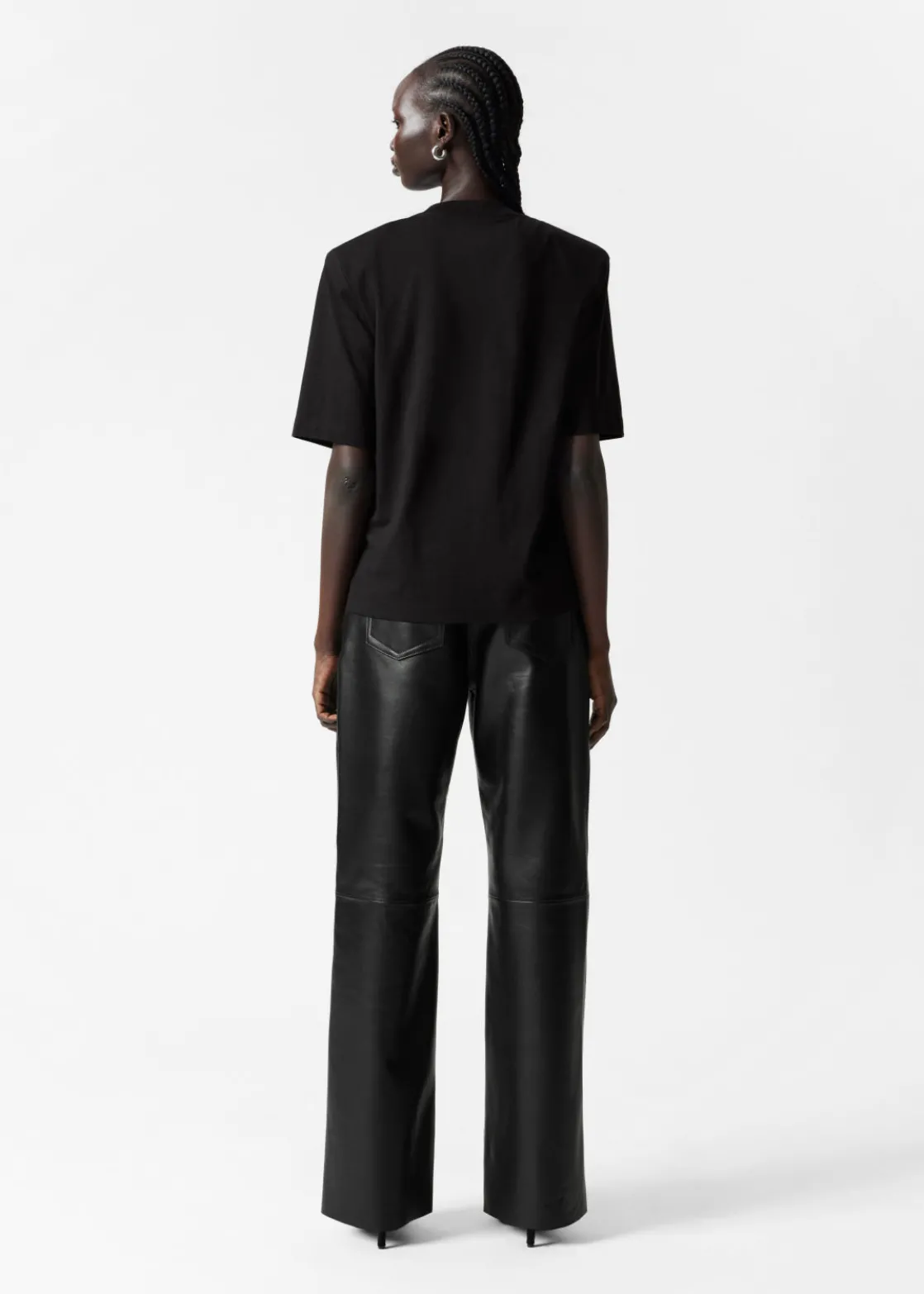 Classic crewneck t-shirt made from cotton. Featuring washable shoulder pads.
