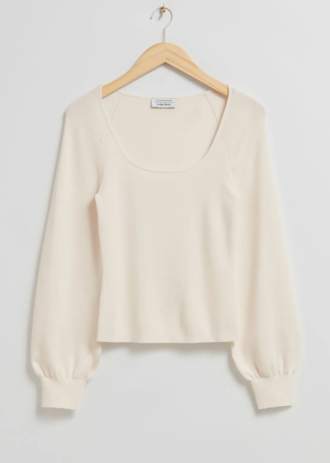 Slim-fit top with long raglan sleeves and a deep round neckline in a soft wool finish.