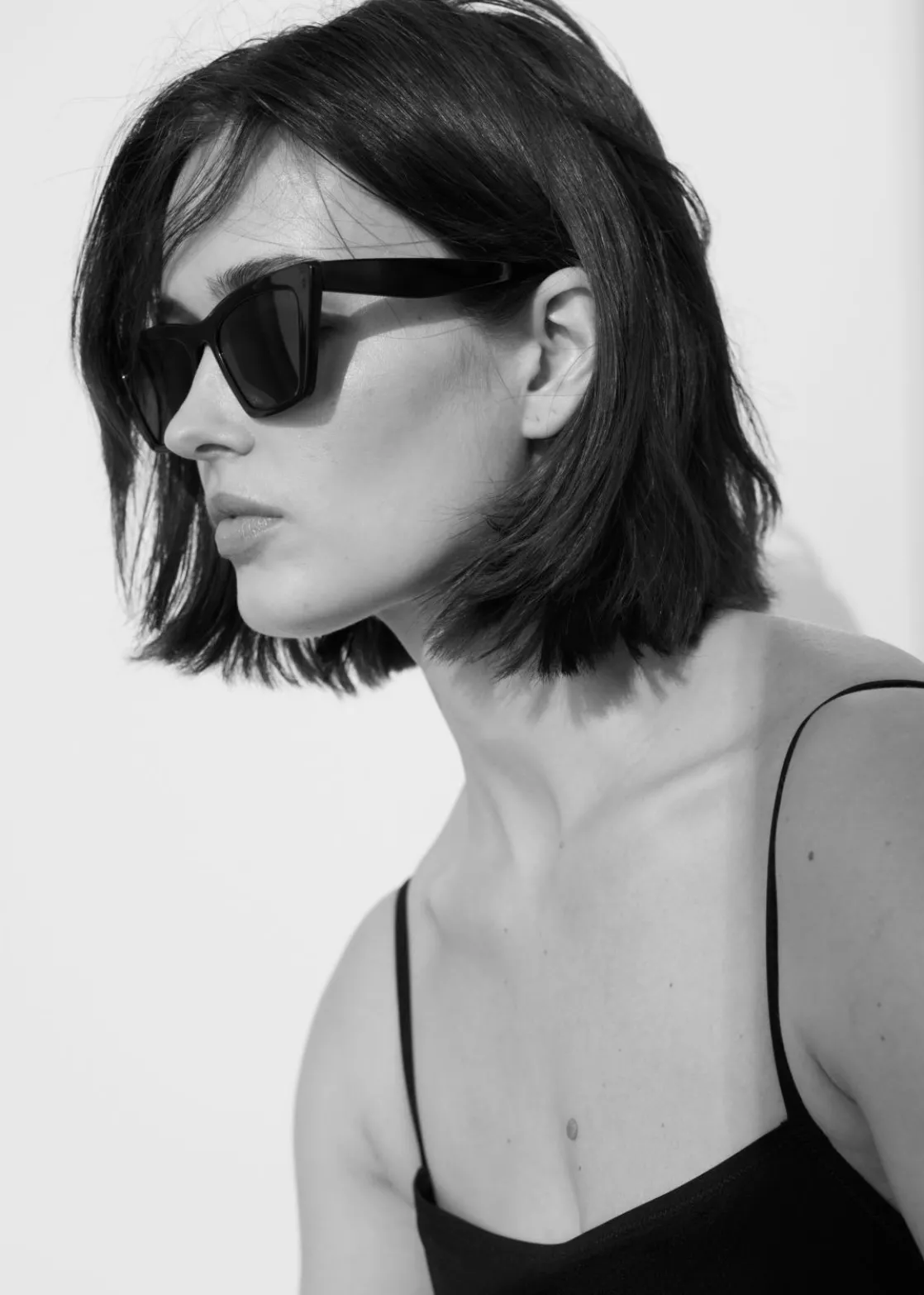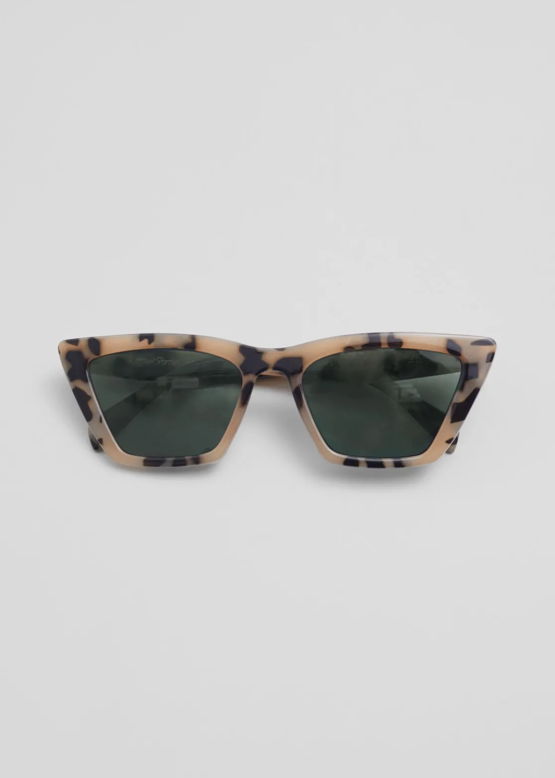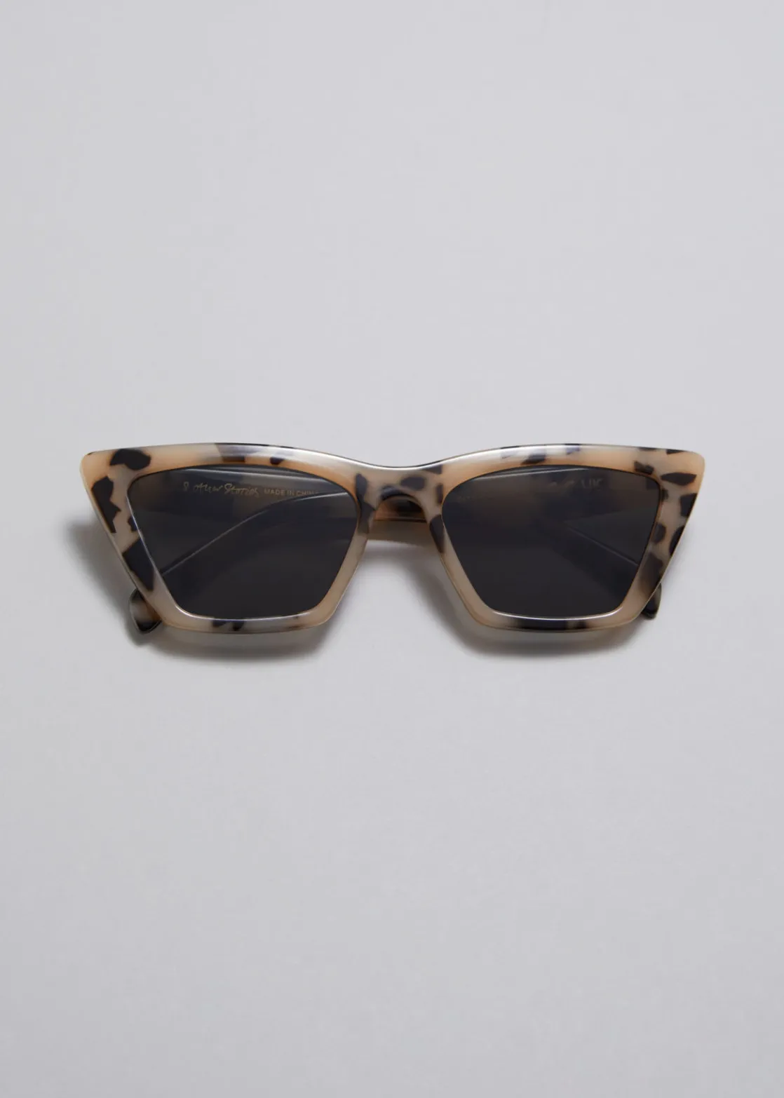 Angular cat eye sunglasses with pointed edge temples.