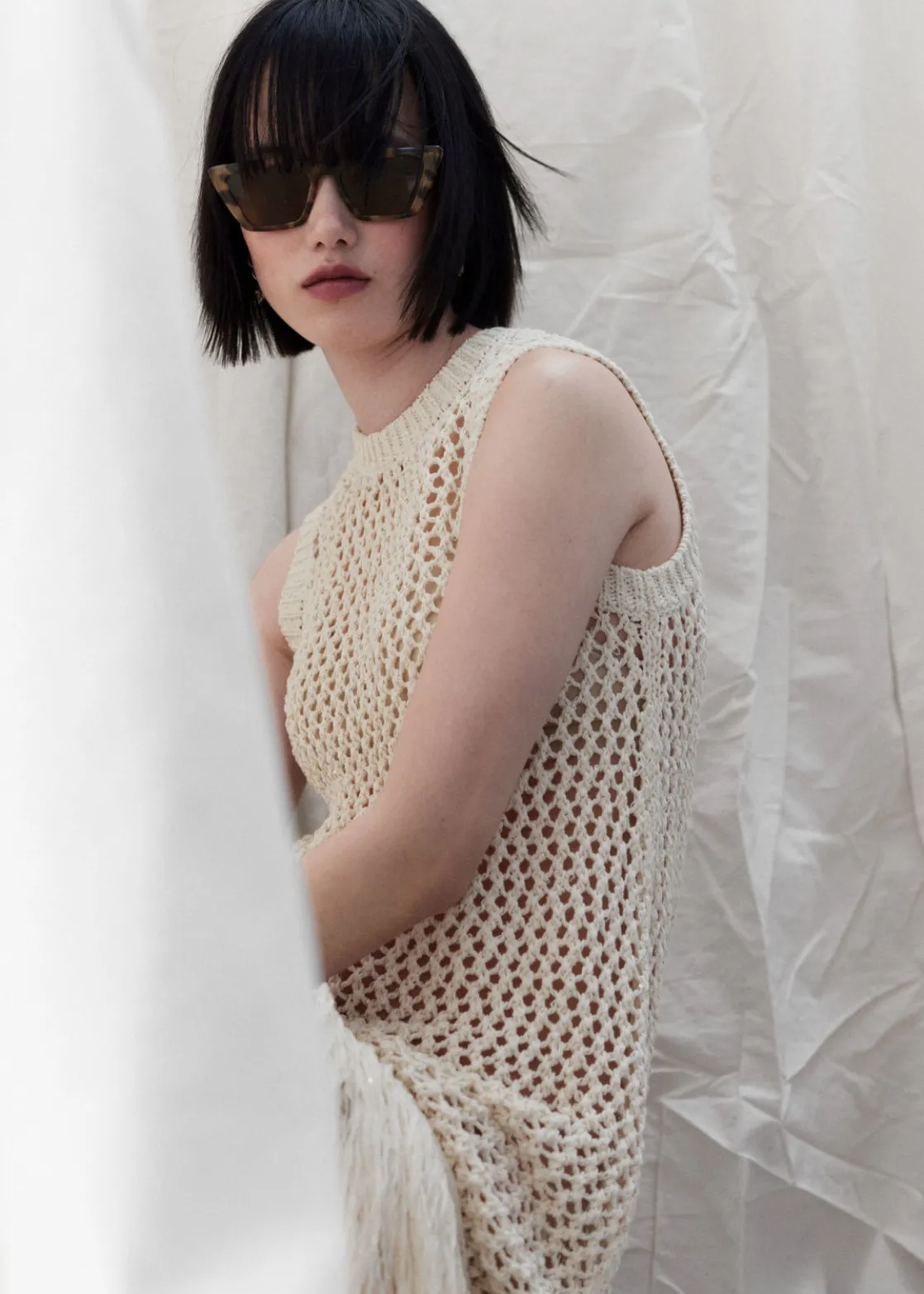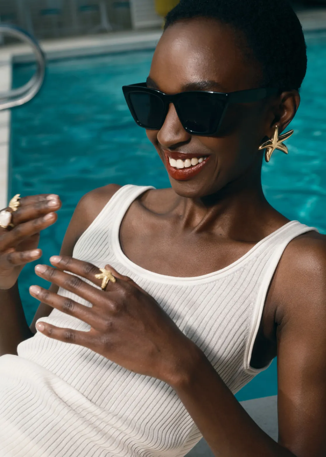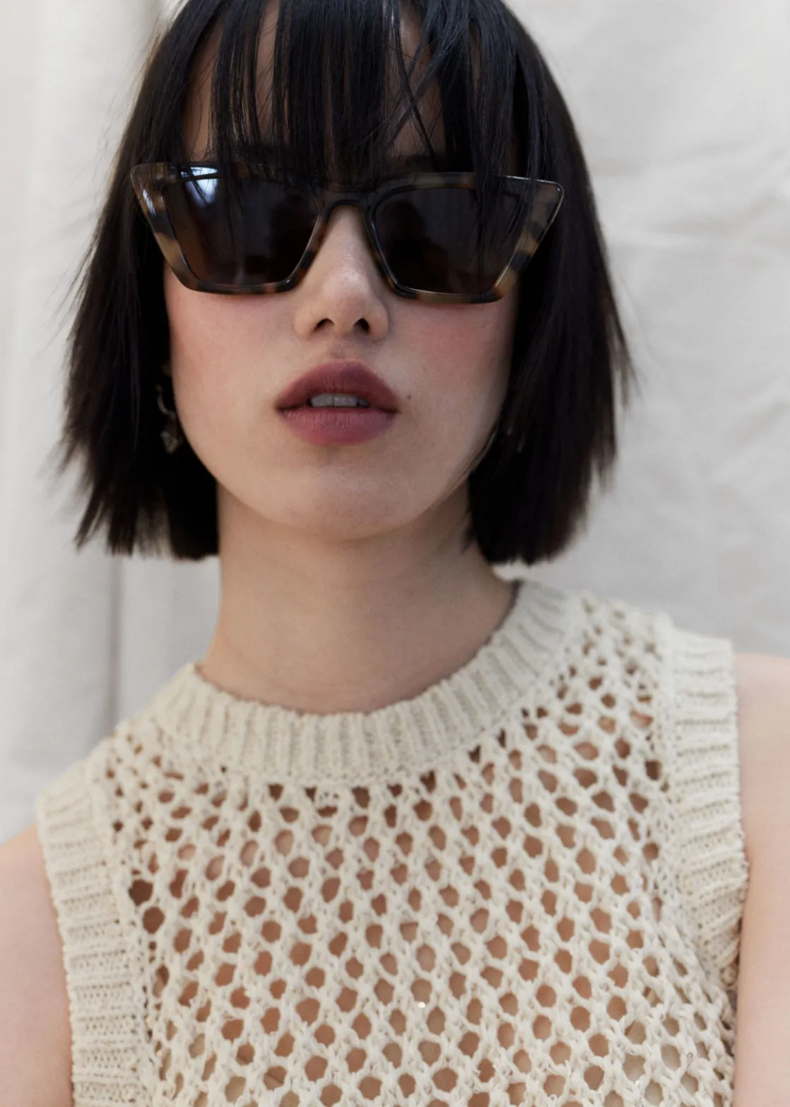 Angular cat eye sunglasses with pointed edge temples.
