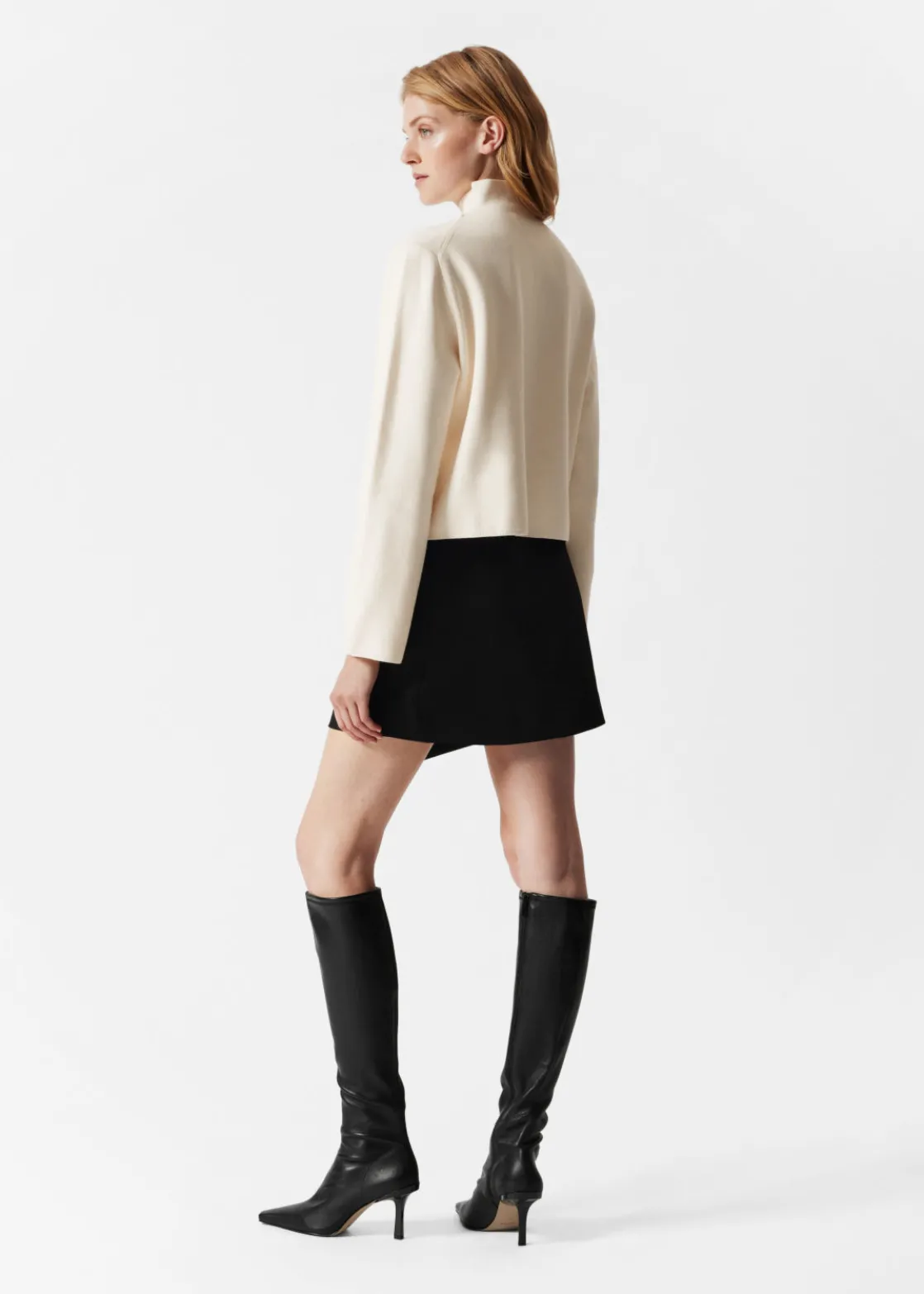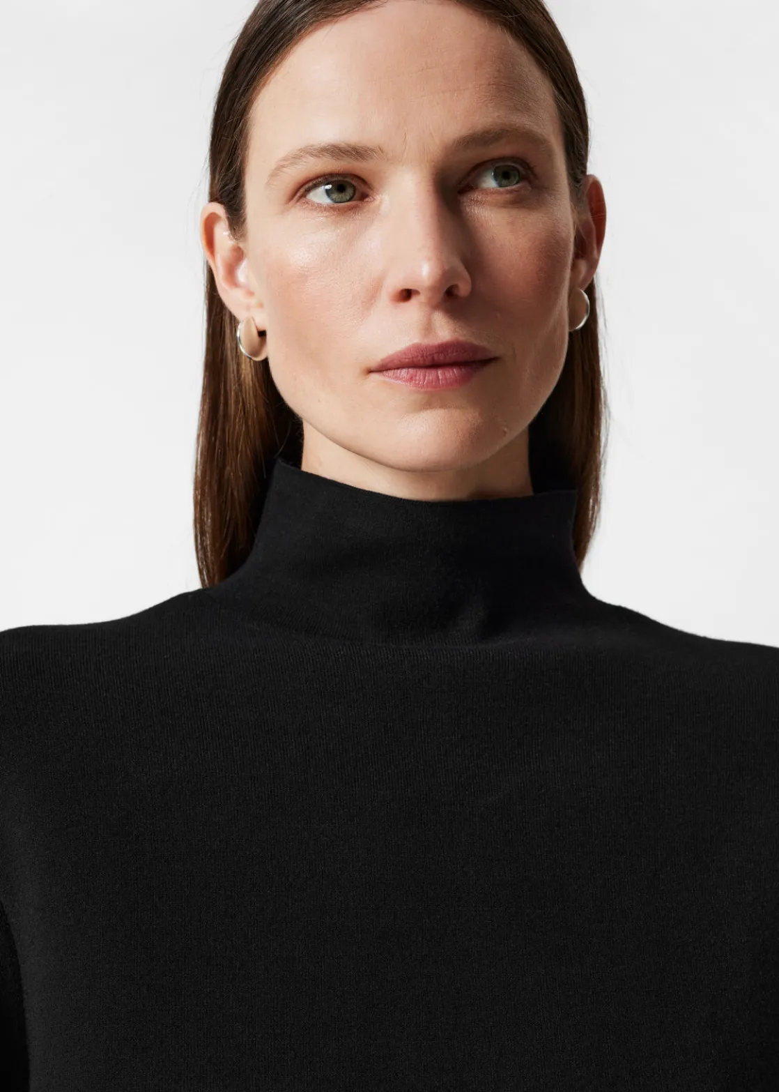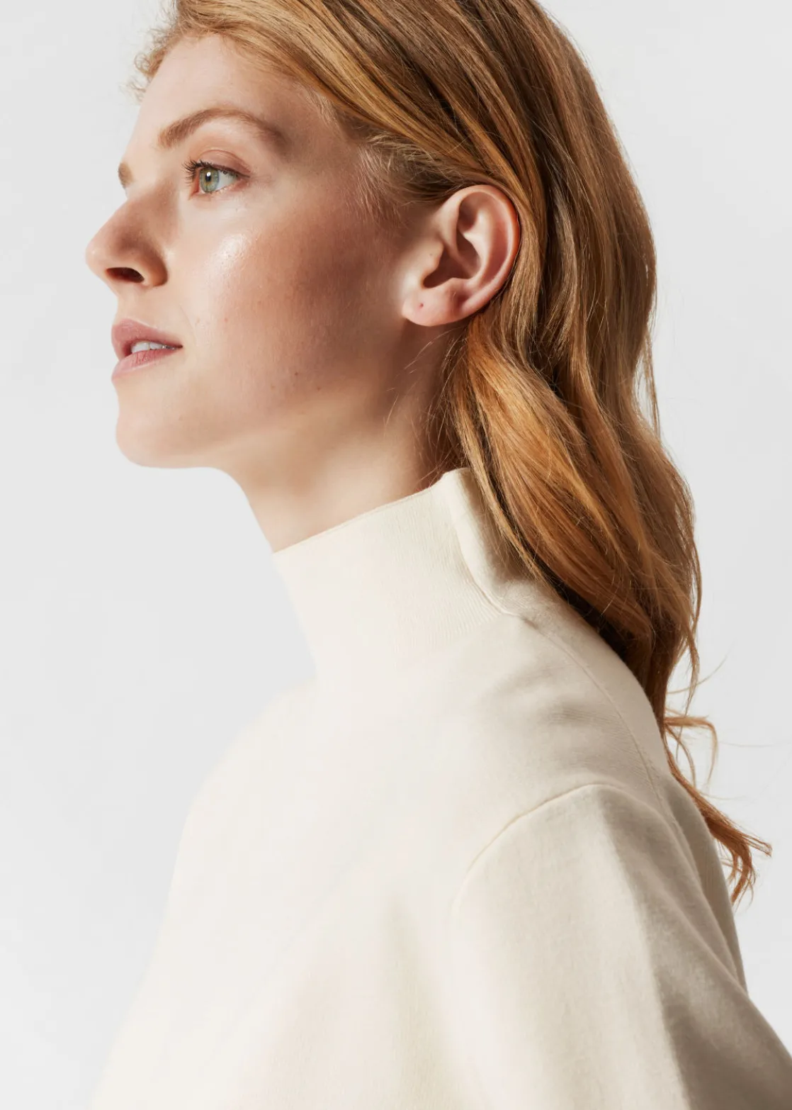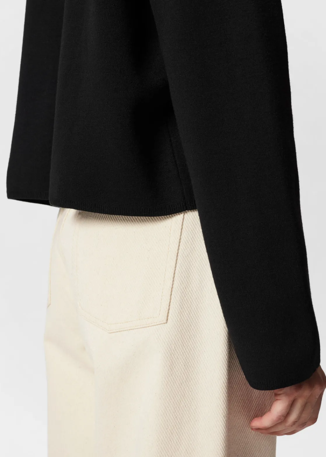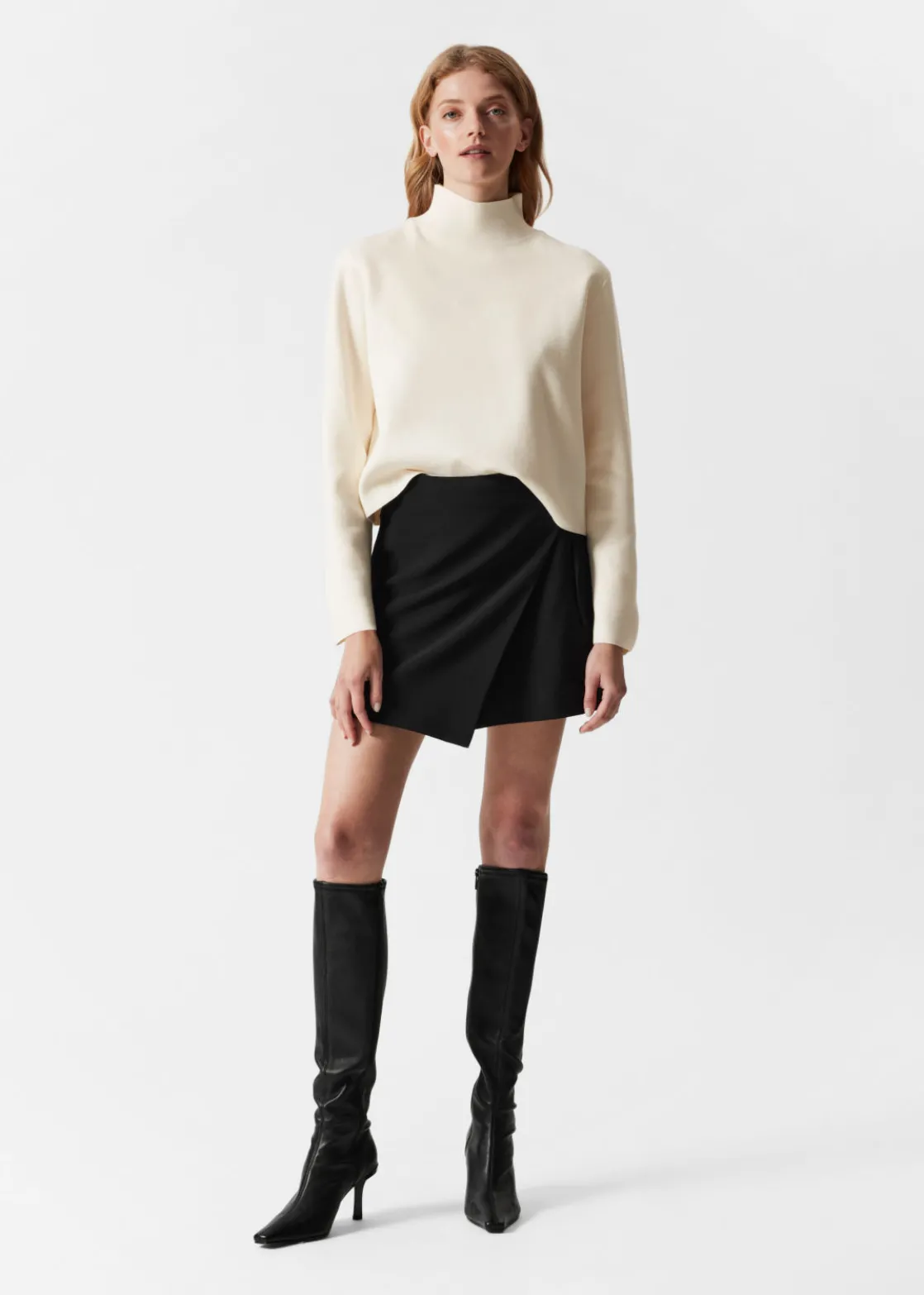Turtleneck knit sweater with a cropped, boxy silhouette.