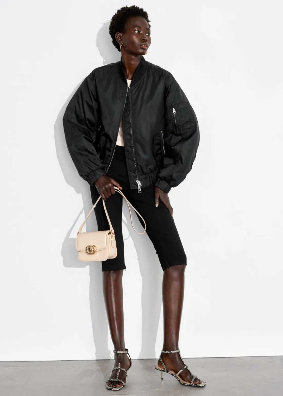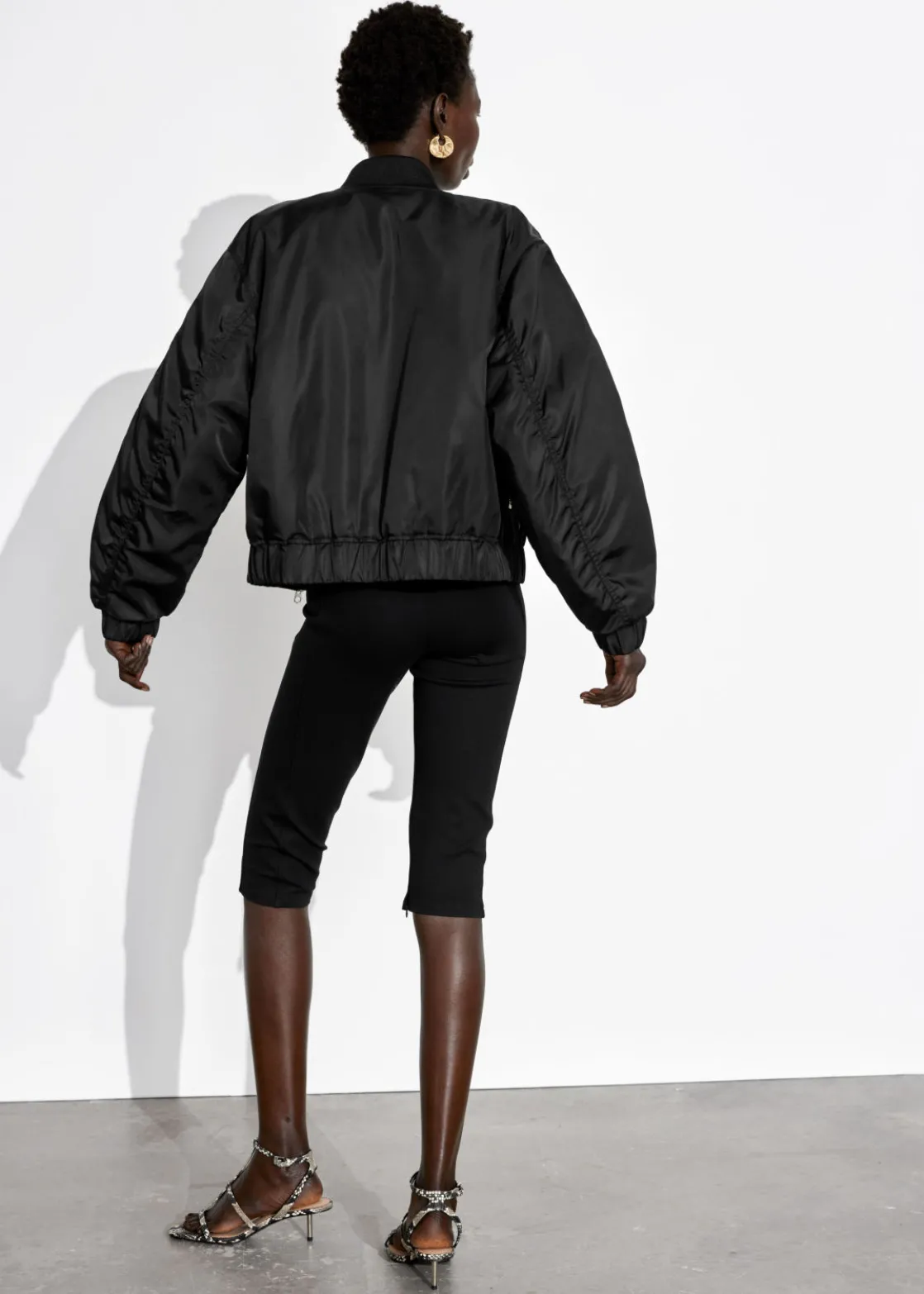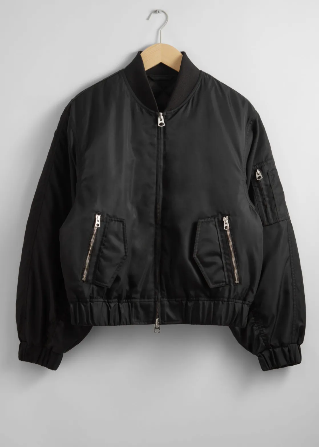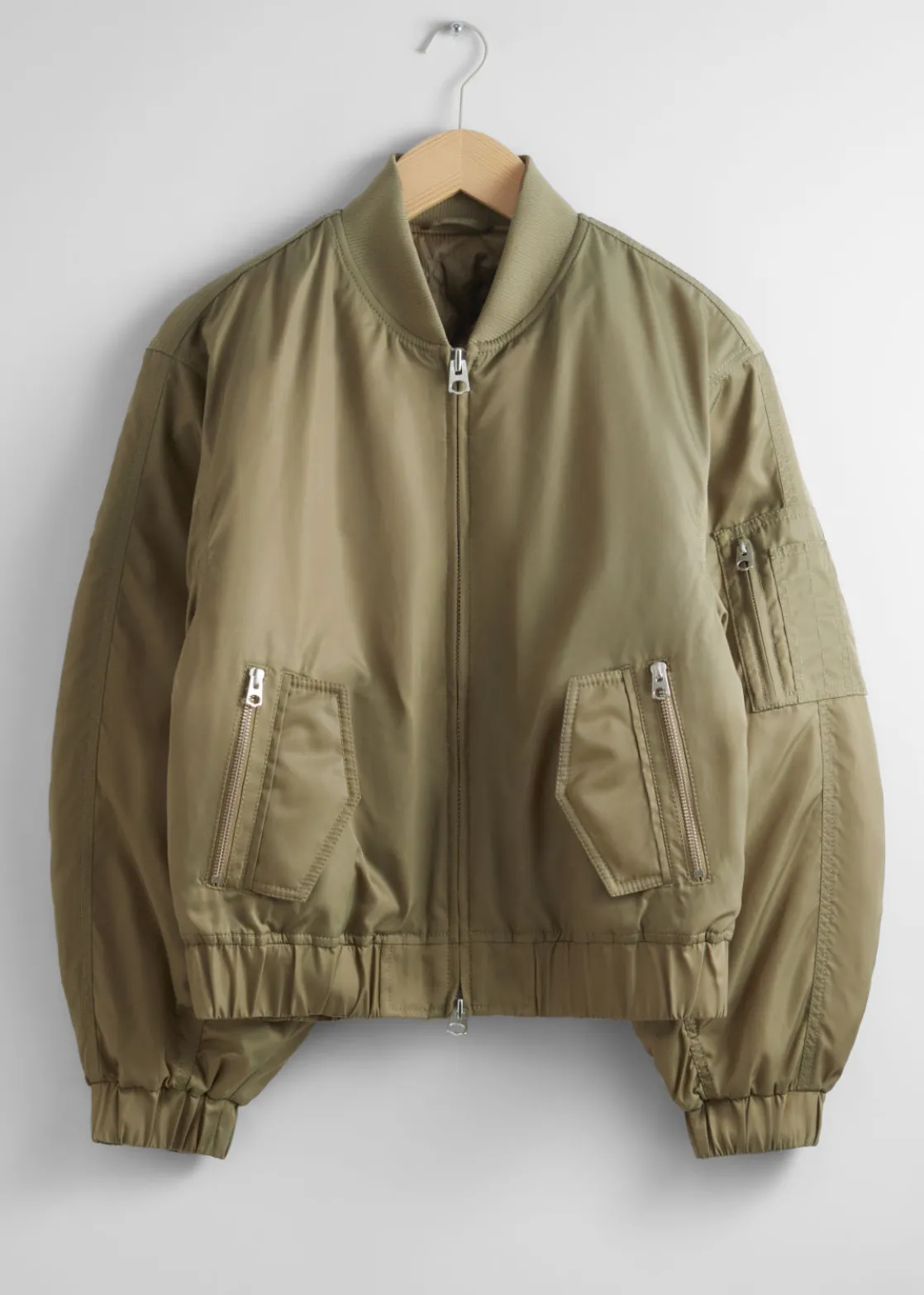 Boxy jacket detailed with duo zip-pockets and fastened with a two-way zipper.