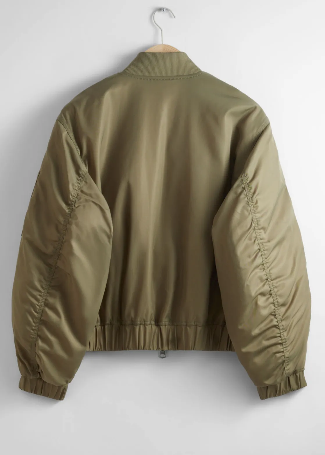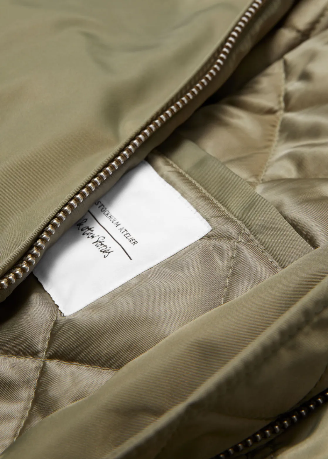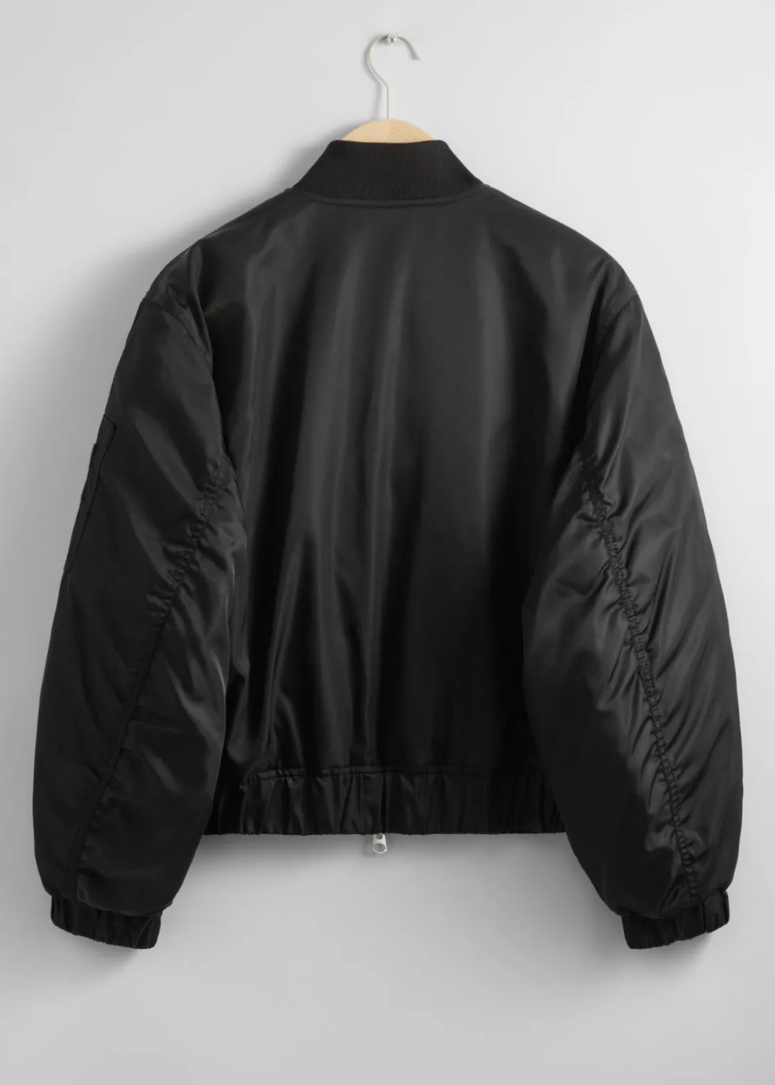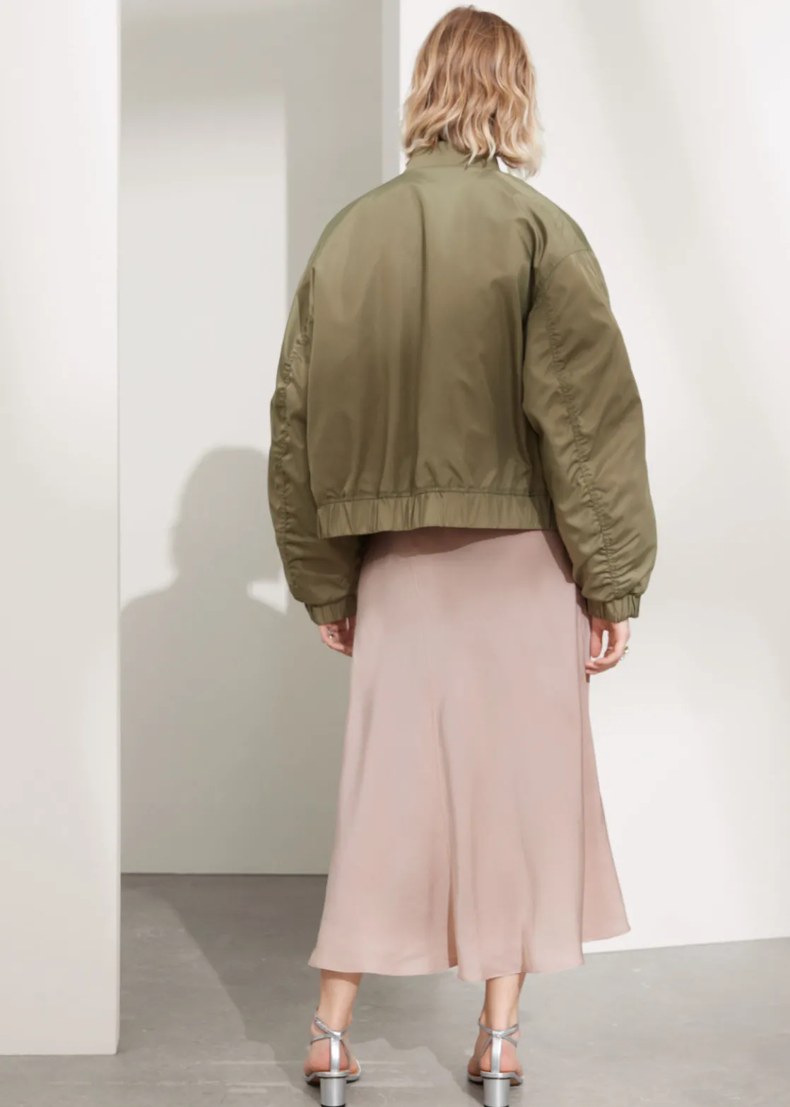 Boxy jacket detailed with duo zip-pockets and fastened with a two-way zipper.