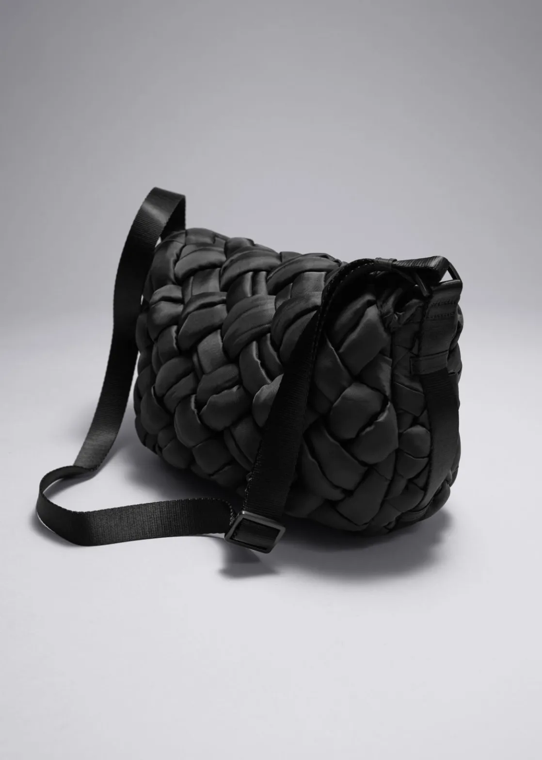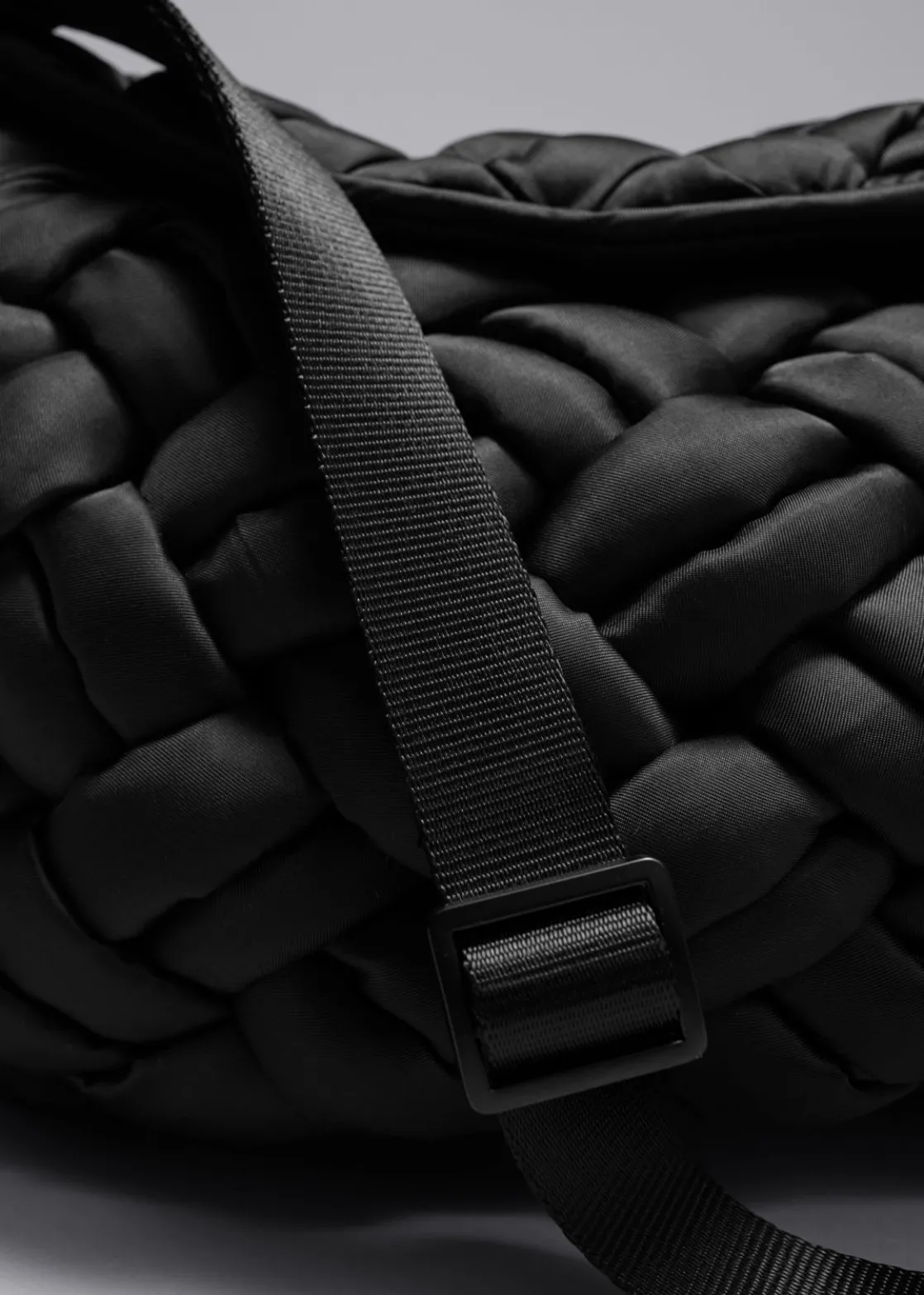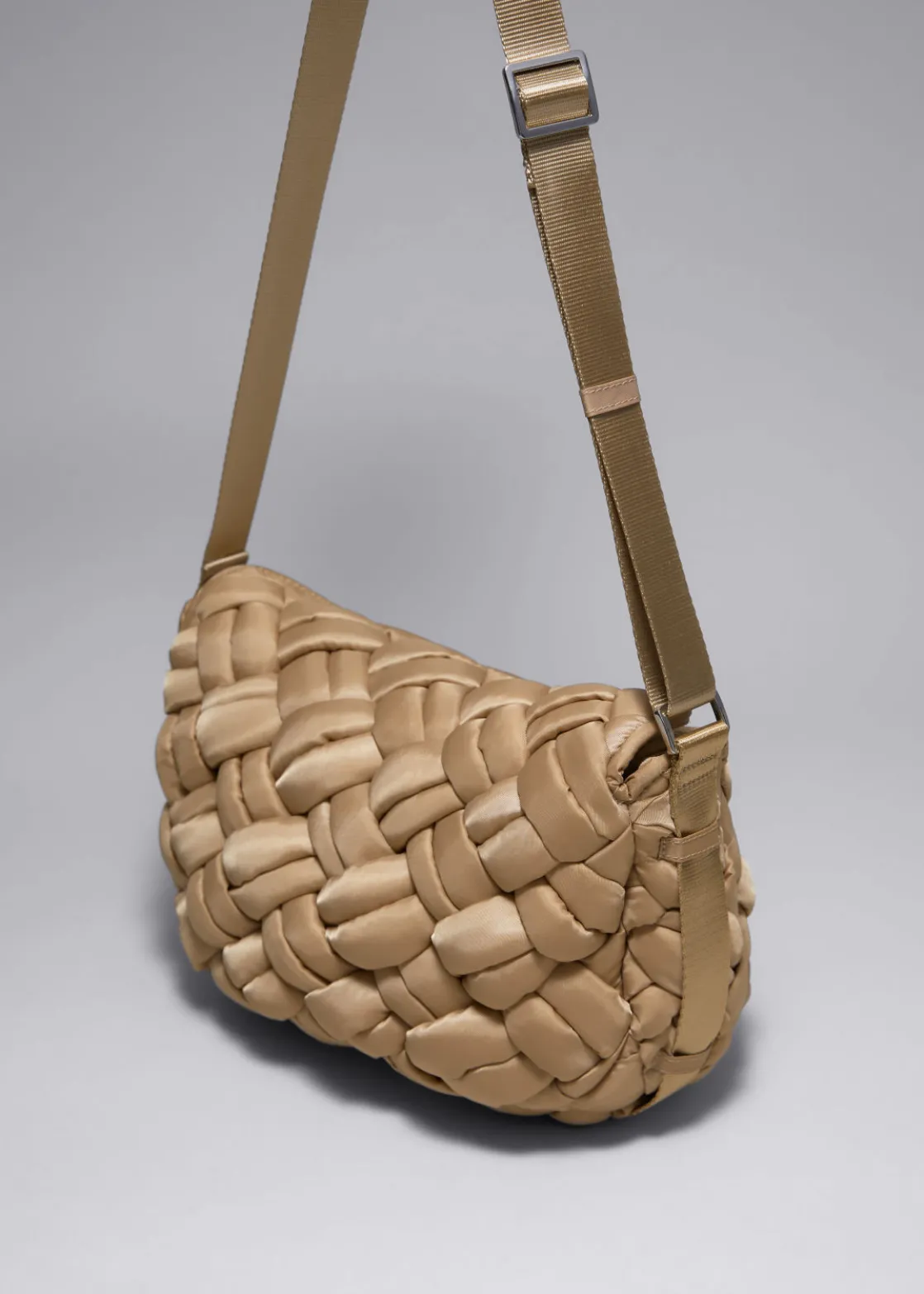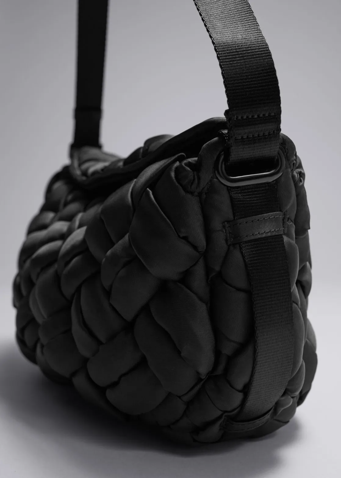 Shoulder bag crafted in braided nylon with a concealed magnetic closure and an adjustable shoulder strap. Detailed simply with tonal hardware. The fully lined cotton interior holds a zipped inner pocket.