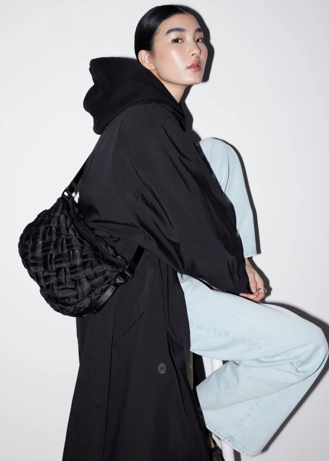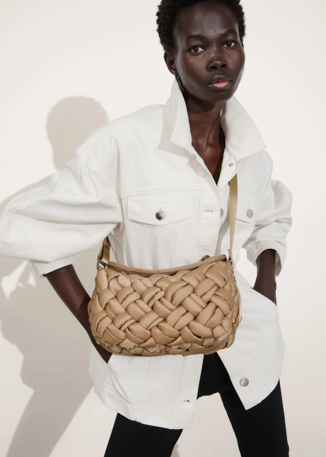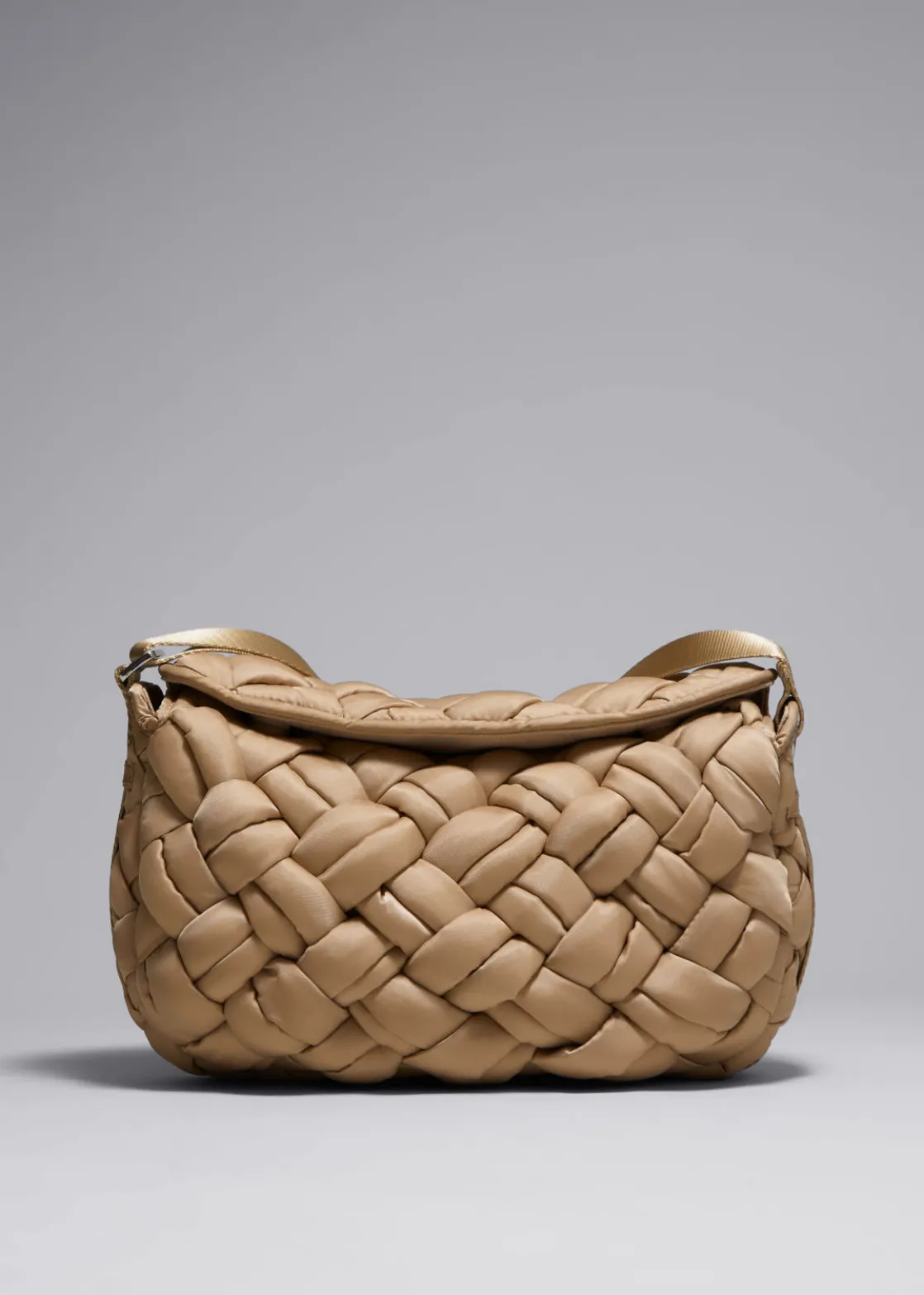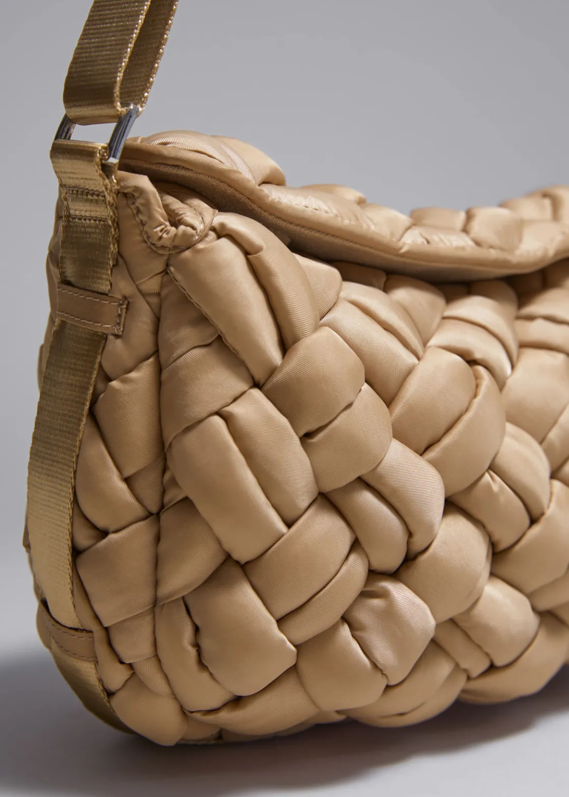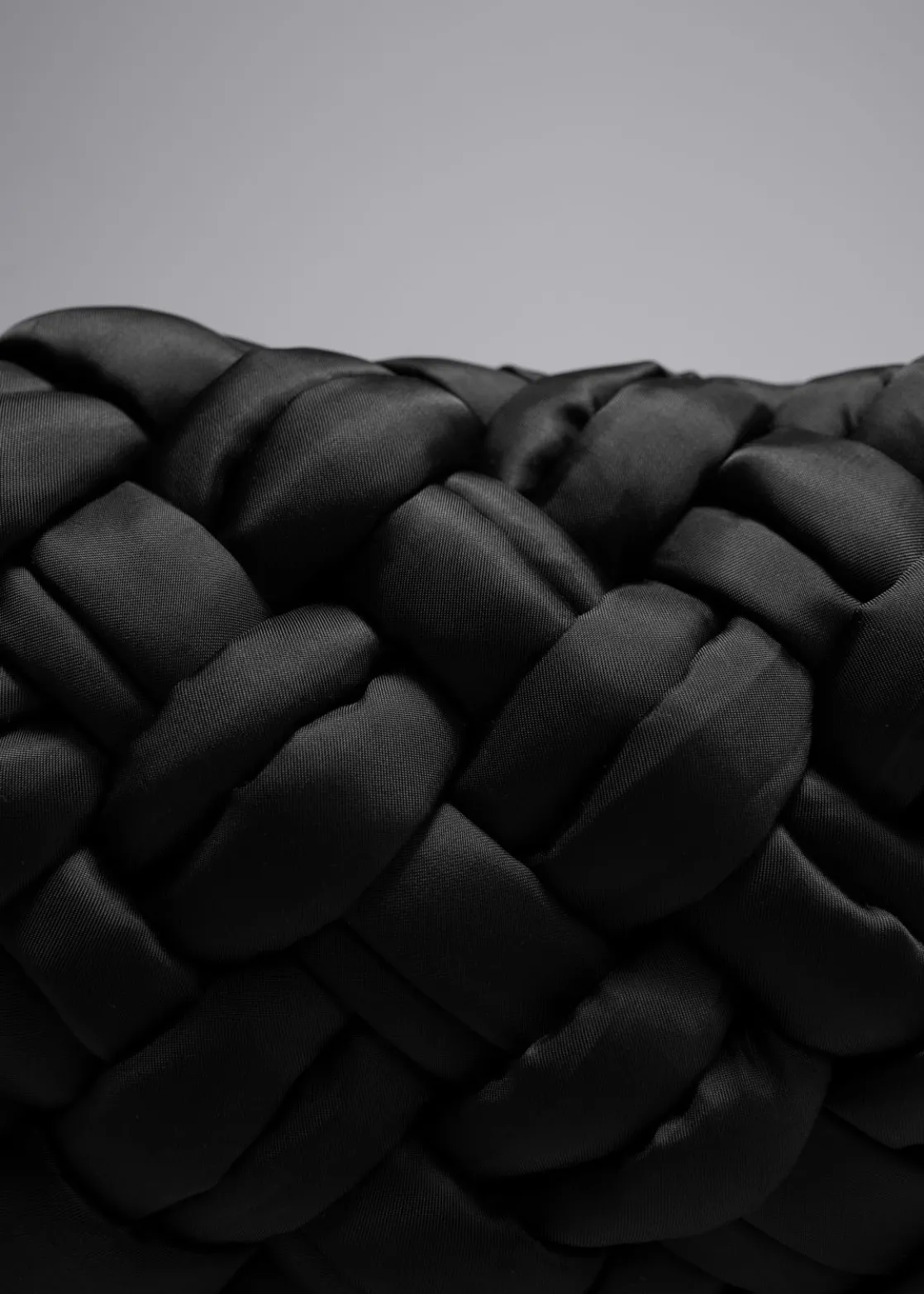 Shoulder bag crafted in braided nylon with a concealed magnetic closure and an adjustable shoulder strap. Detailed simply with tonal hardware. The fully lined cotton interior holds a zipped inner pocket.