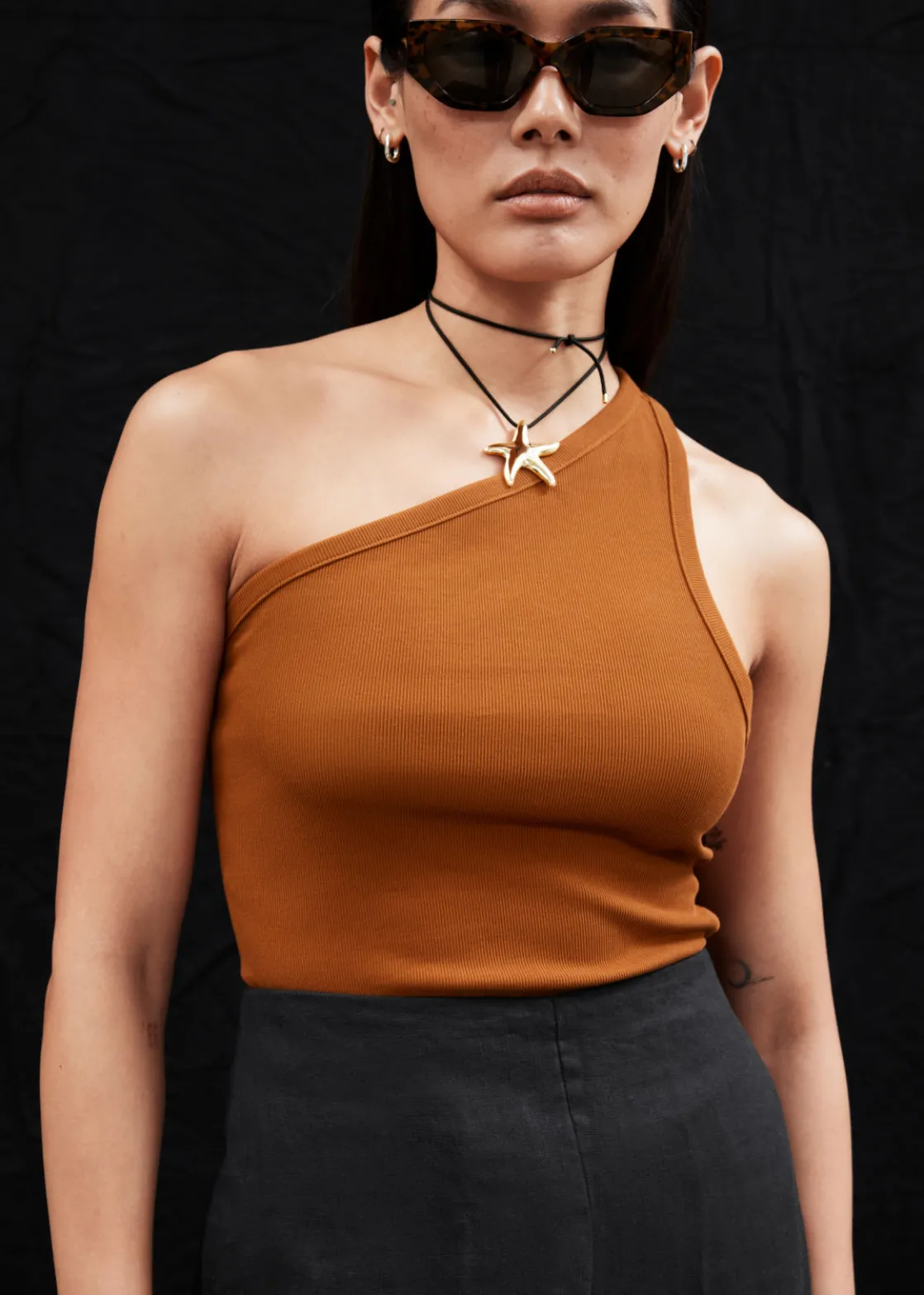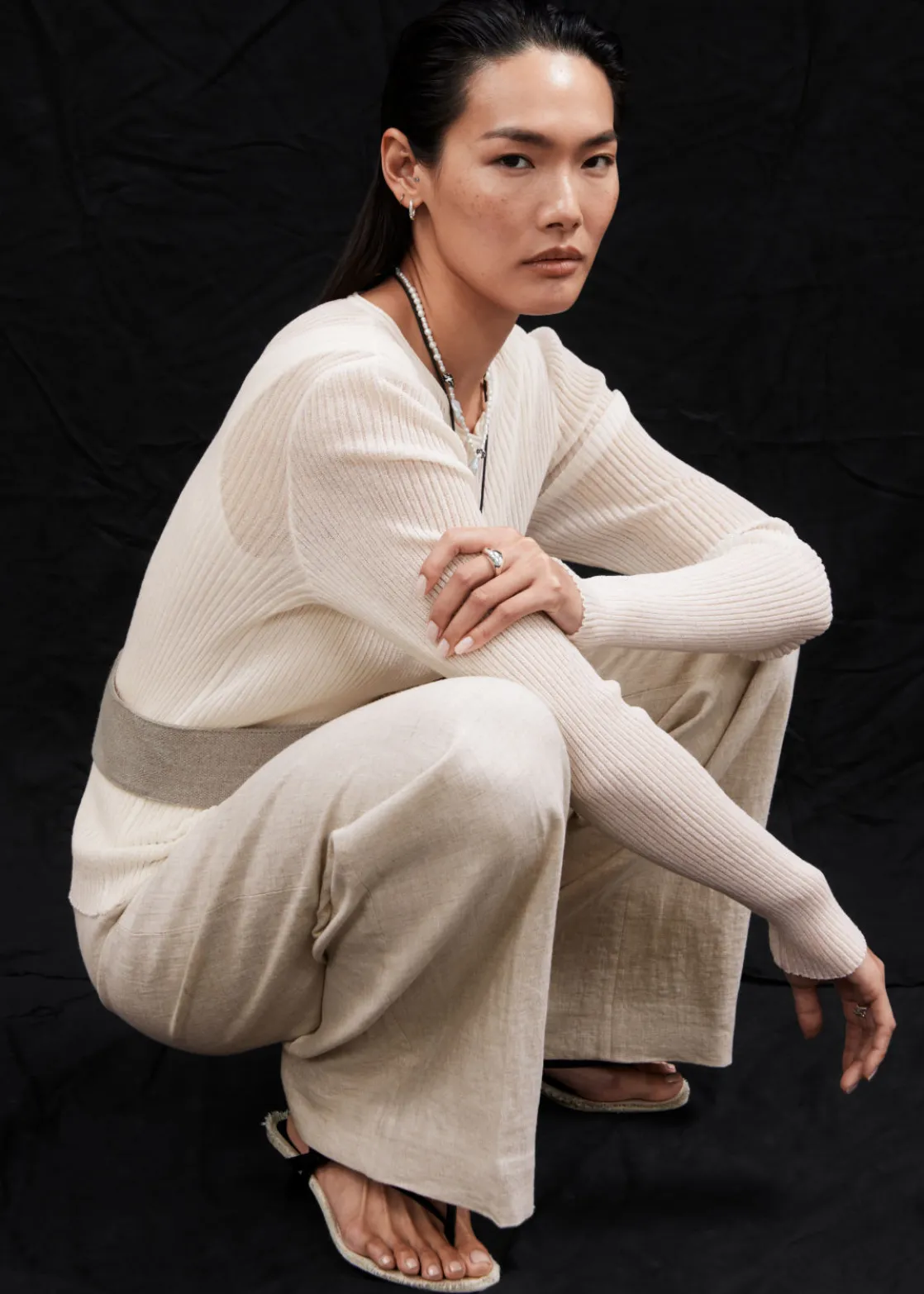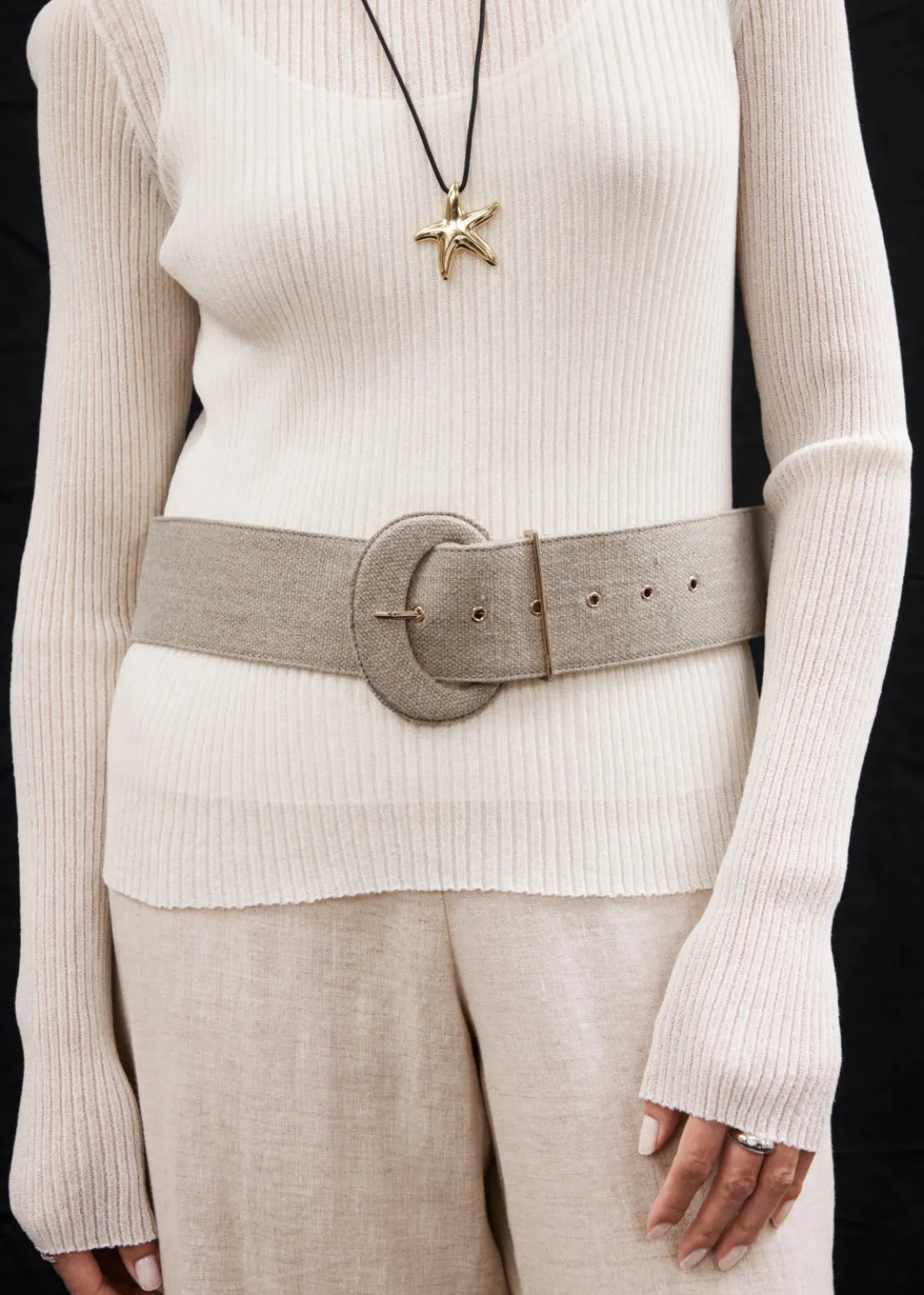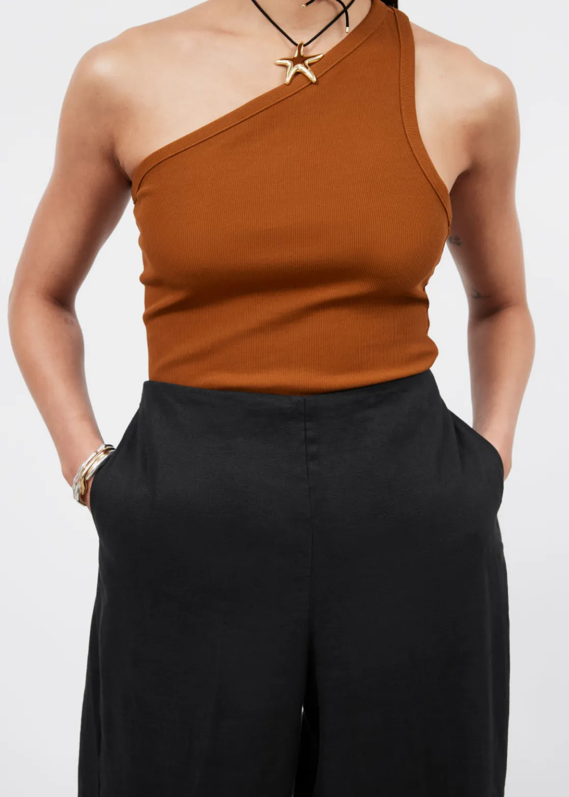 Relaxed high-waist trousers cut from a breezy material. Finished with a clean waistline.