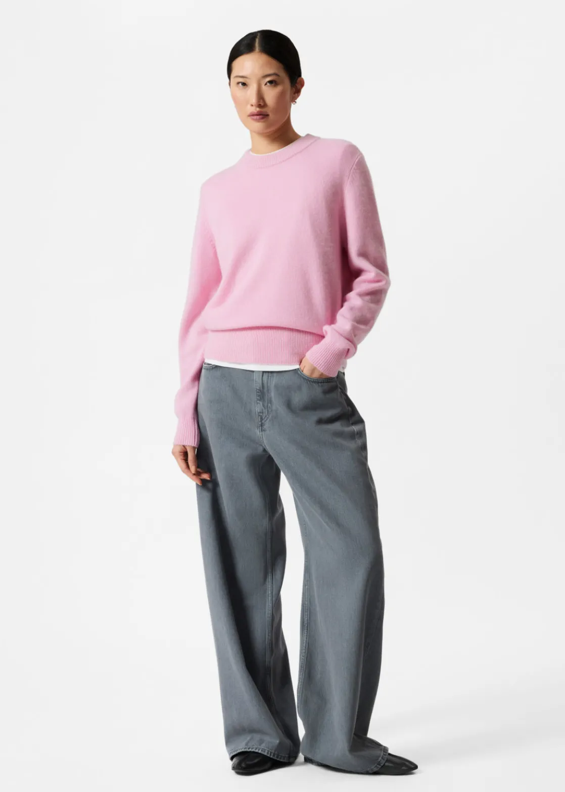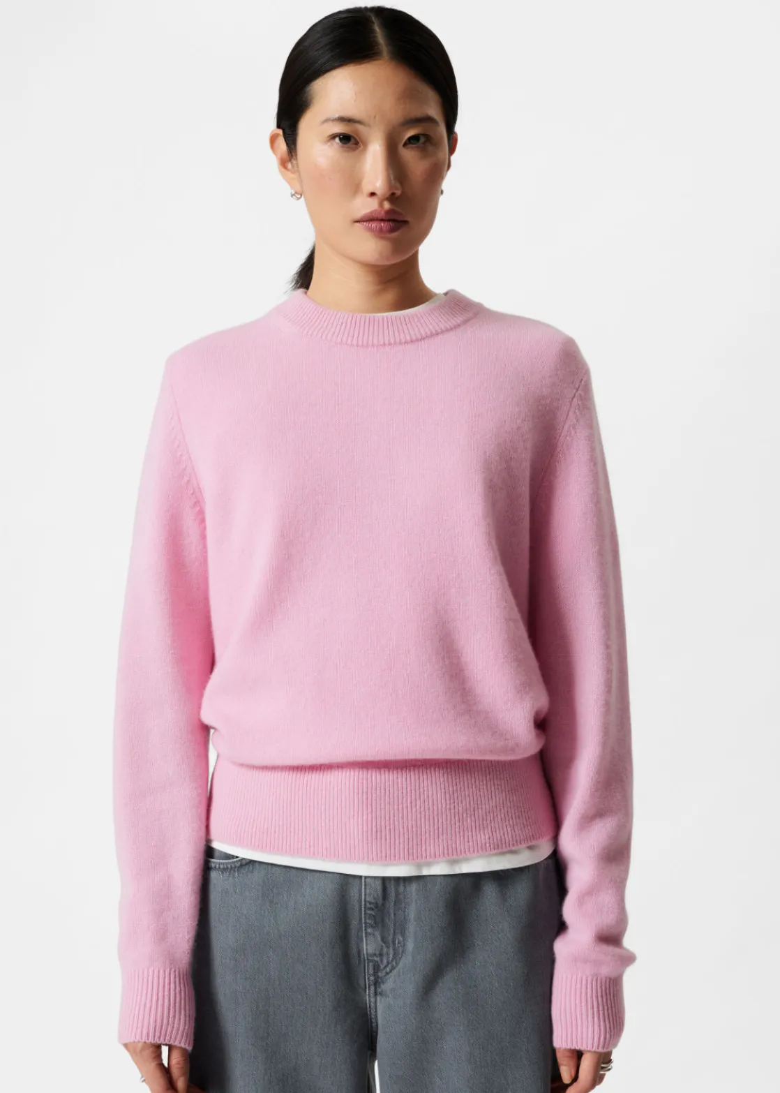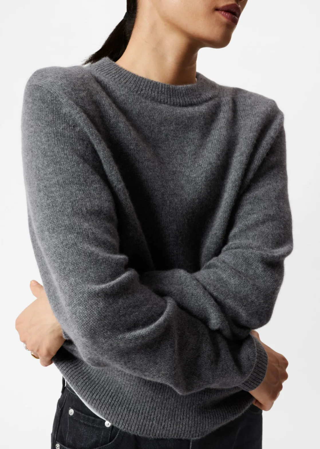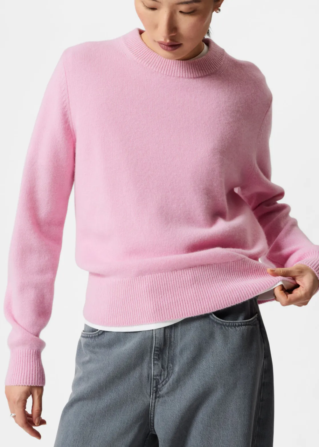 Long-sleeve jumper knitted from pure cashmere. Finished with a ribbed neck, cuffs and hemline.