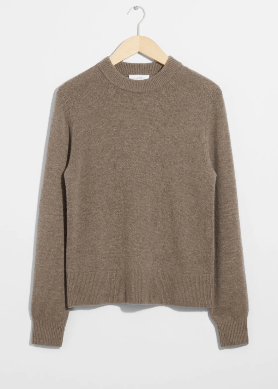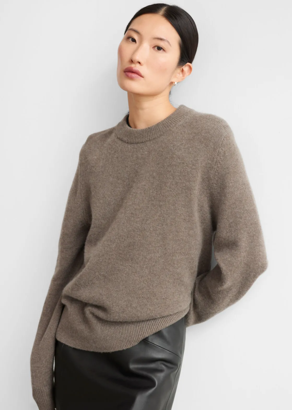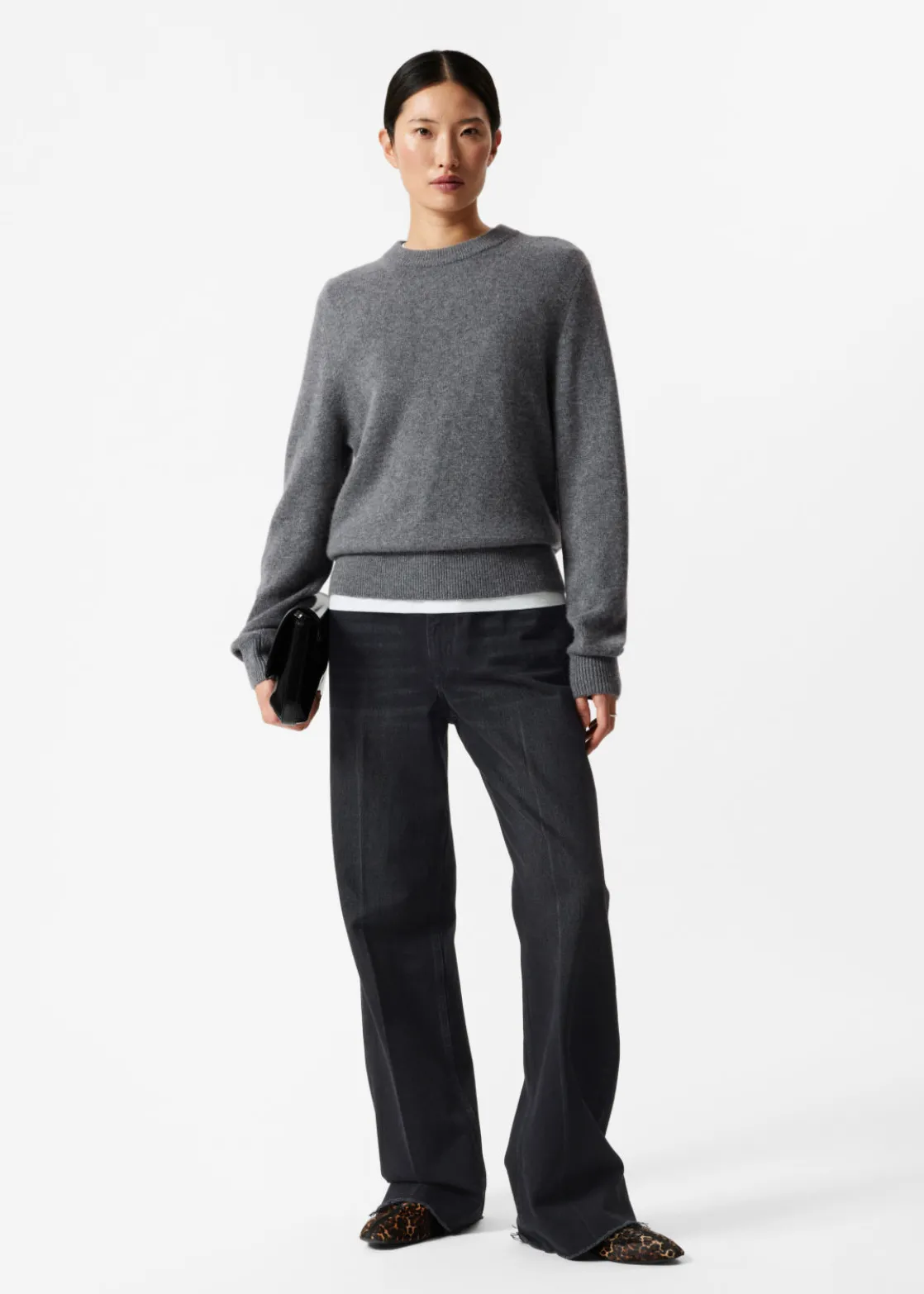 Long-sleeve jumper knitted from pure cashmere. Finished with a ribbed neck, cuffs and hemline.