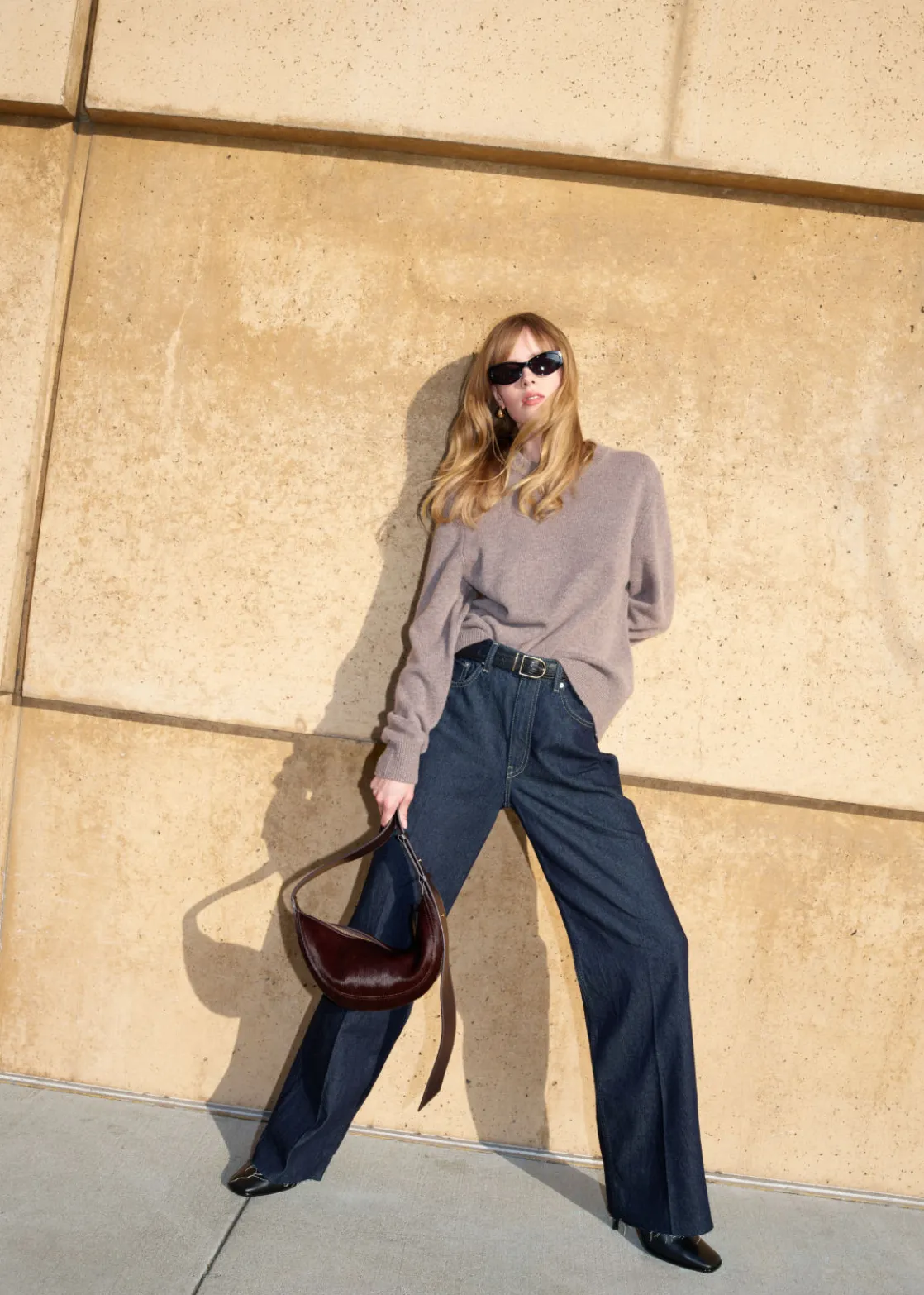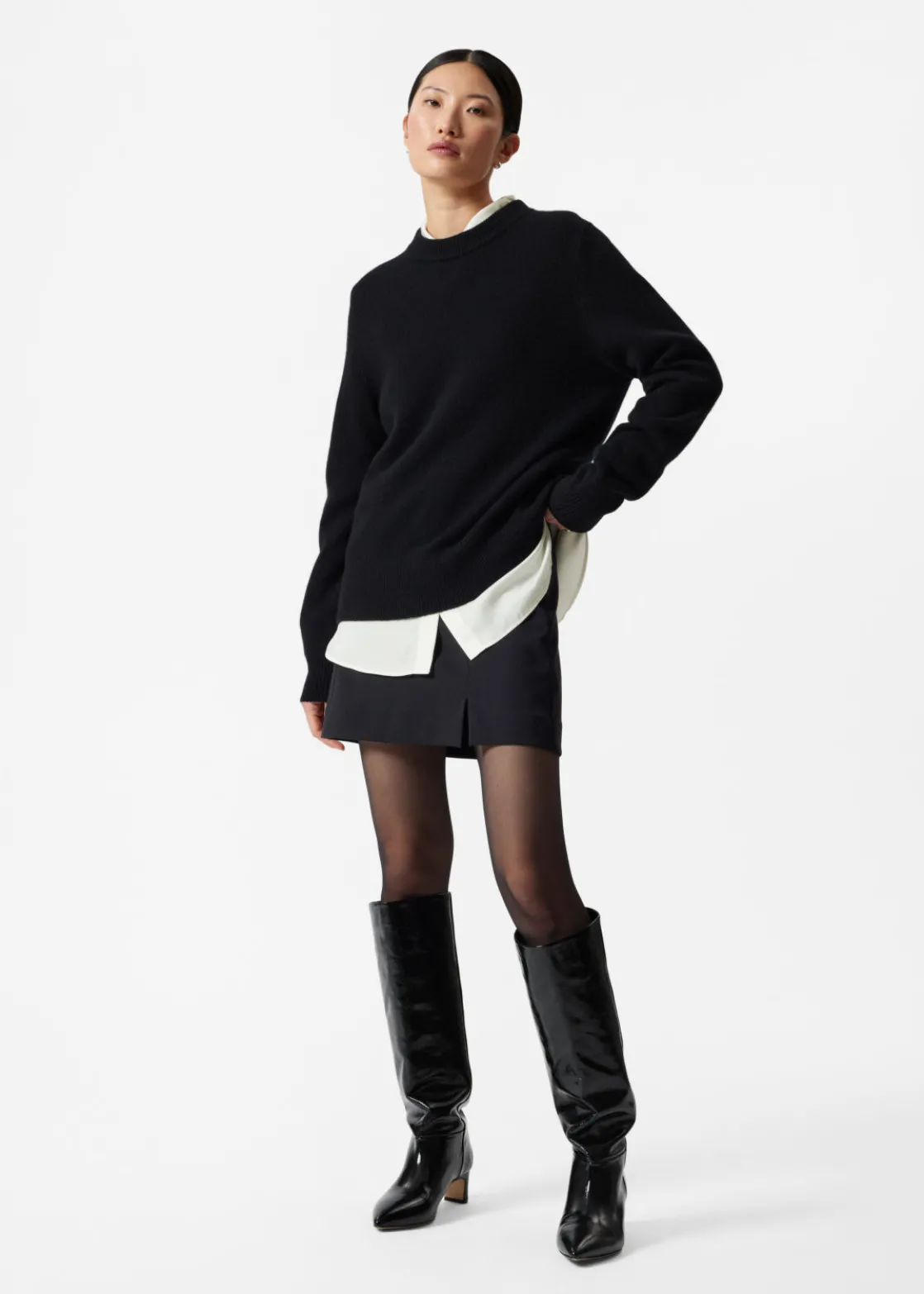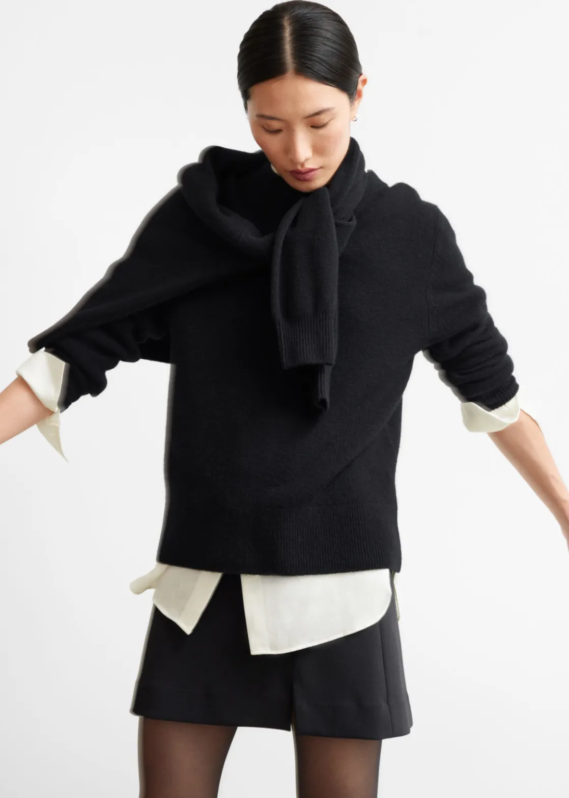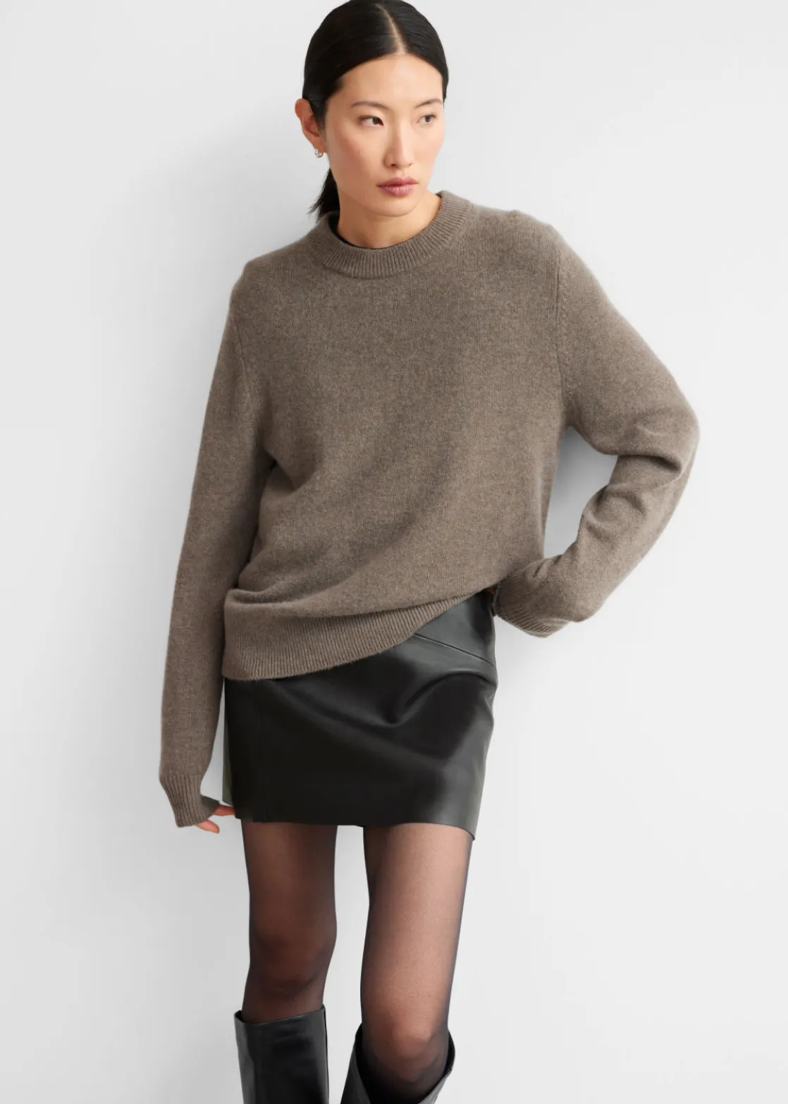 Long-sleeve jumper knitted from pure cashmere. Finished with a ribbed neck, cuffs and hemline.