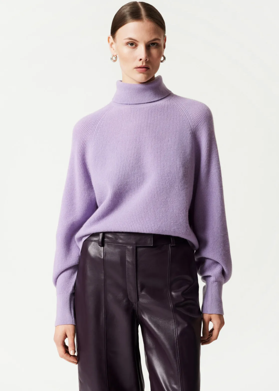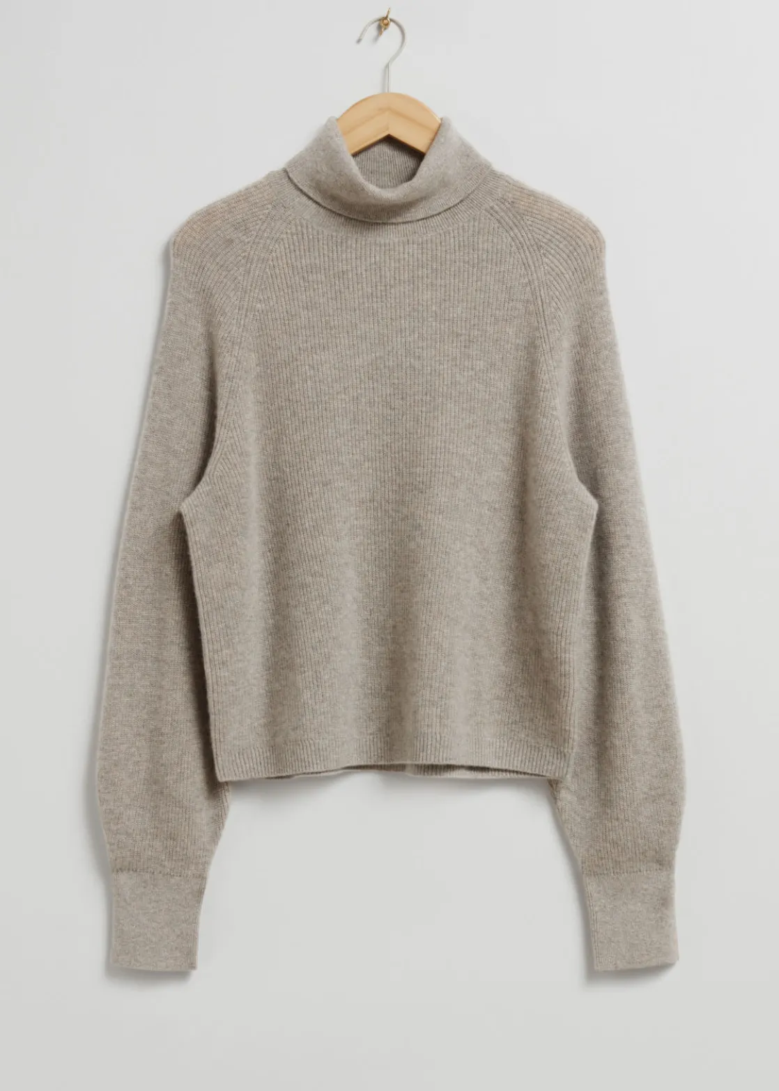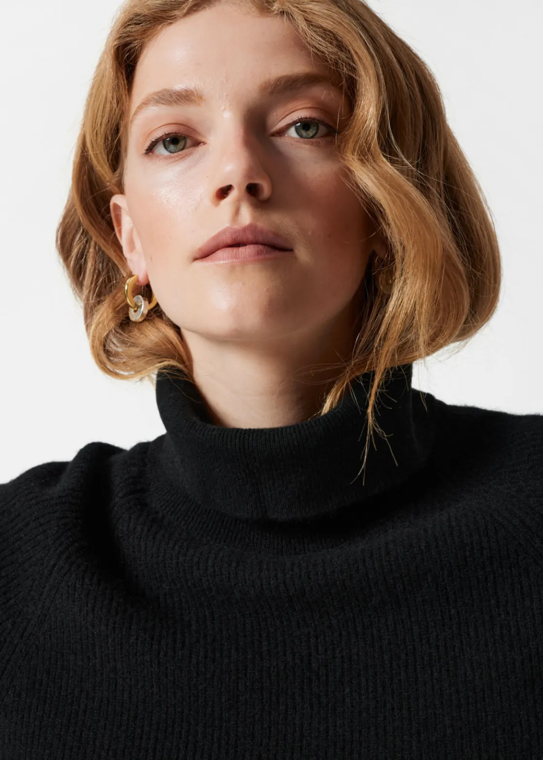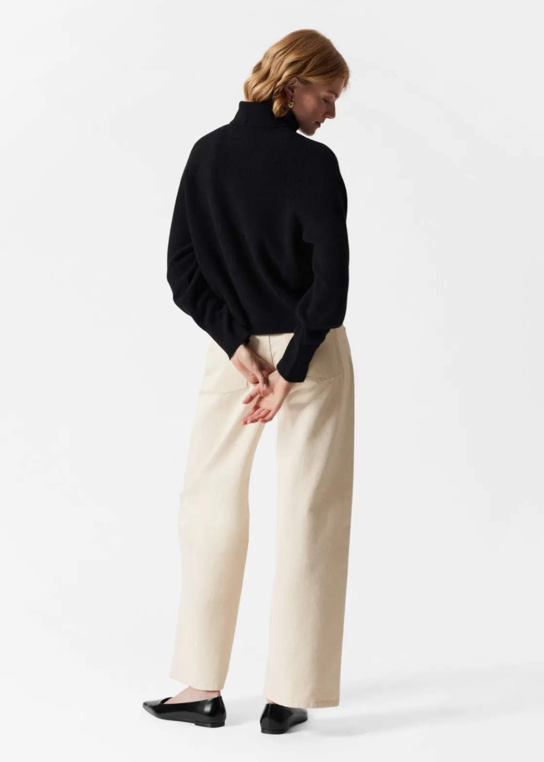 Cashmere turtleneck sweater with a boxy silhouette and long sleeves.