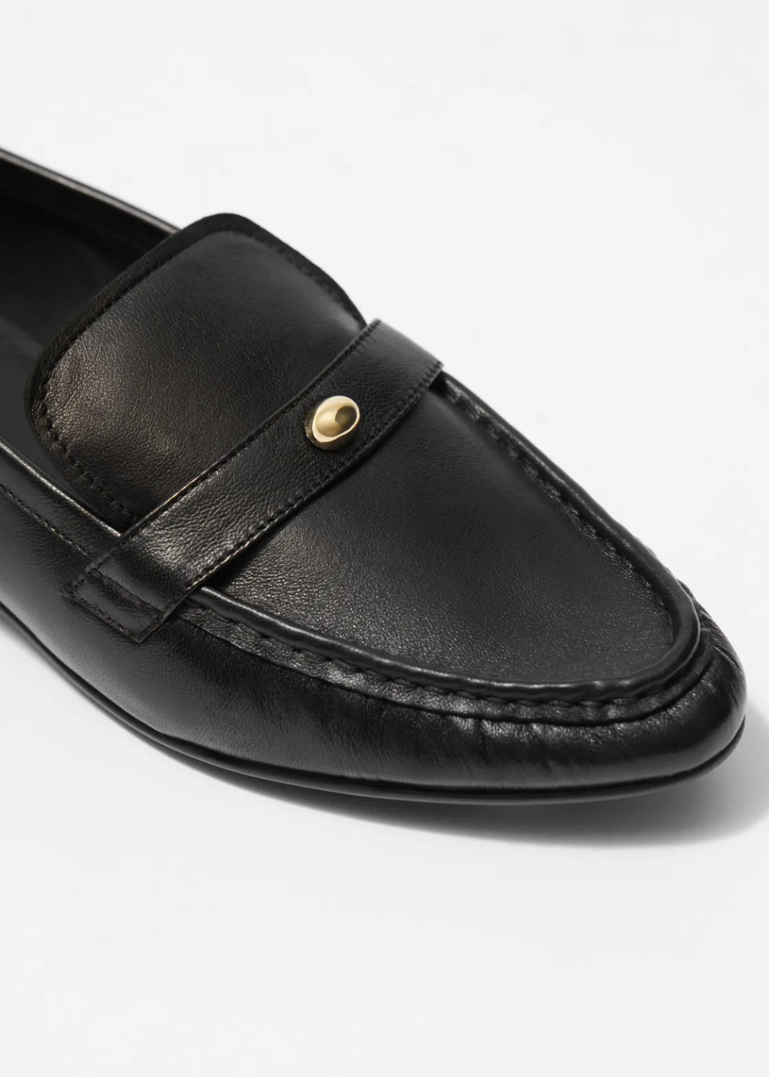 These loafers are crafted from impeccably smooth leather in Portugal. This pair has a gold-tone embellishment, a slight heel for lift and sleek almond toe. Loafers will work with just about anything in your wardrobe.