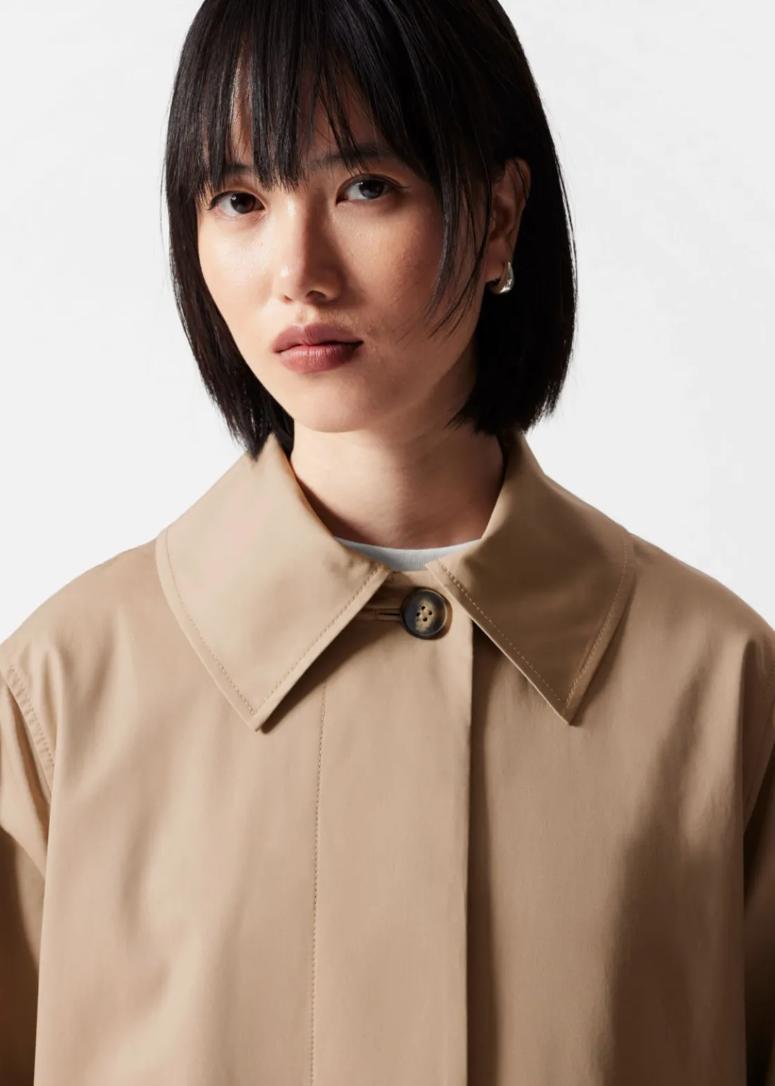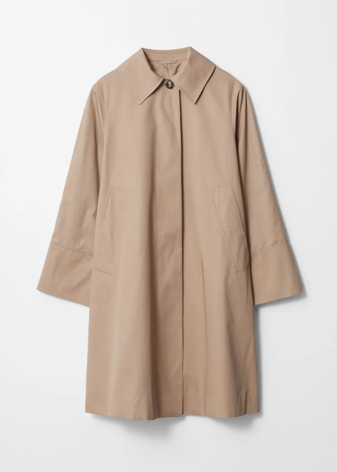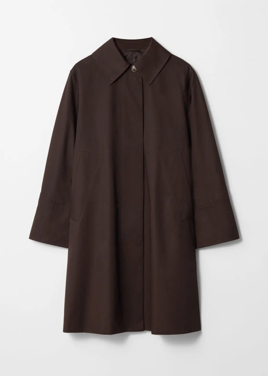 Car coat featuring a clean finish with a concealed button placket.