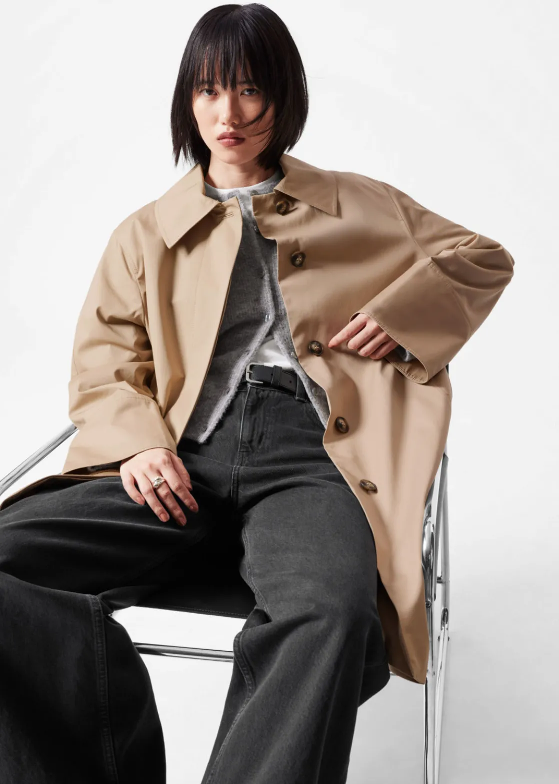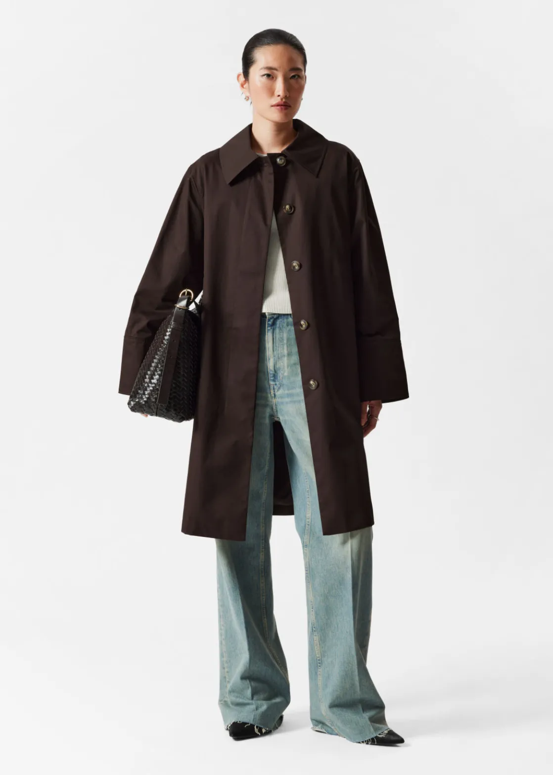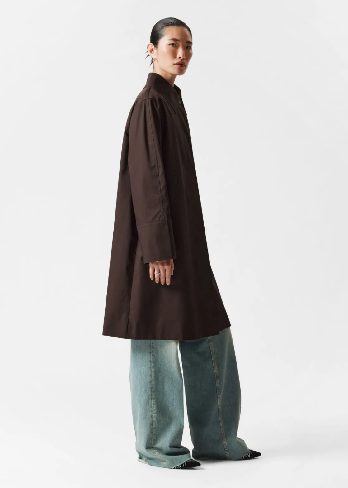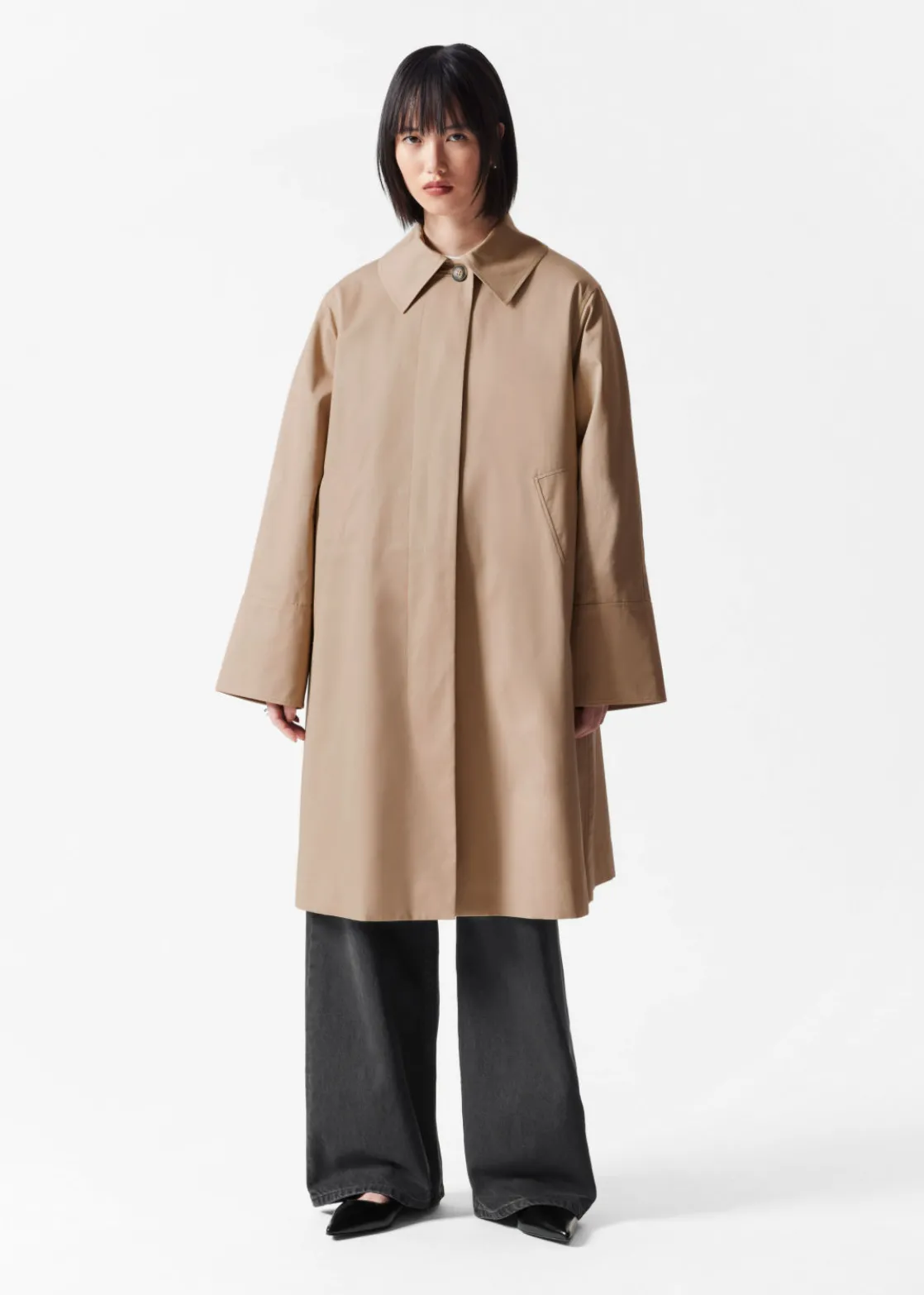 Car coat featuring a clean finish with a concealed button placket.