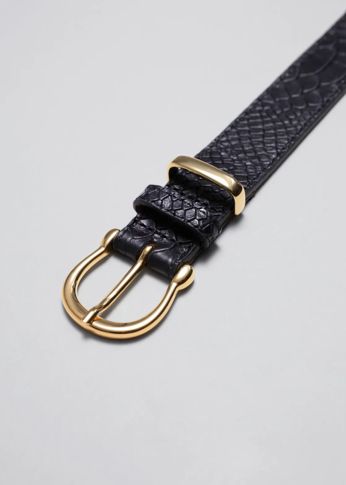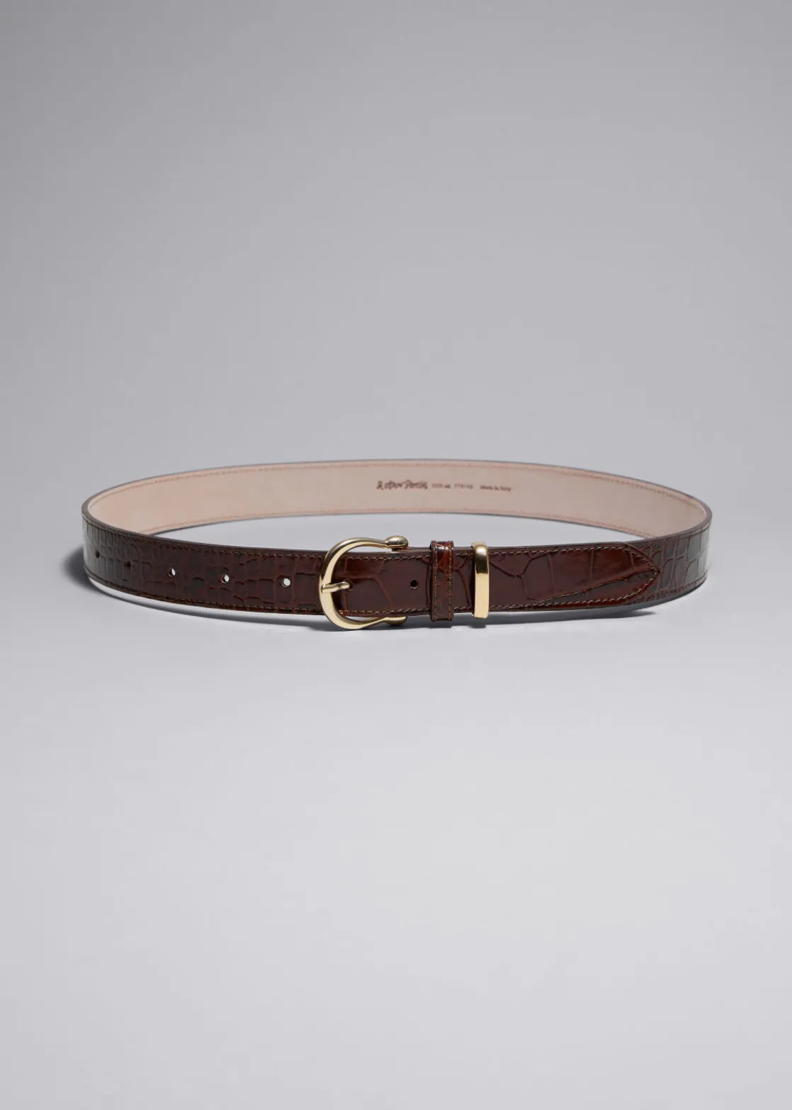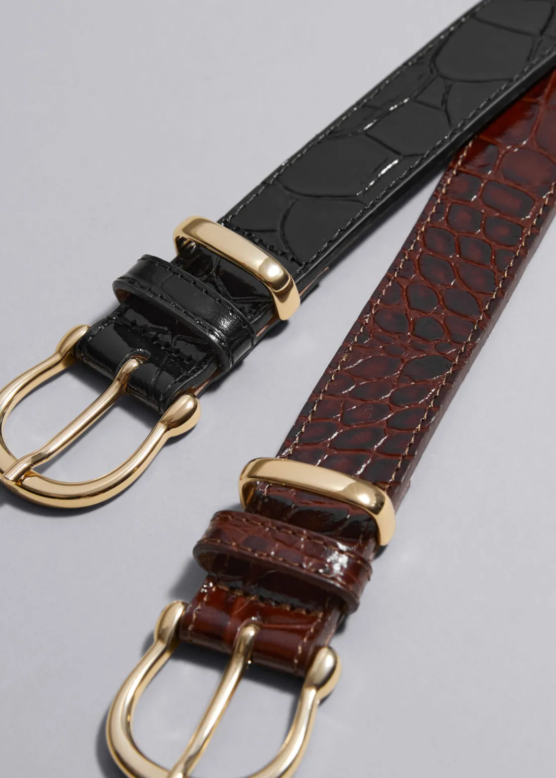 This belt is made in Italy, from croco embossed leather, it’s designed to sit on the waist and fastens with a polished gold-tone buckle.