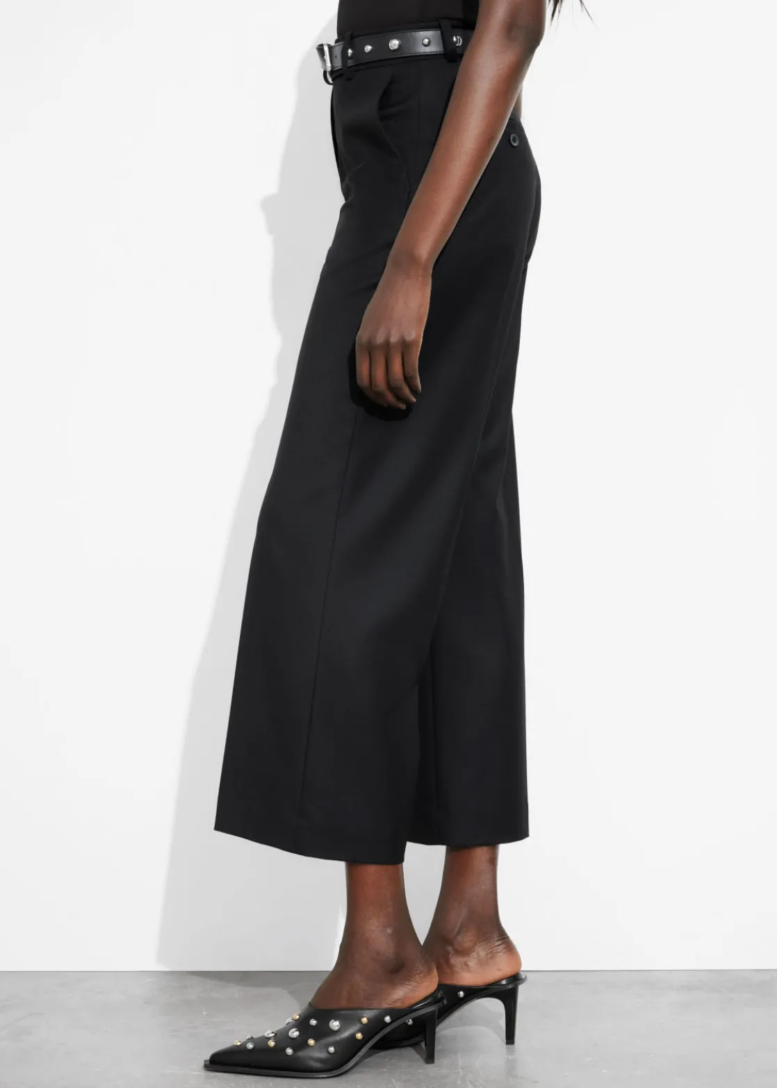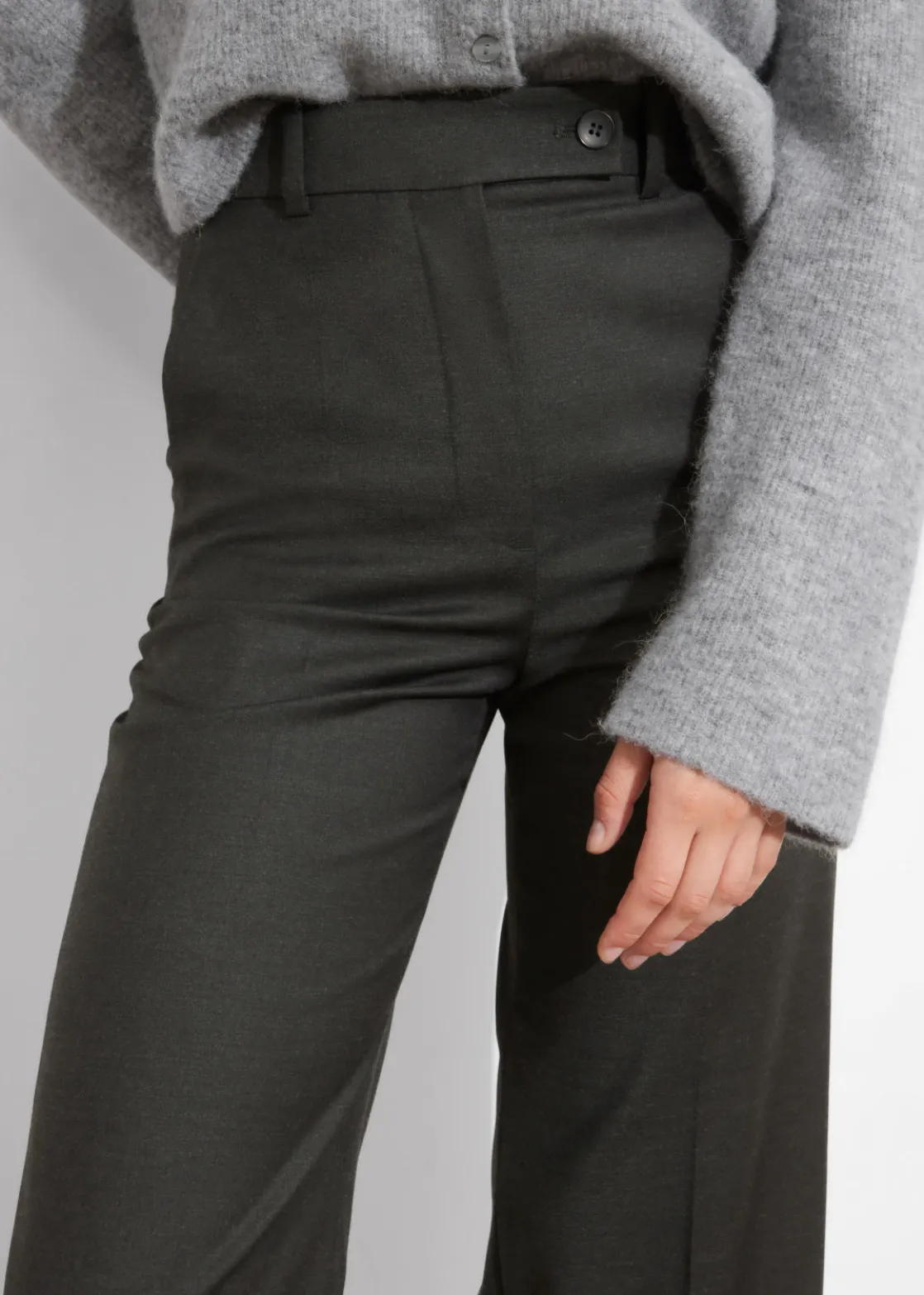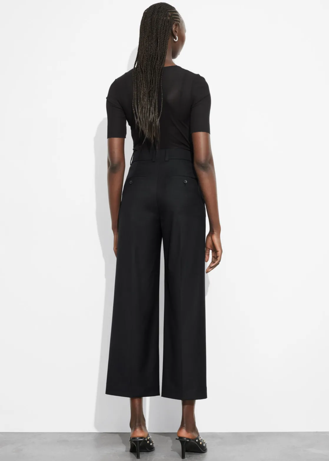 Tailored high-waist trousers with a cropped silhouette. Featuring press creases.