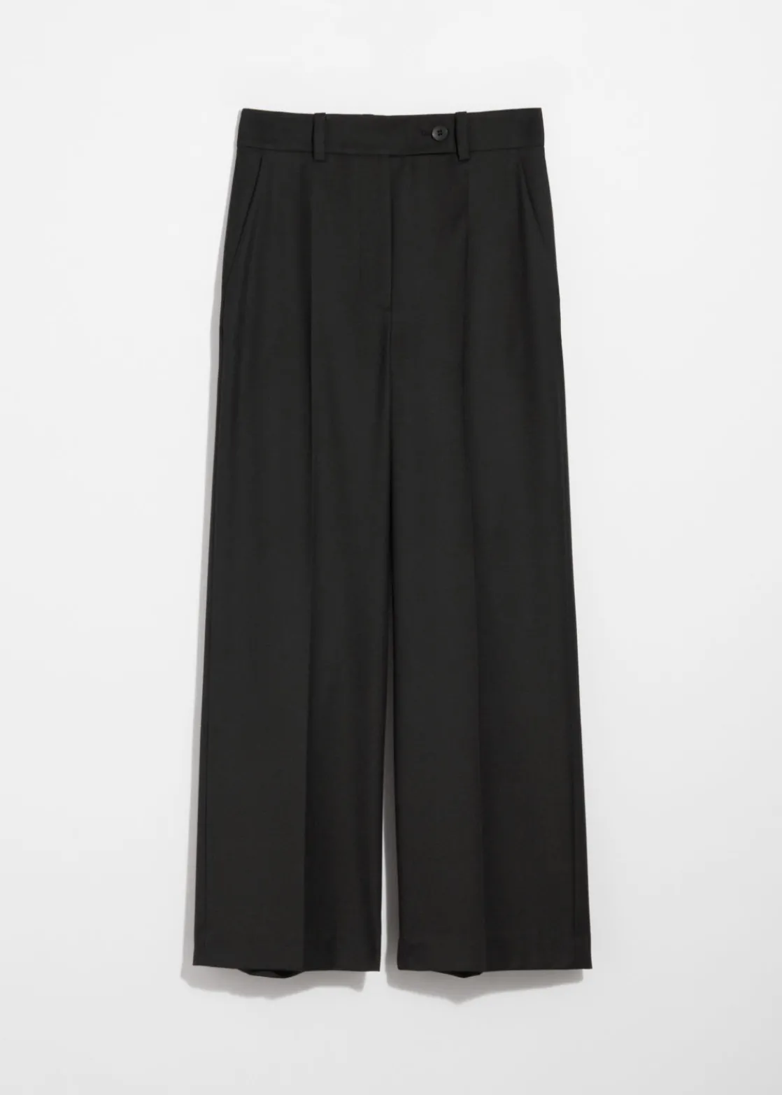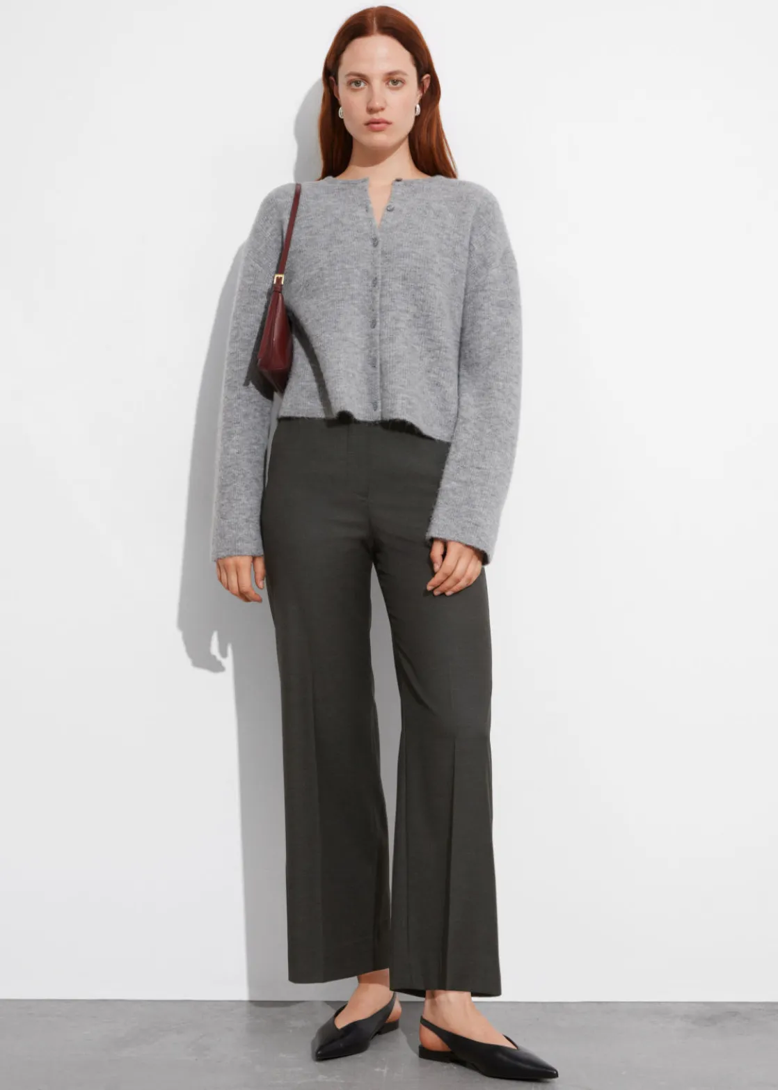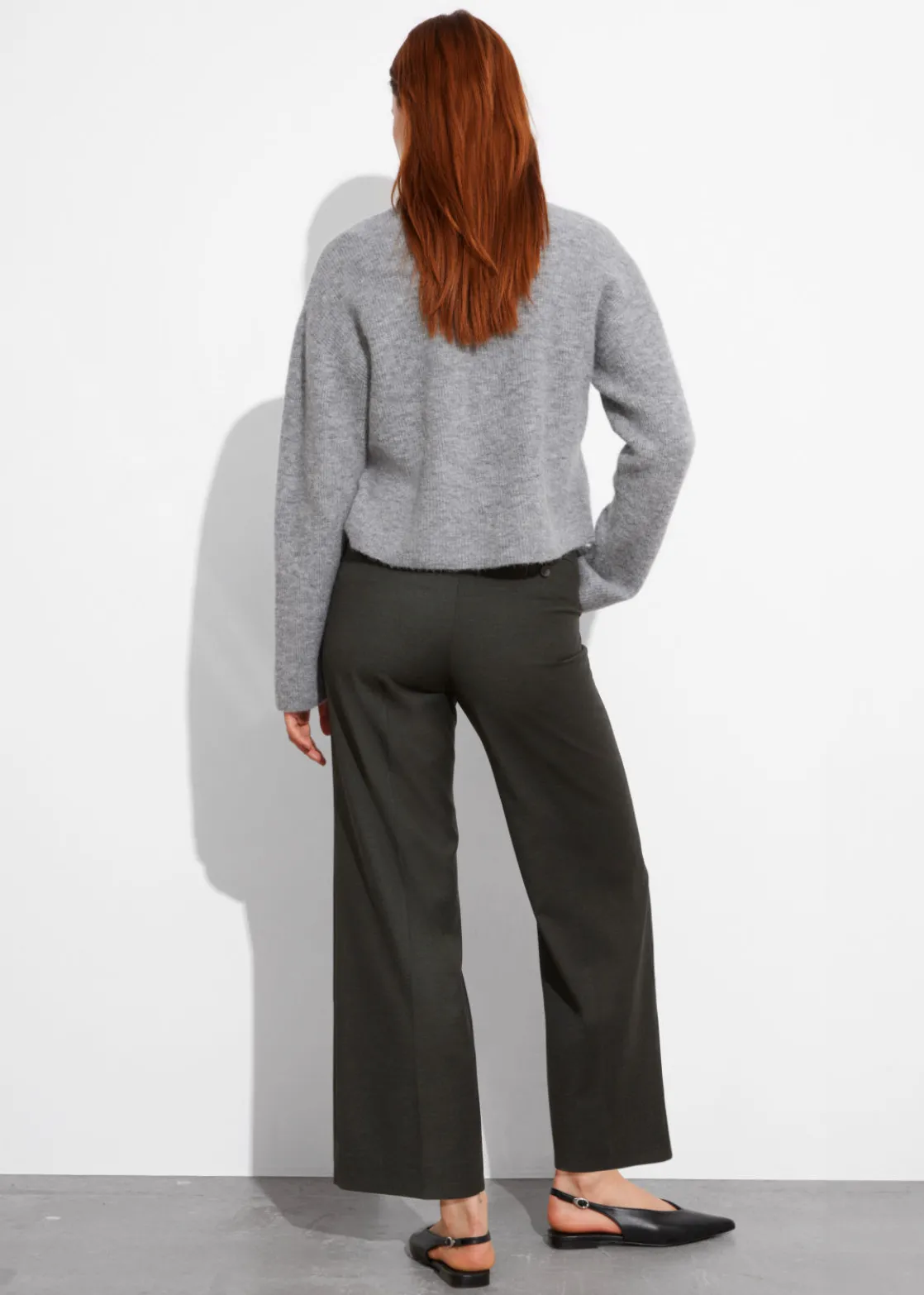 Tailored high-waist trousers with a cropped silhouette. Featuring press creases.