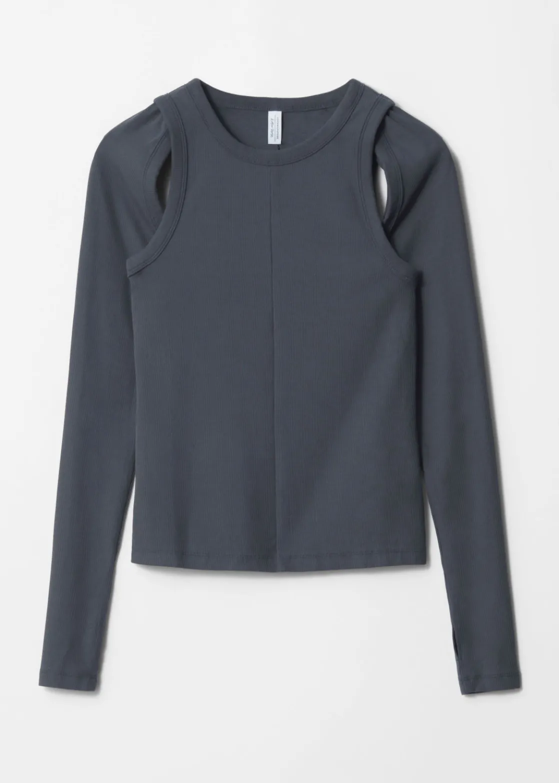 Long-sleeve tank top defined by cut-out detailing at the sleeve openings.