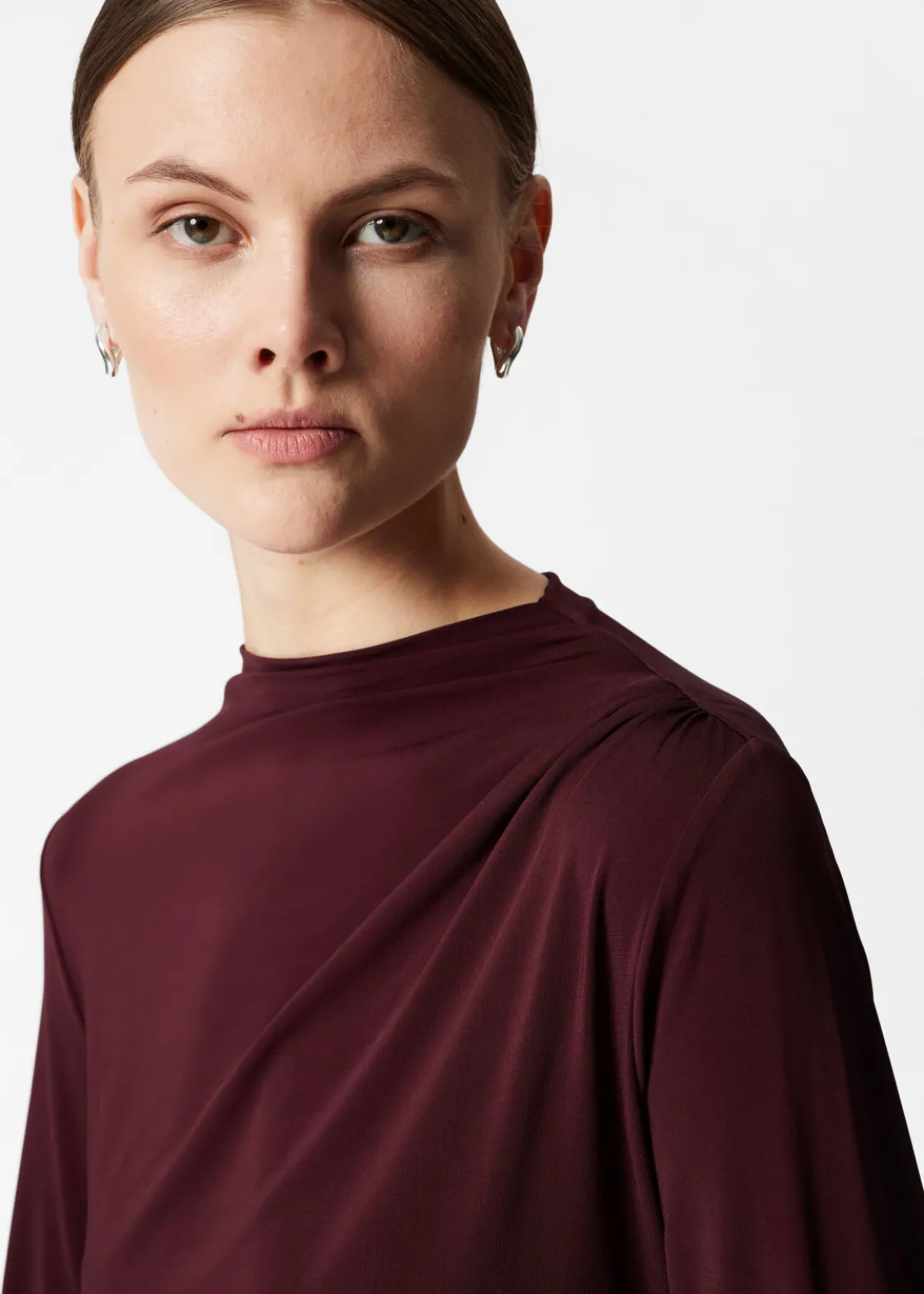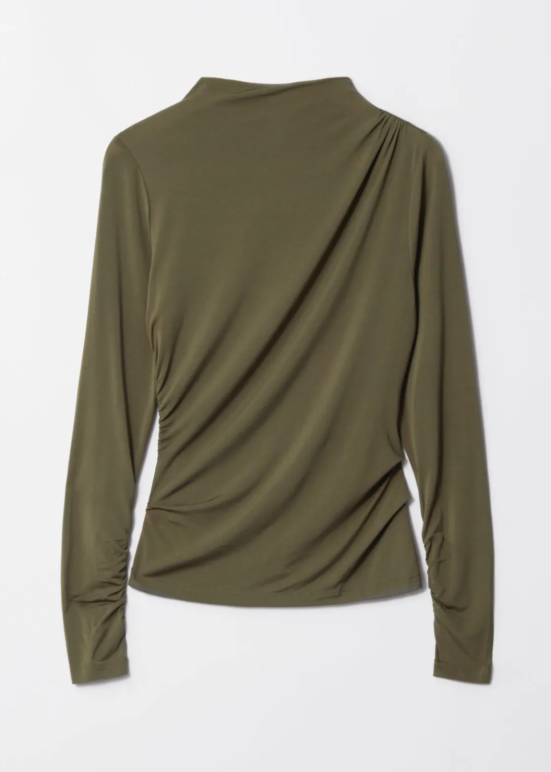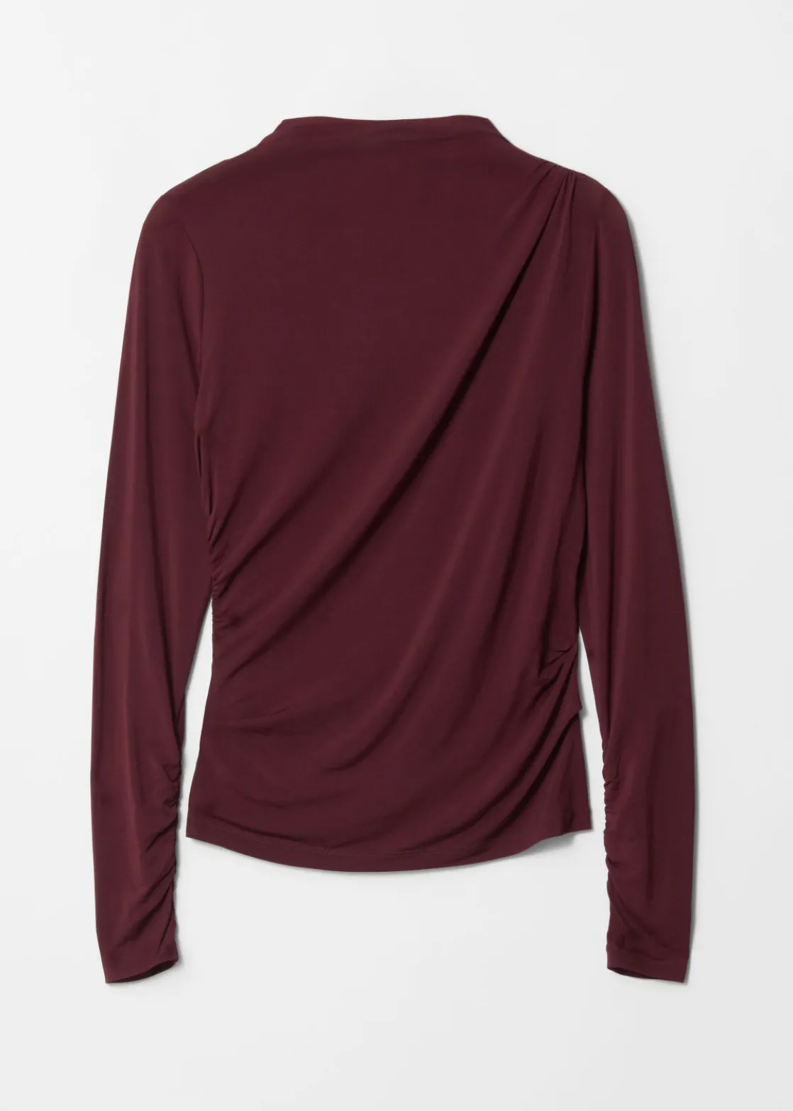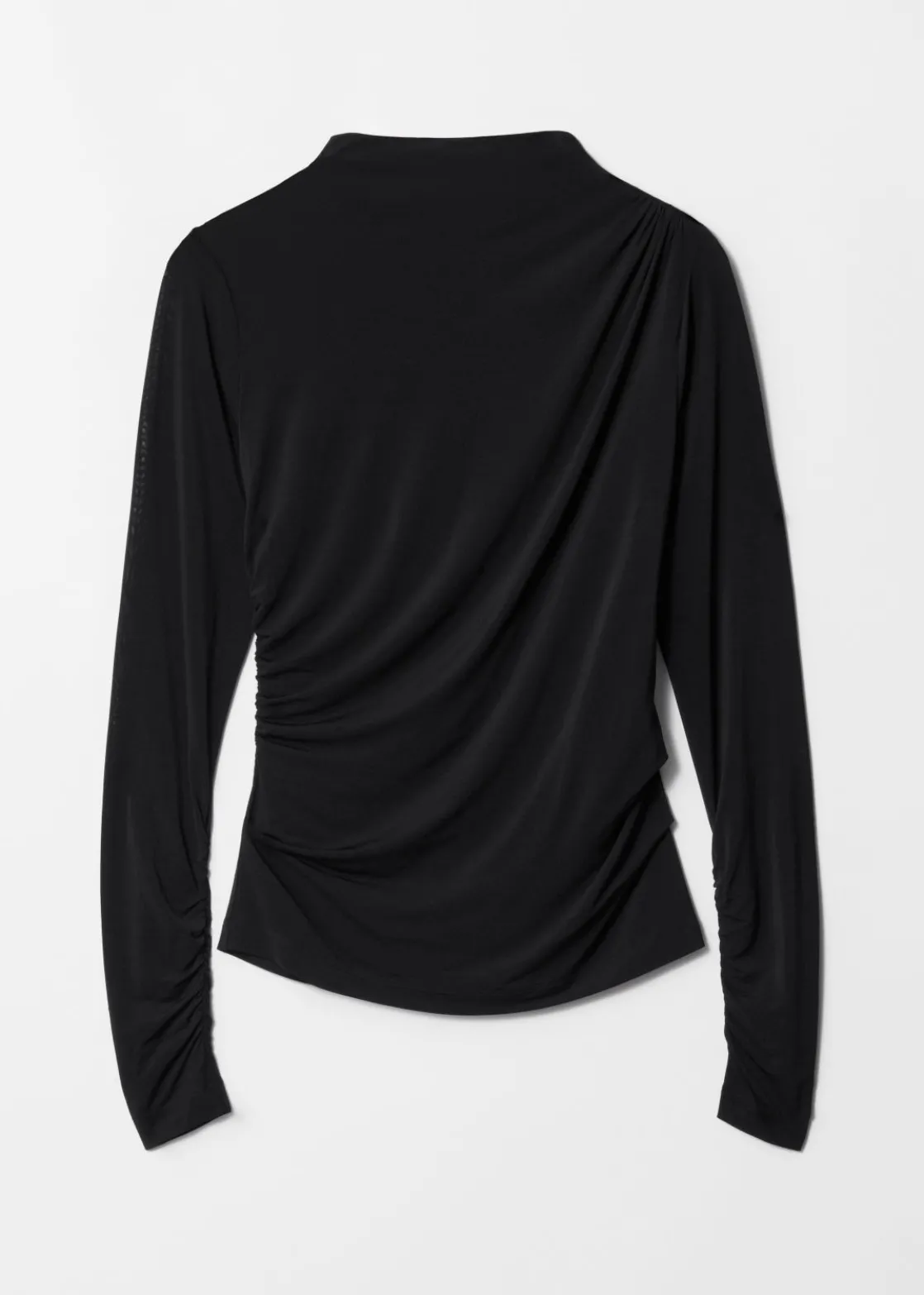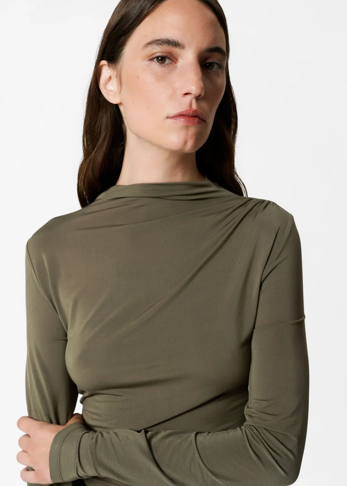 Long-sleeve top featuring a mock neck and a gently draped finish.