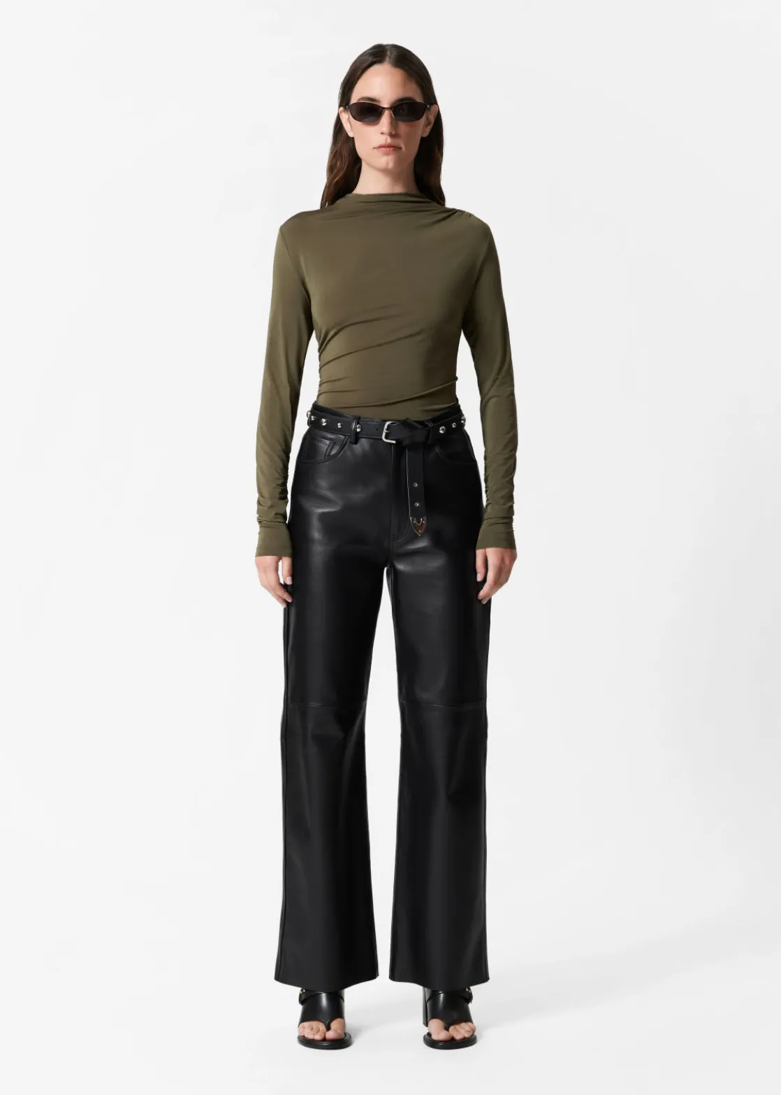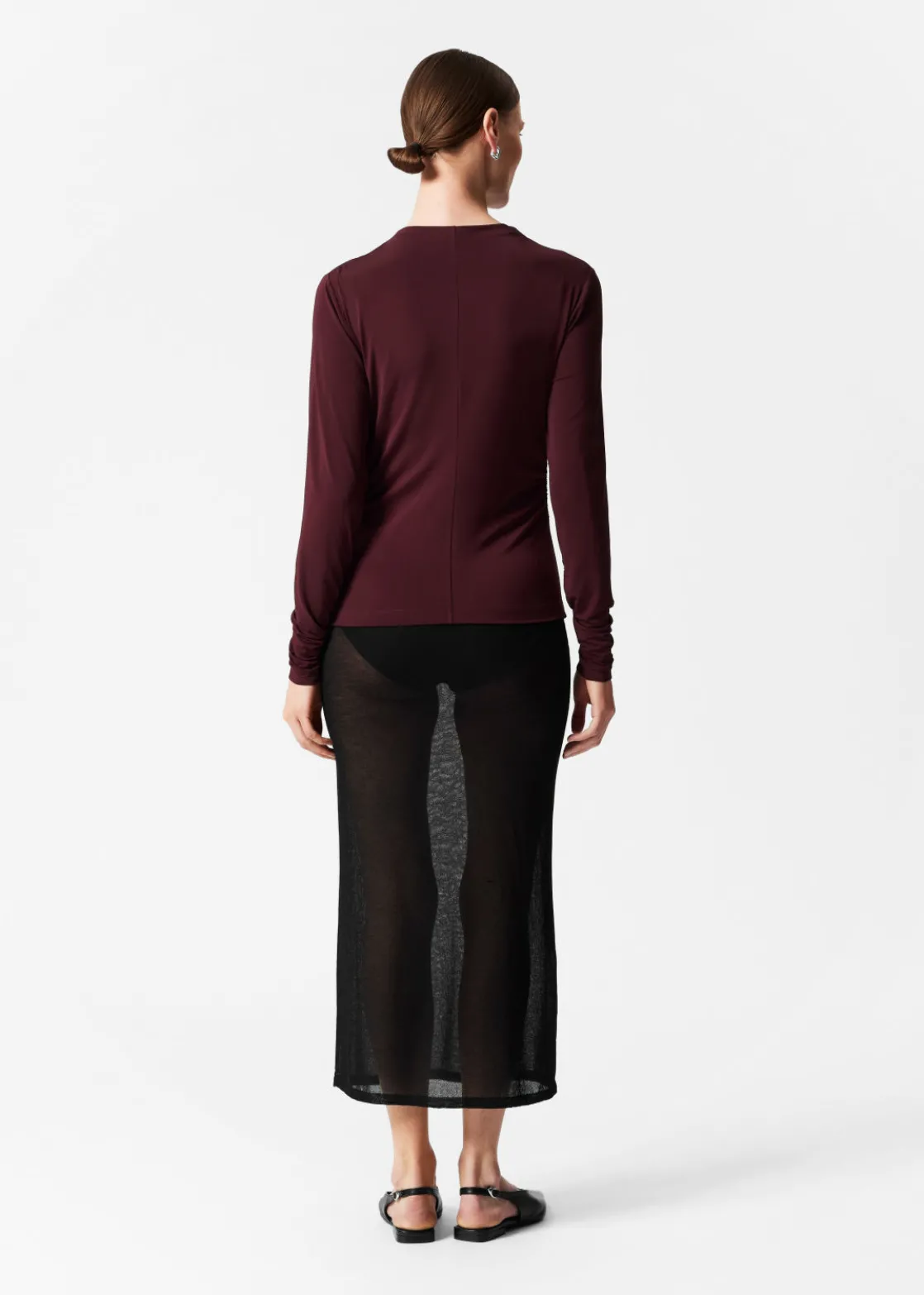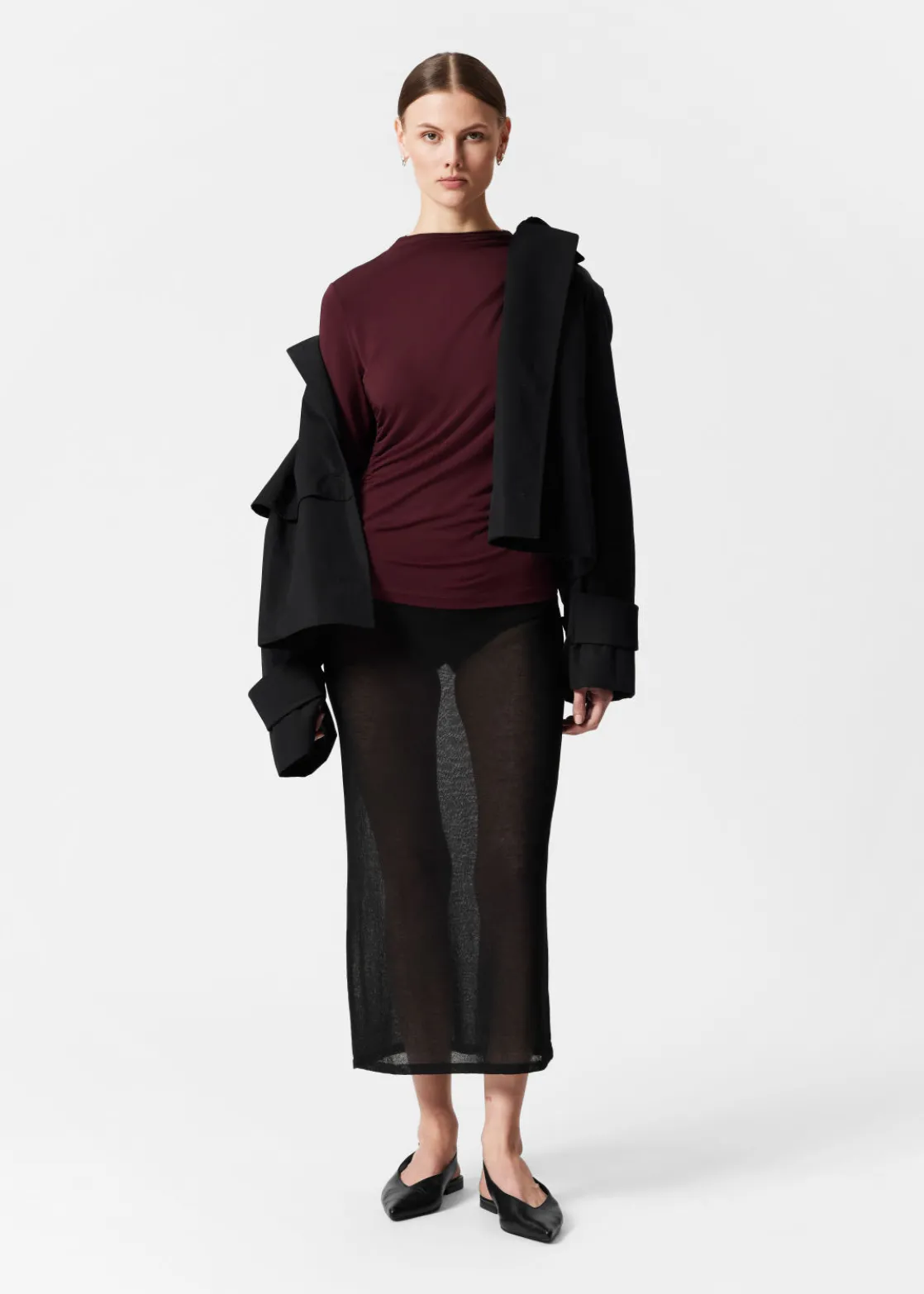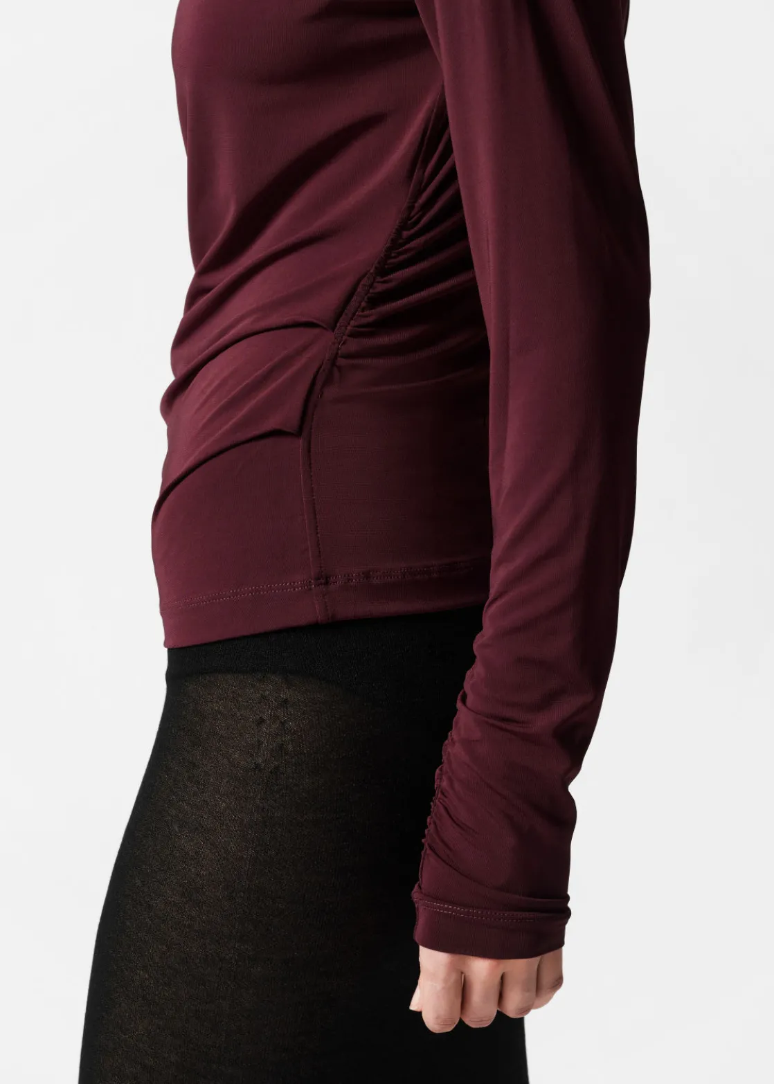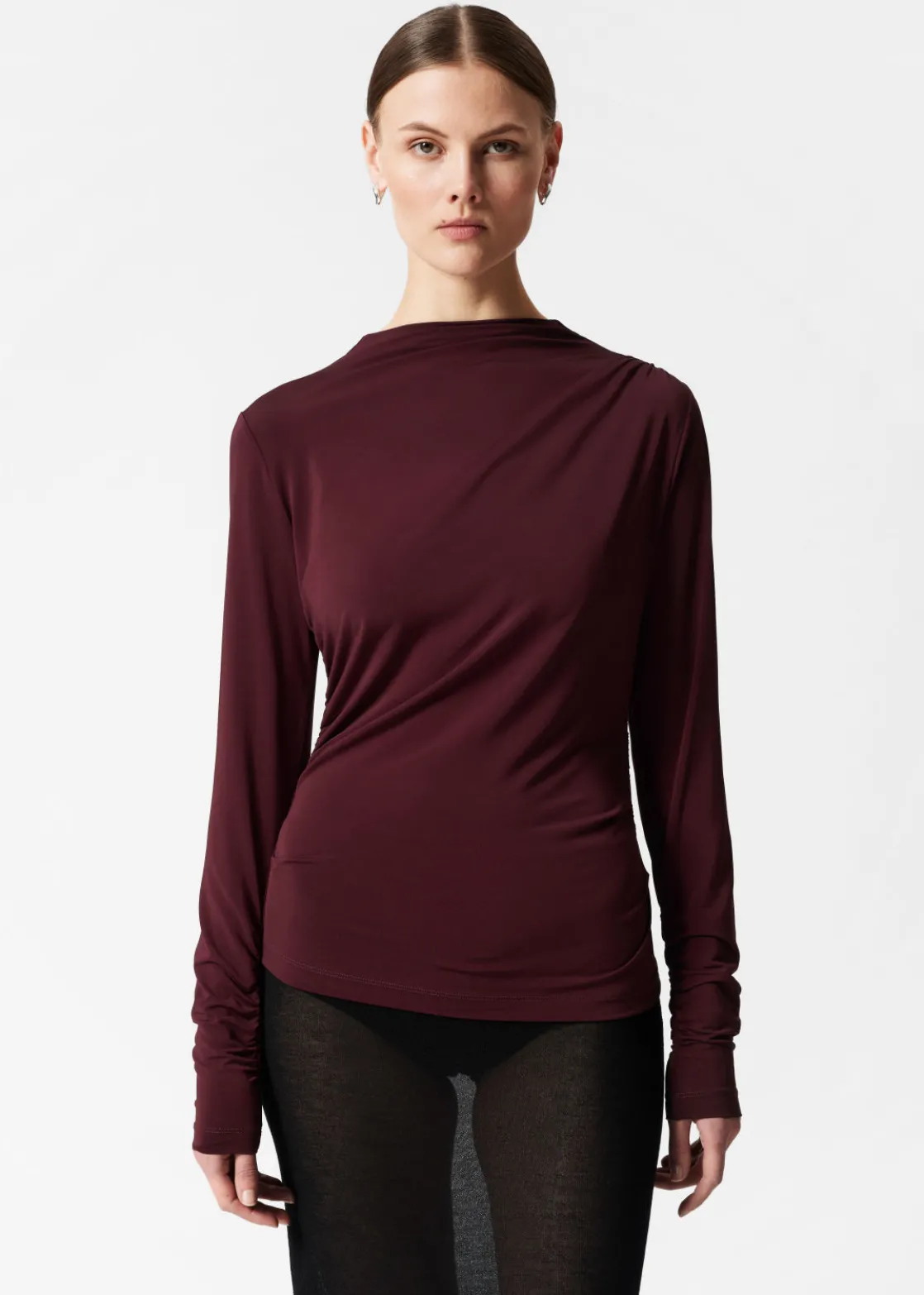 Long-sleeve top featuring a mock neck and a gently draped finish.