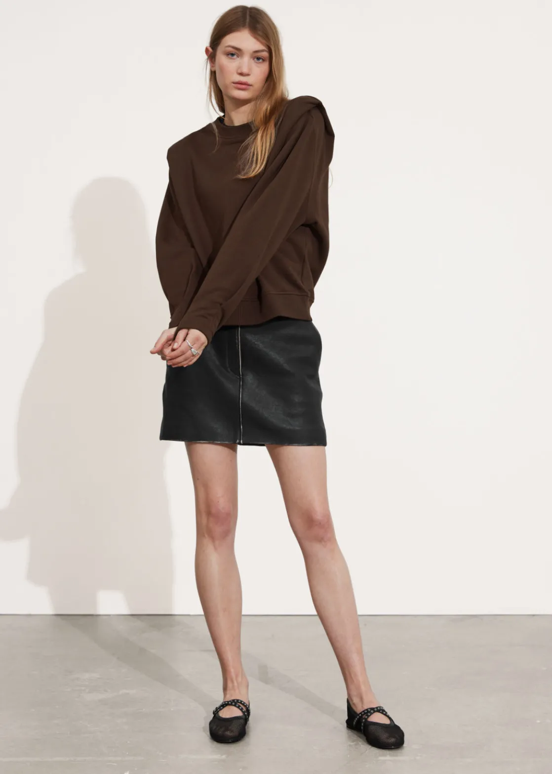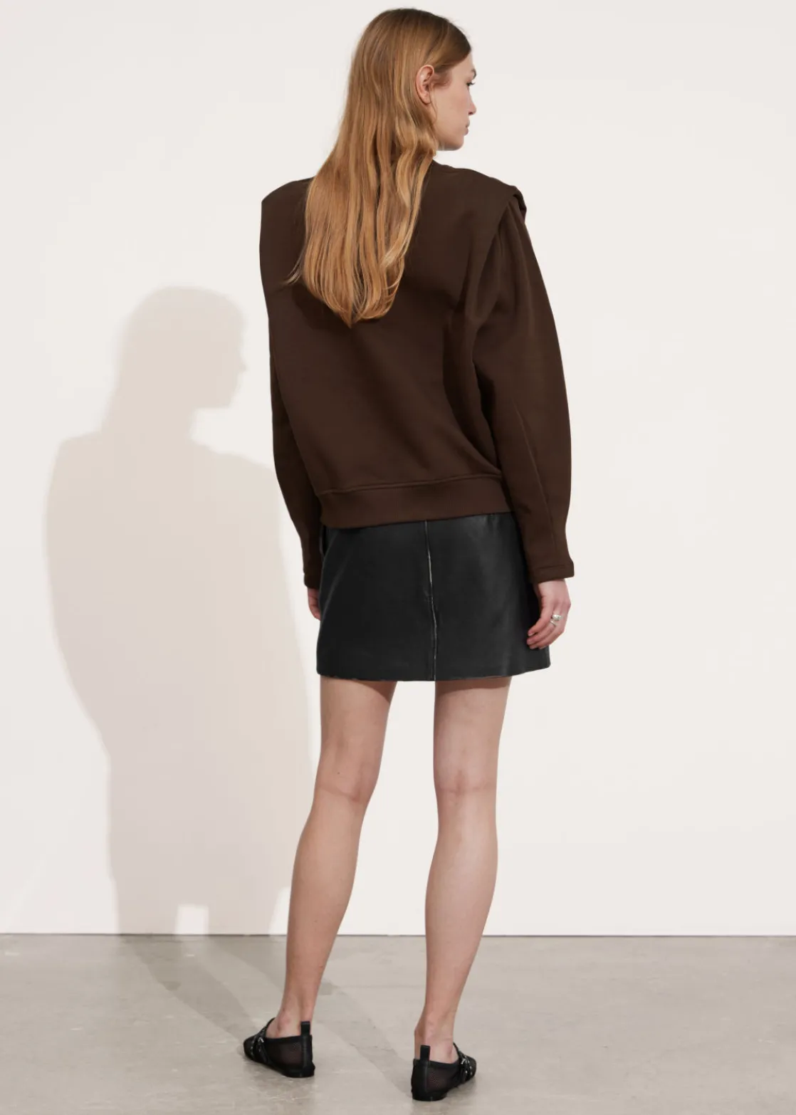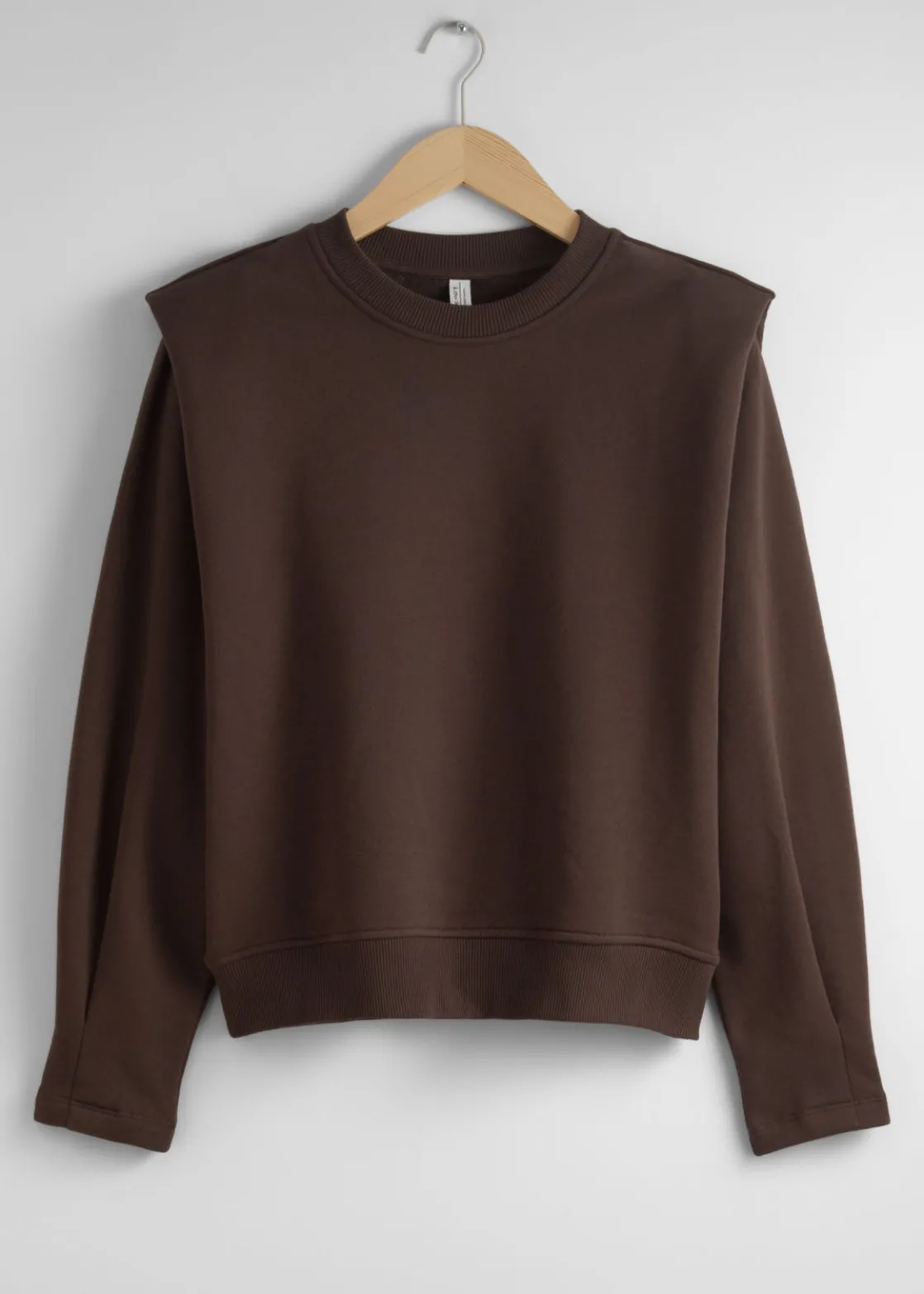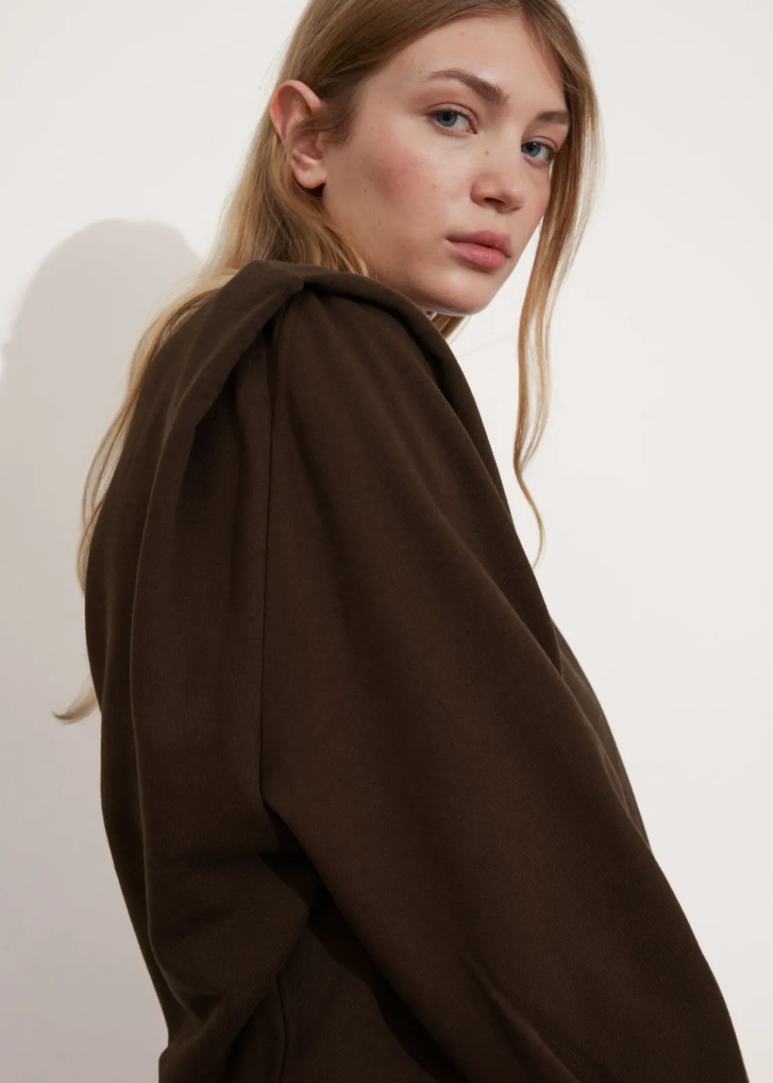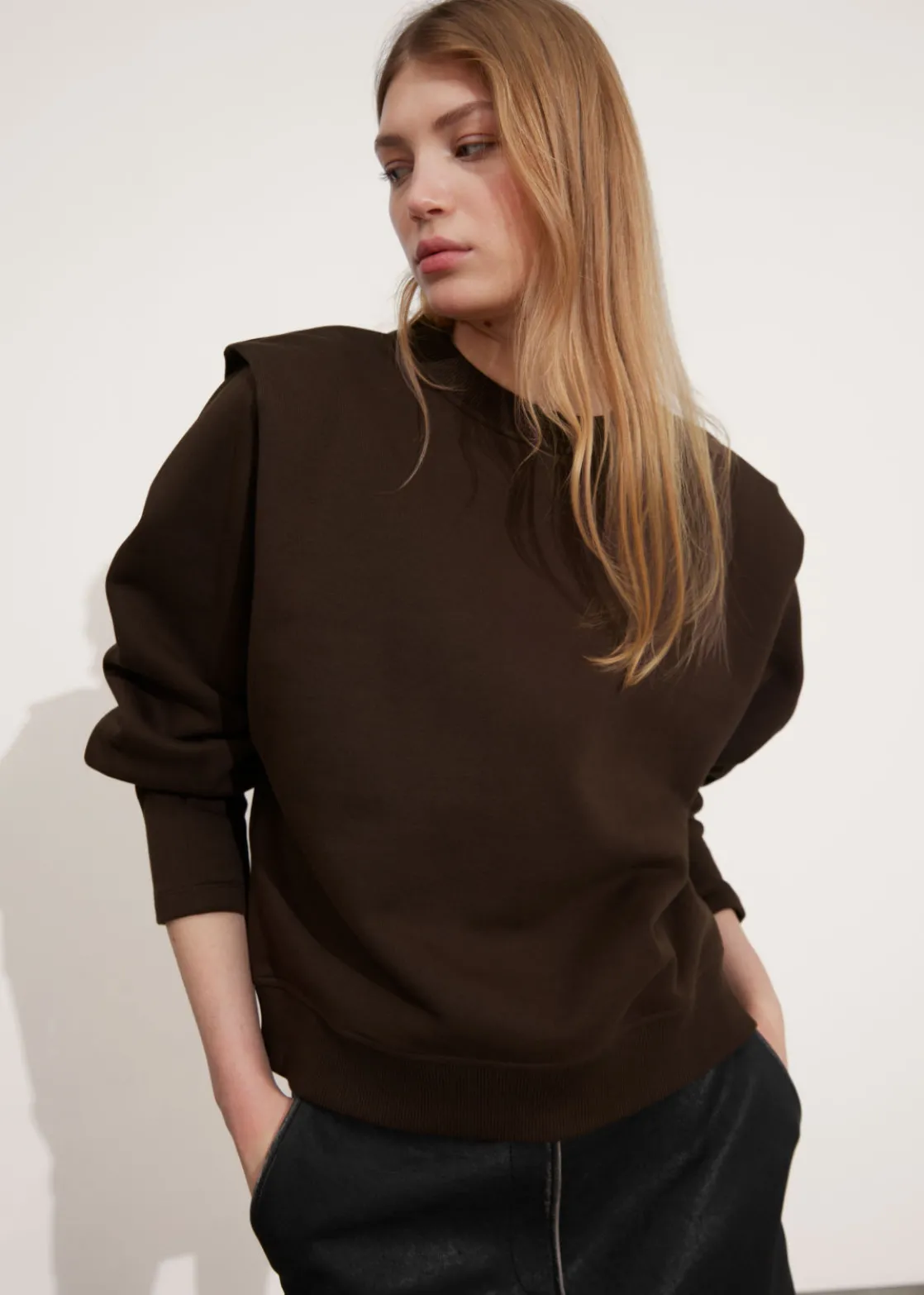 Fitted sweatshirt with pleated shoulders for a structured silhouette.