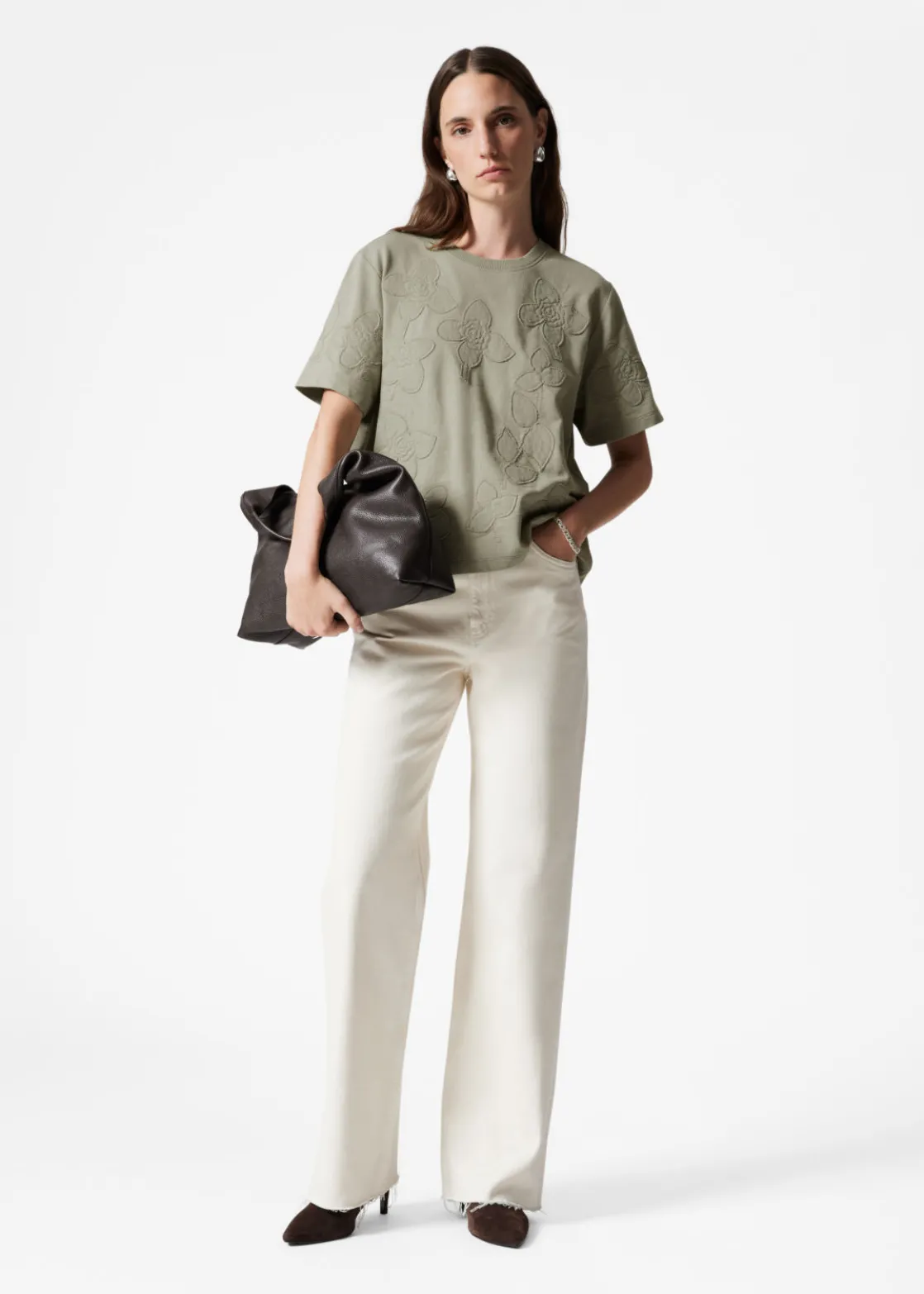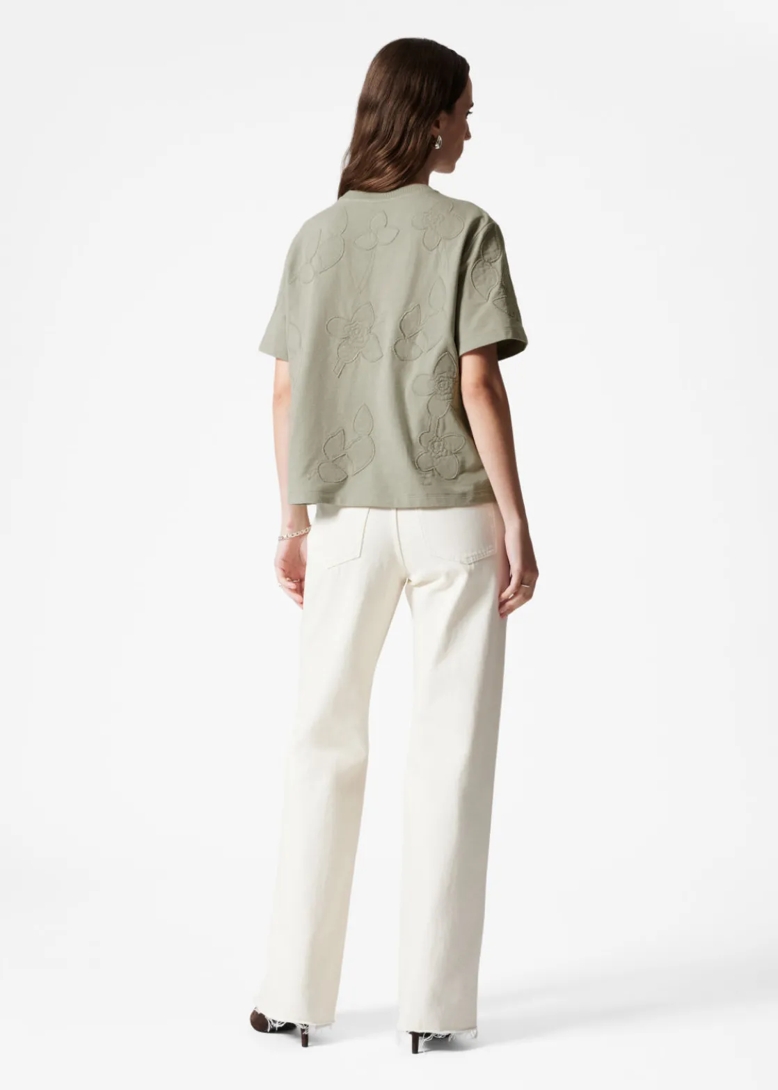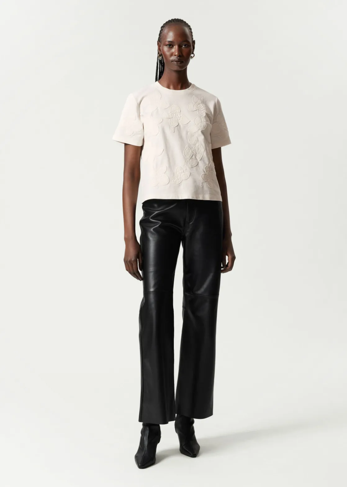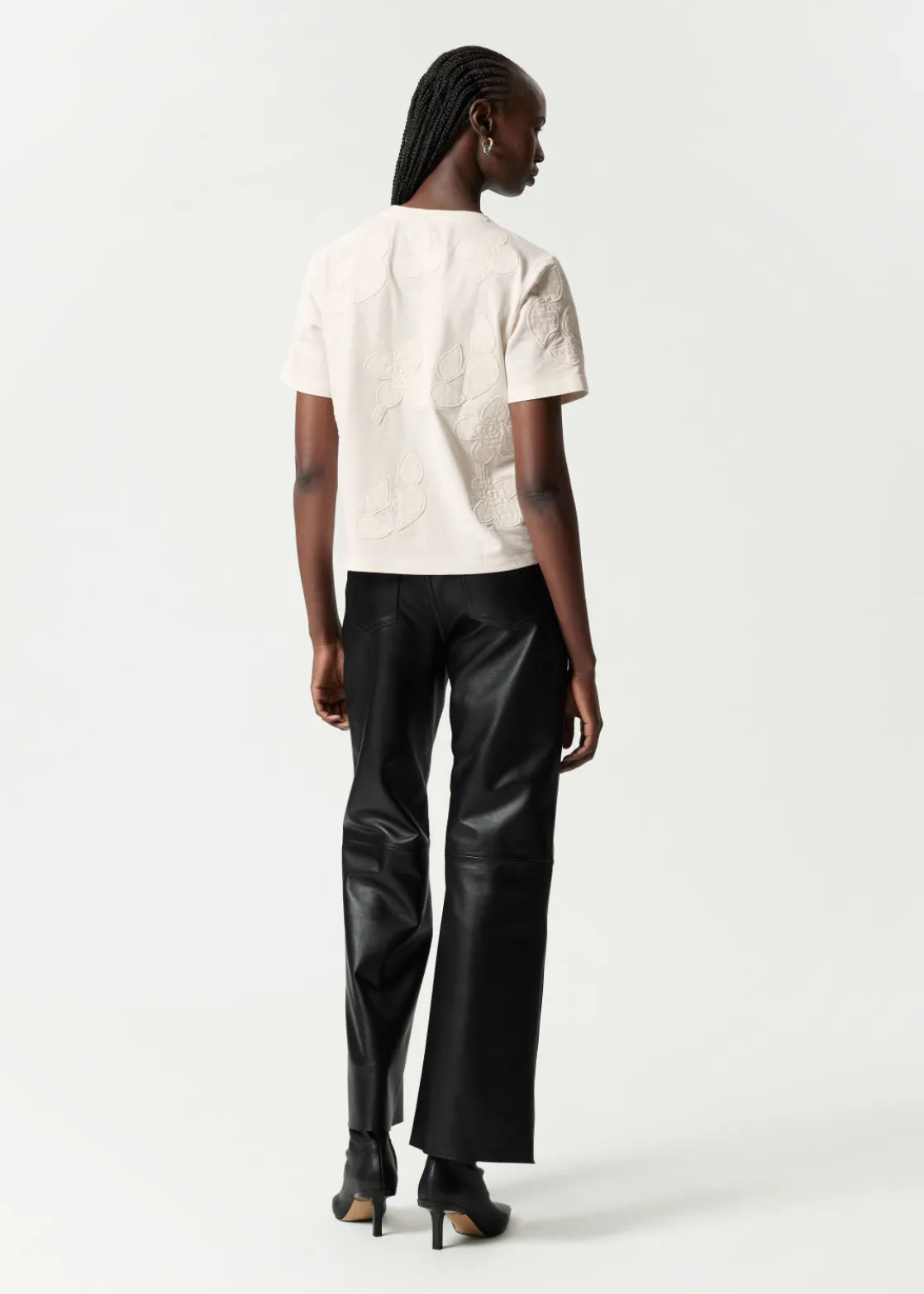 Boxy crewneck t-shirt featuring allover floral appliqué detailing.