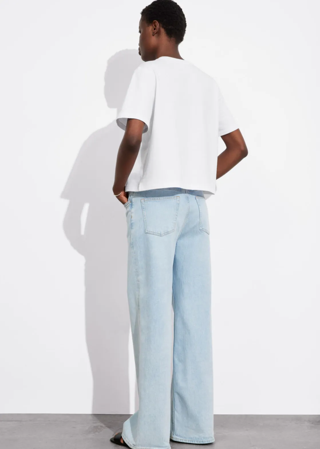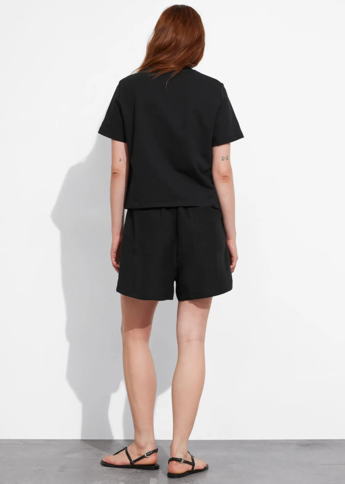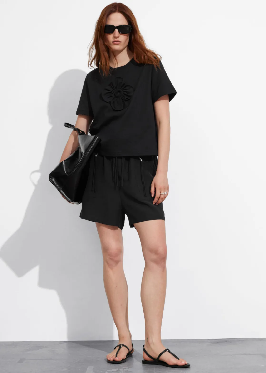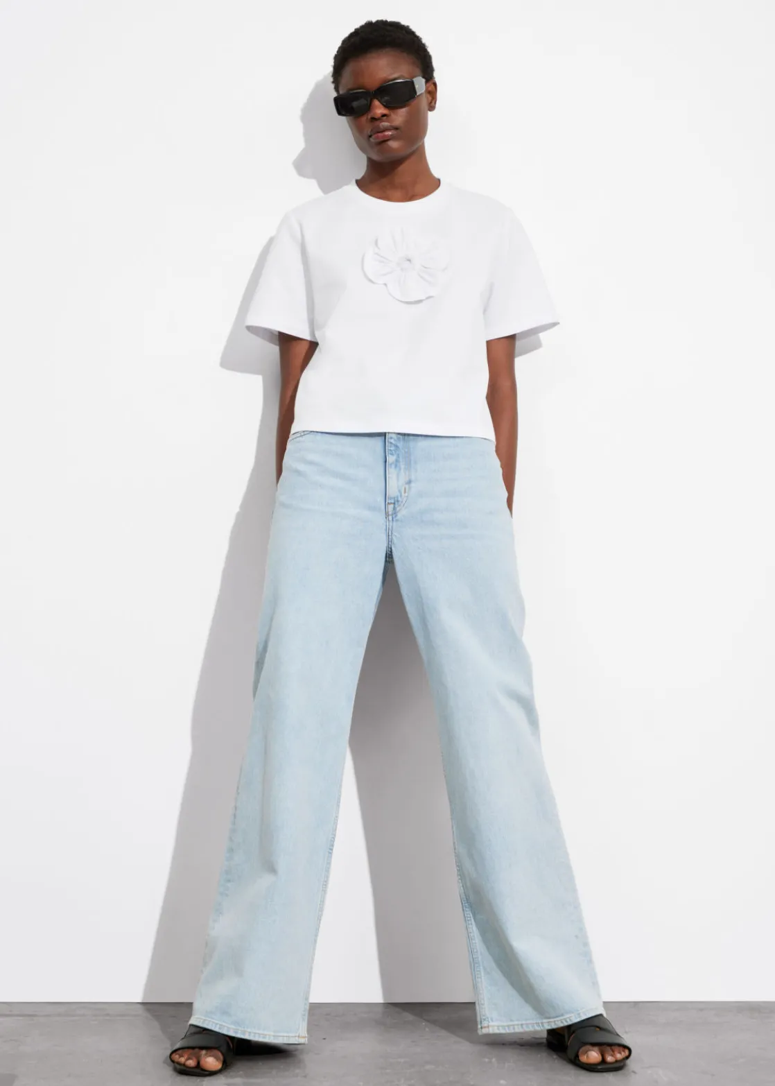 Boxy round-neck t-shirt detailed with a large floral appliqué at the centre front.