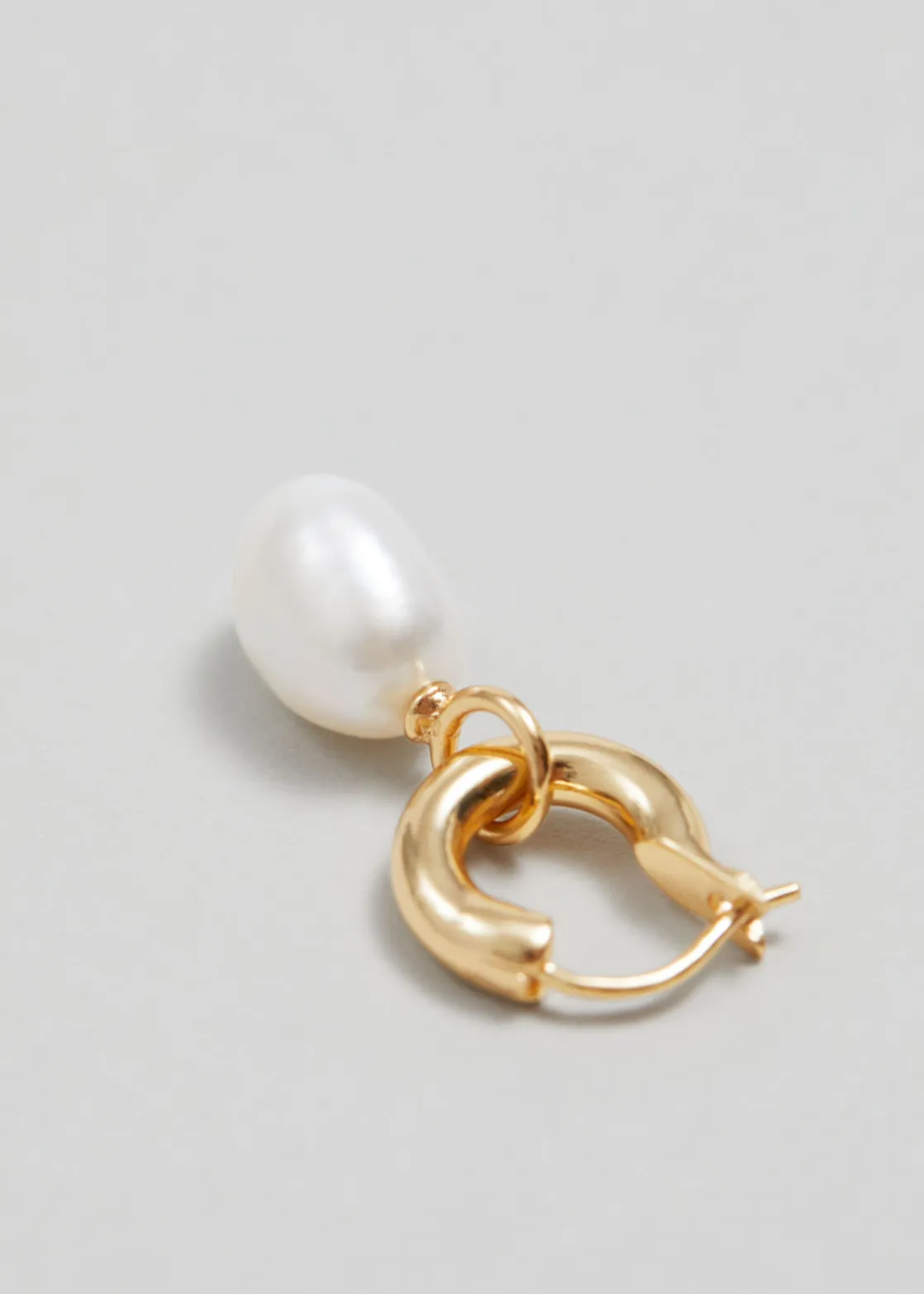 Hoop earrings, equally elegant and minimal, strung with lustrous freshwater pearl droppers. Finished with clasp backings.