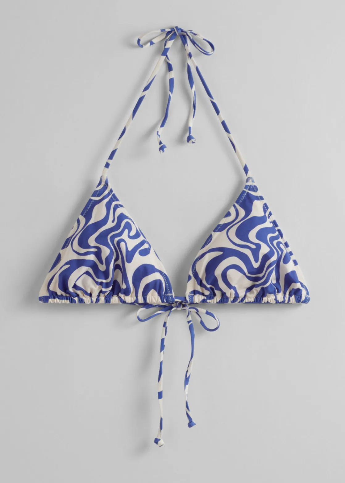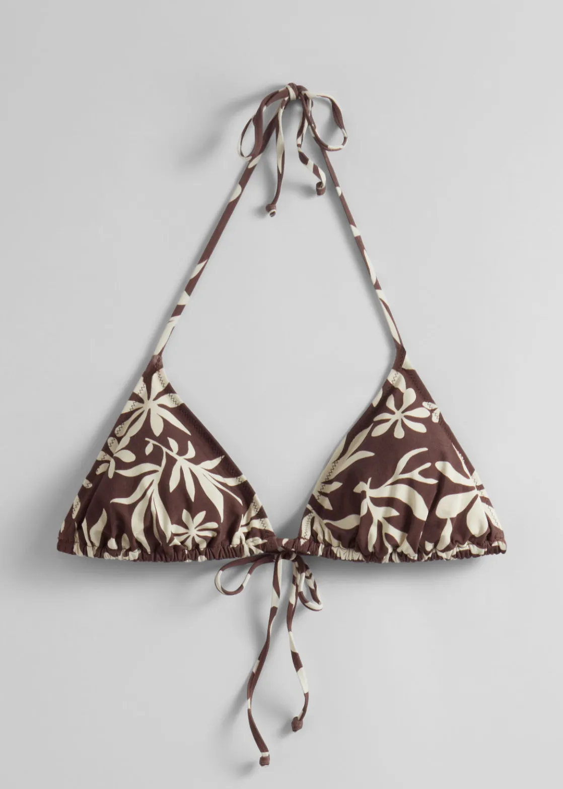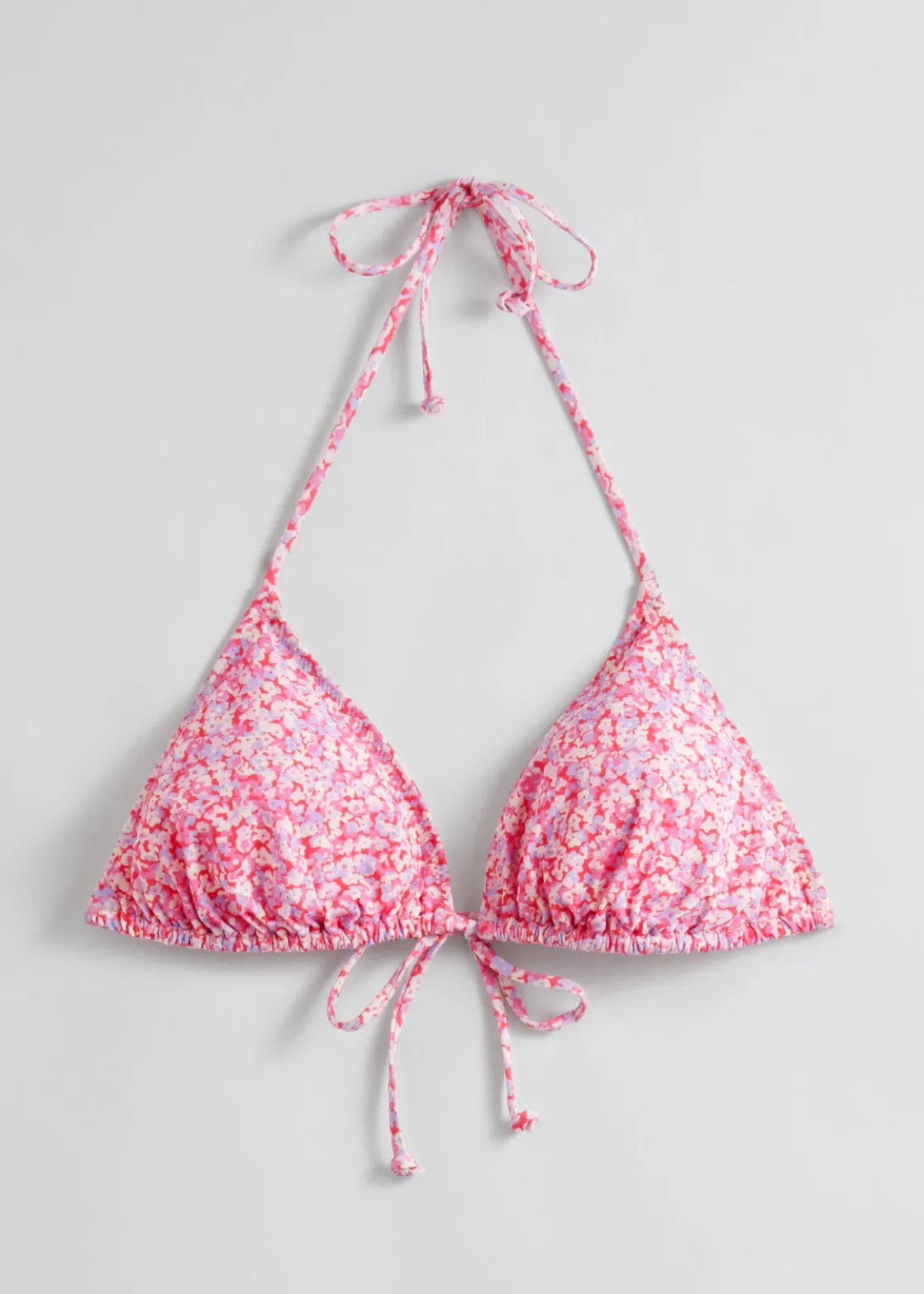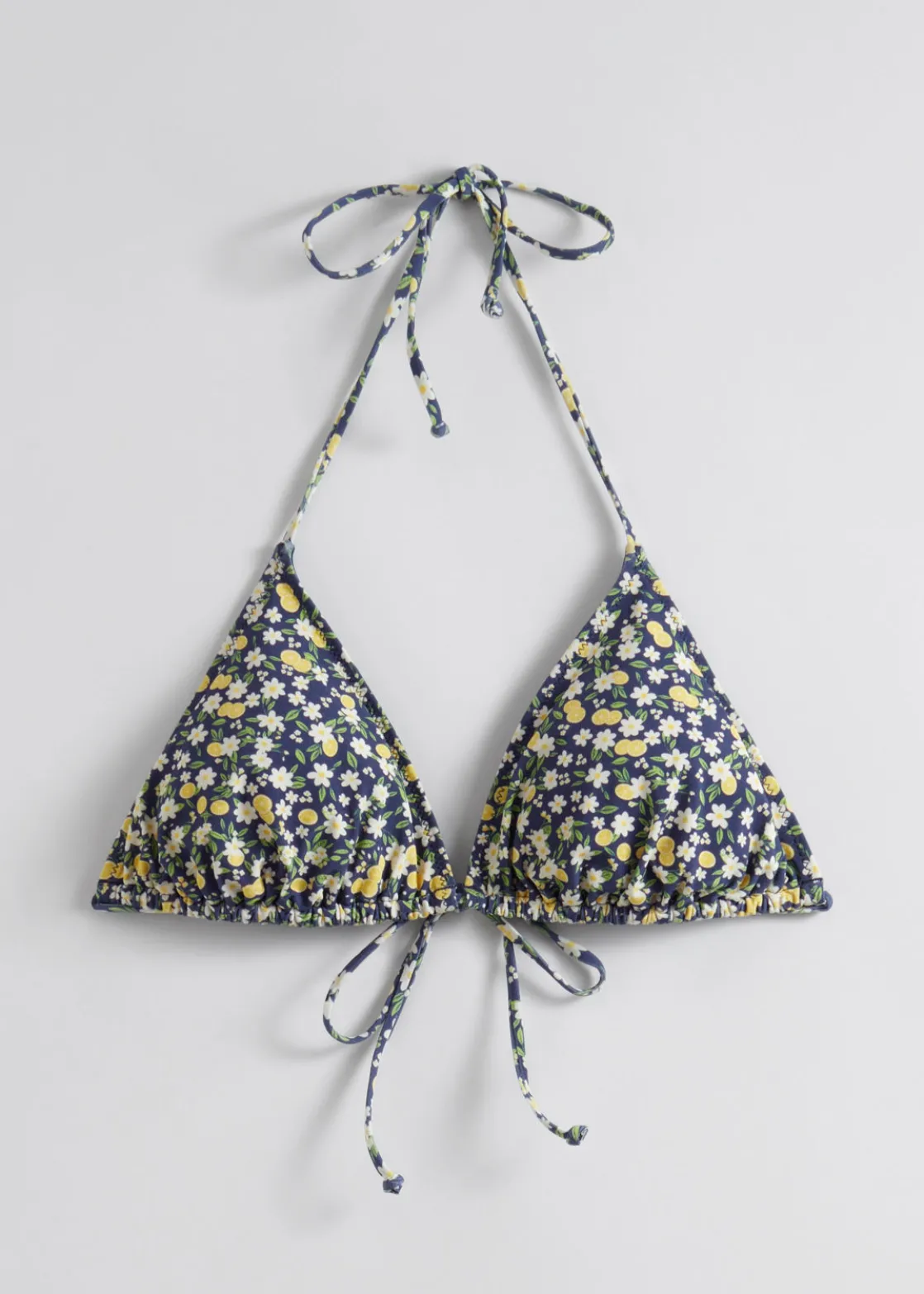 Triangle bikini halterneck top detailed with a bow at the front and the neck. Featuring removable padding.