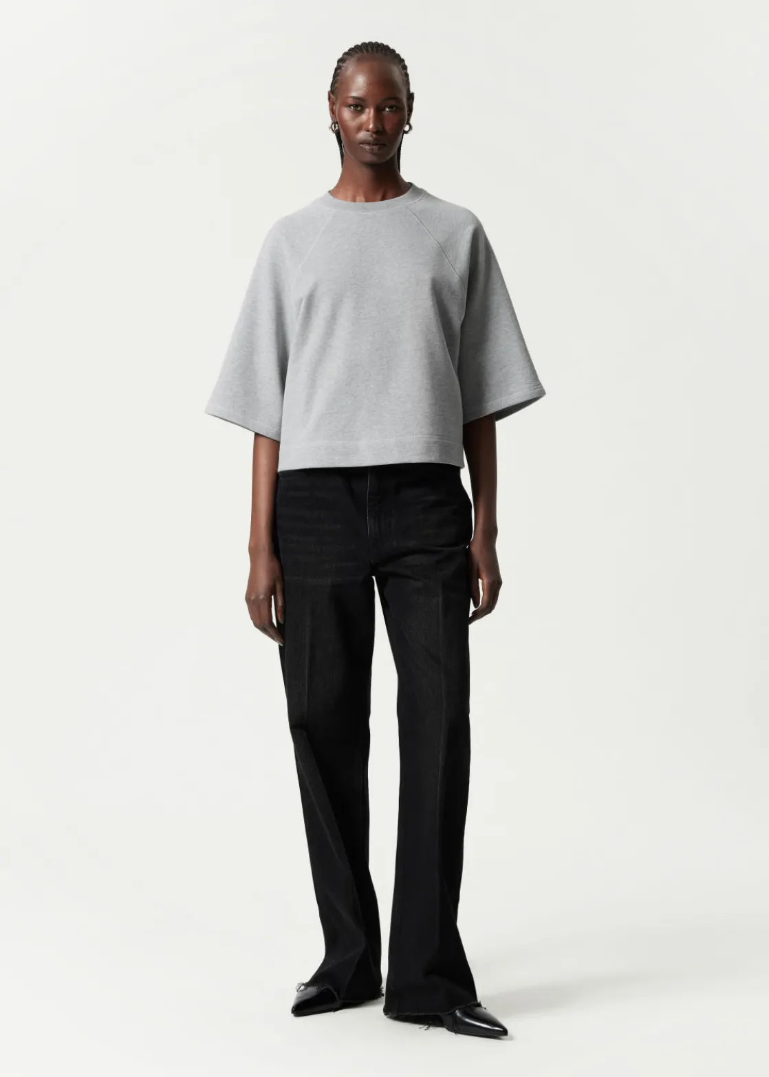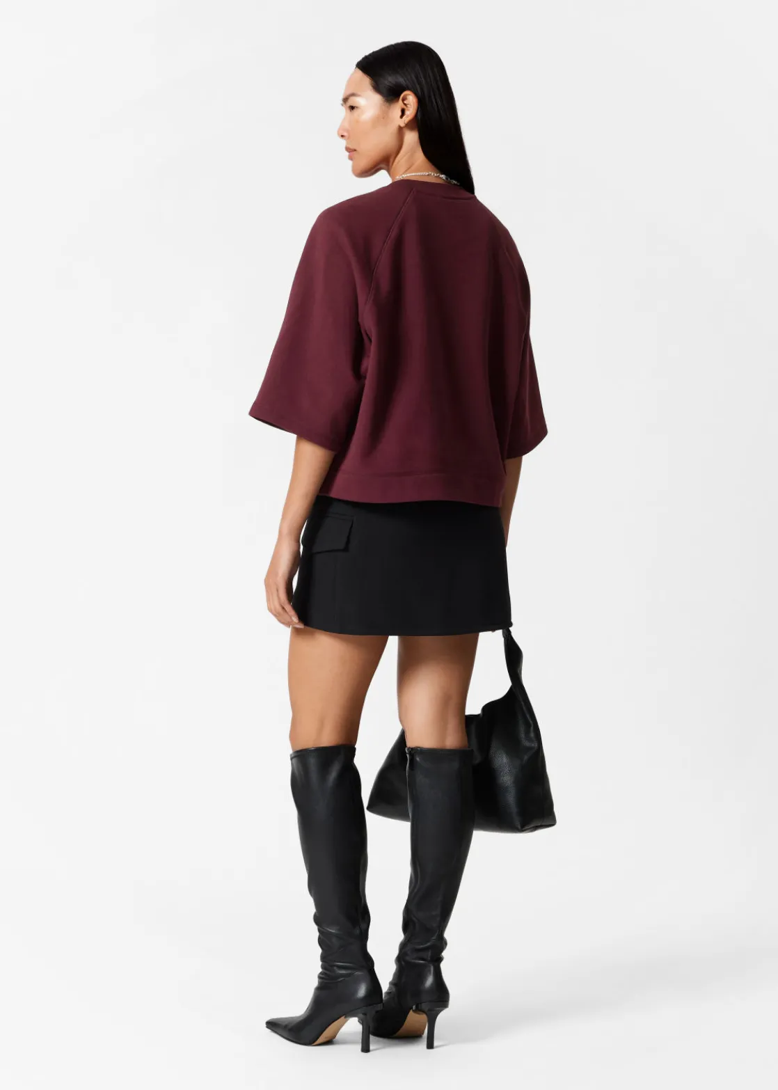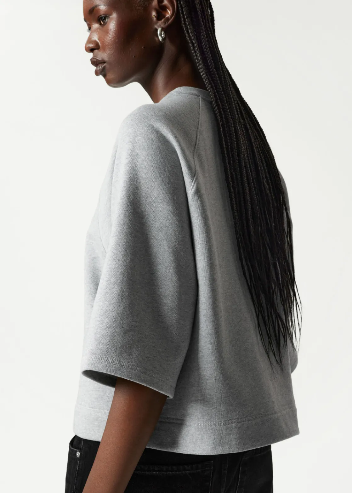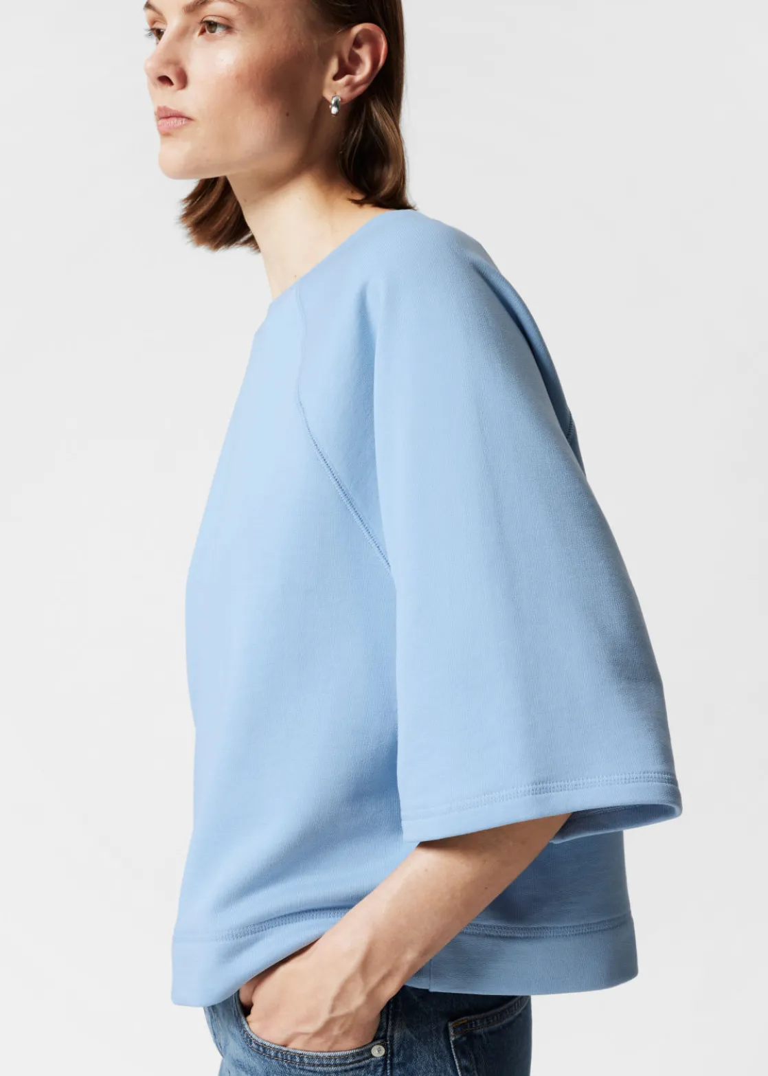 Cotton jersey sweater featuring three-quarter raglan sleeves.
