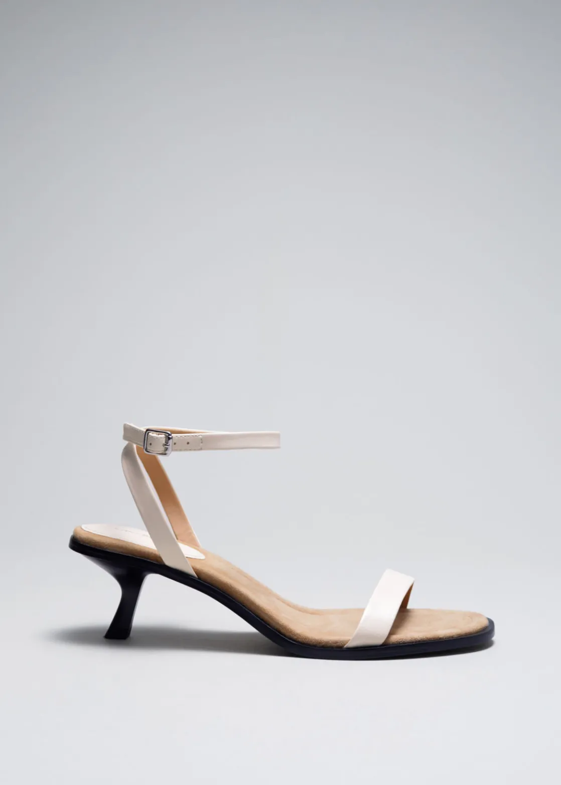 These sandals are crafted from leather and have rounded toes contrasted by geometric curved kitten heels and slim buckle-fastening straps. Finished with comfortably padded insole.