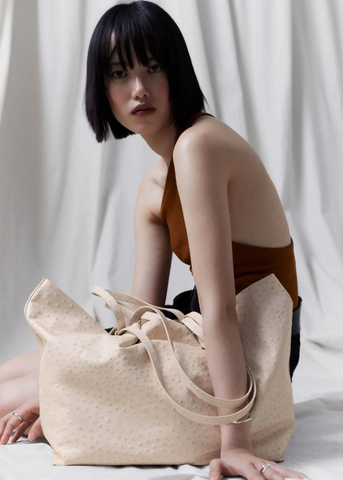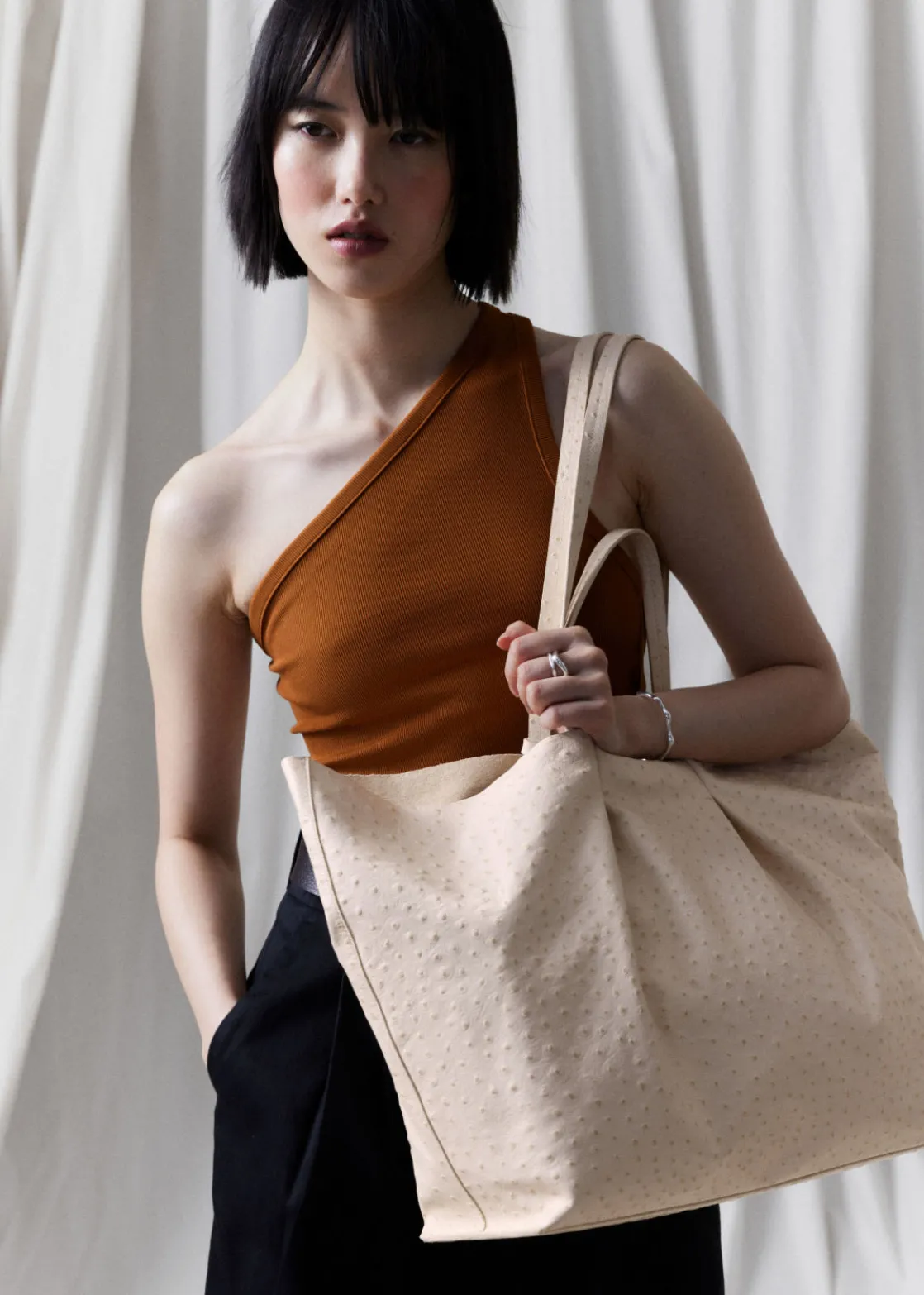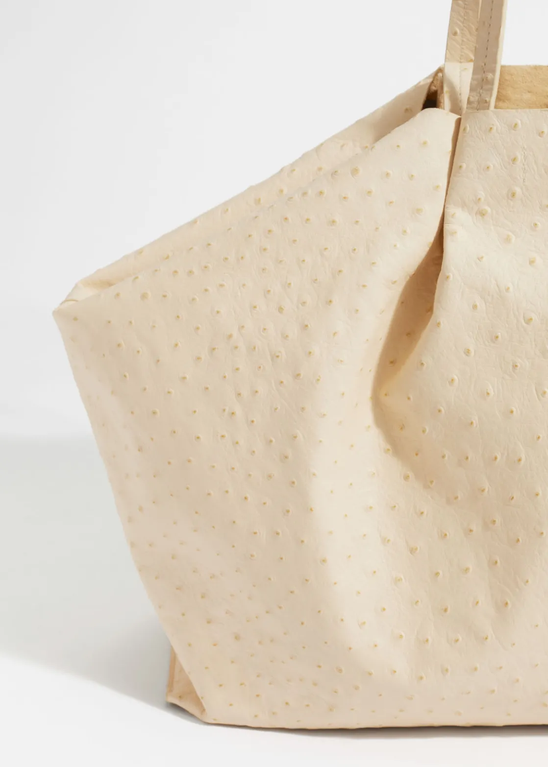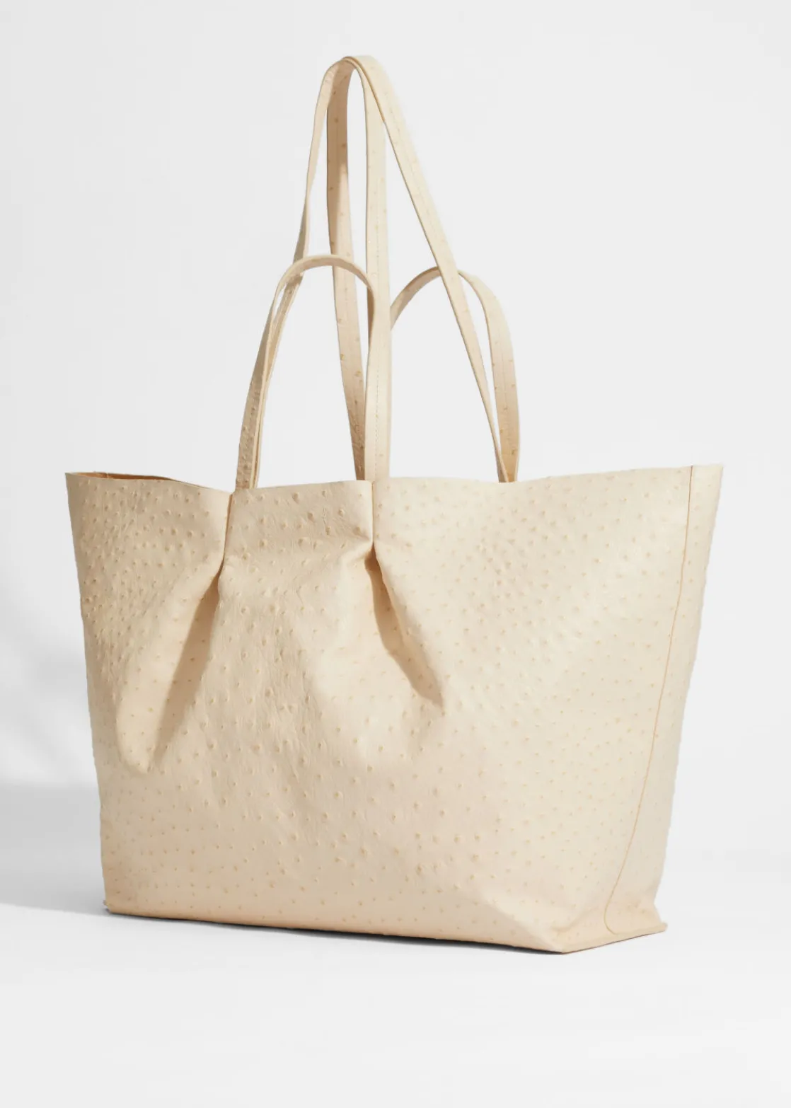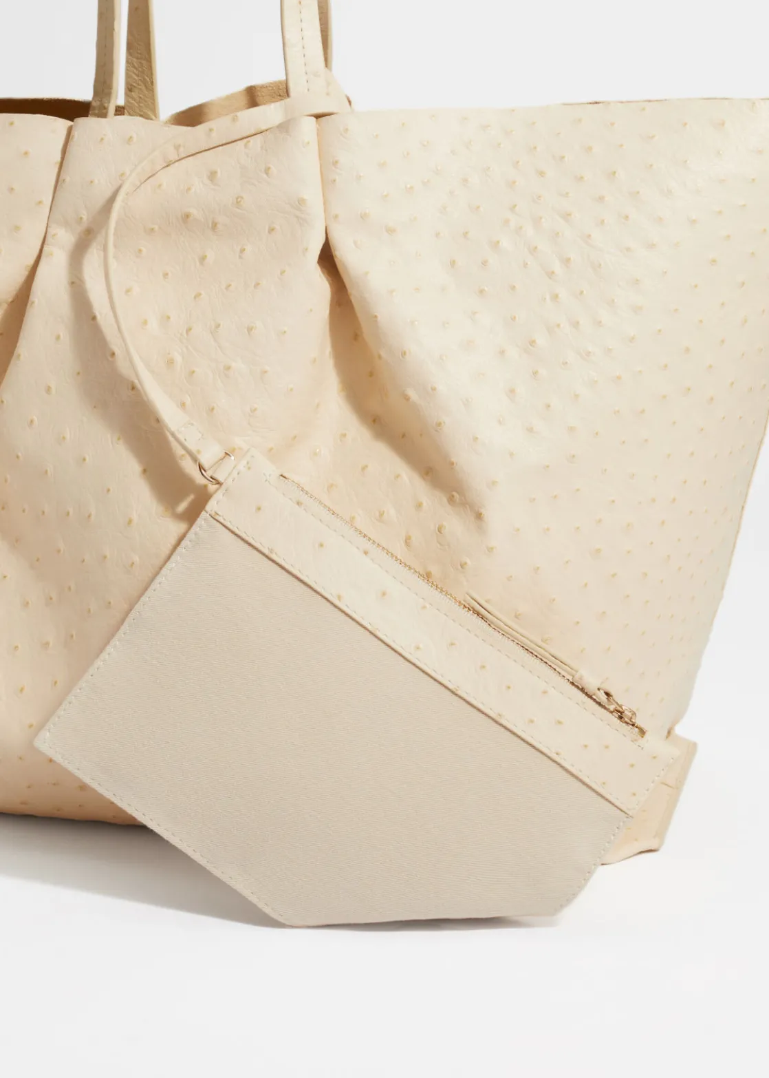 This generous tote will hold your everyday essentials and more. Crafted in smooth leather with an ostrich-inspired finish, and left unlined for added lightness, detailed with double handles for versatility. Finished with a zip pouch to keep smaller items from getting lost in the spacious interior.
