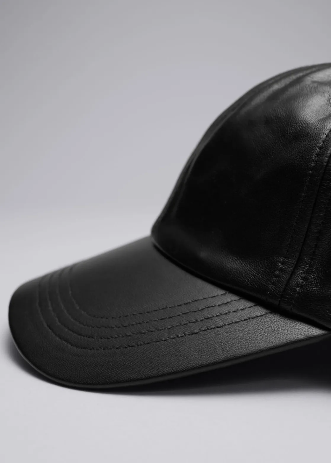 An elevated take on a classic baseball cap, crafted in supple leather, featuring a curved peak constructed with five panels and an adjustable back tab so you can customise the fit.