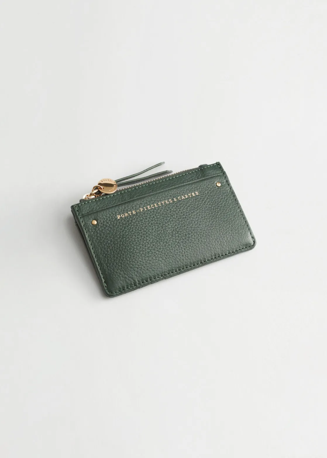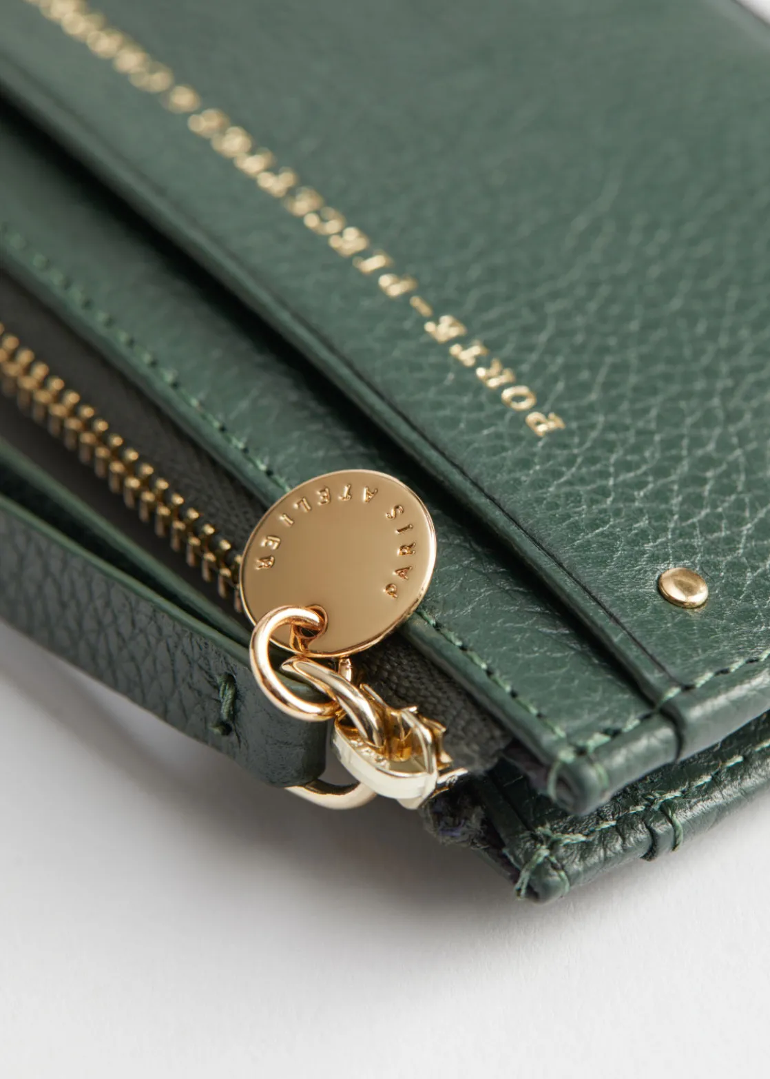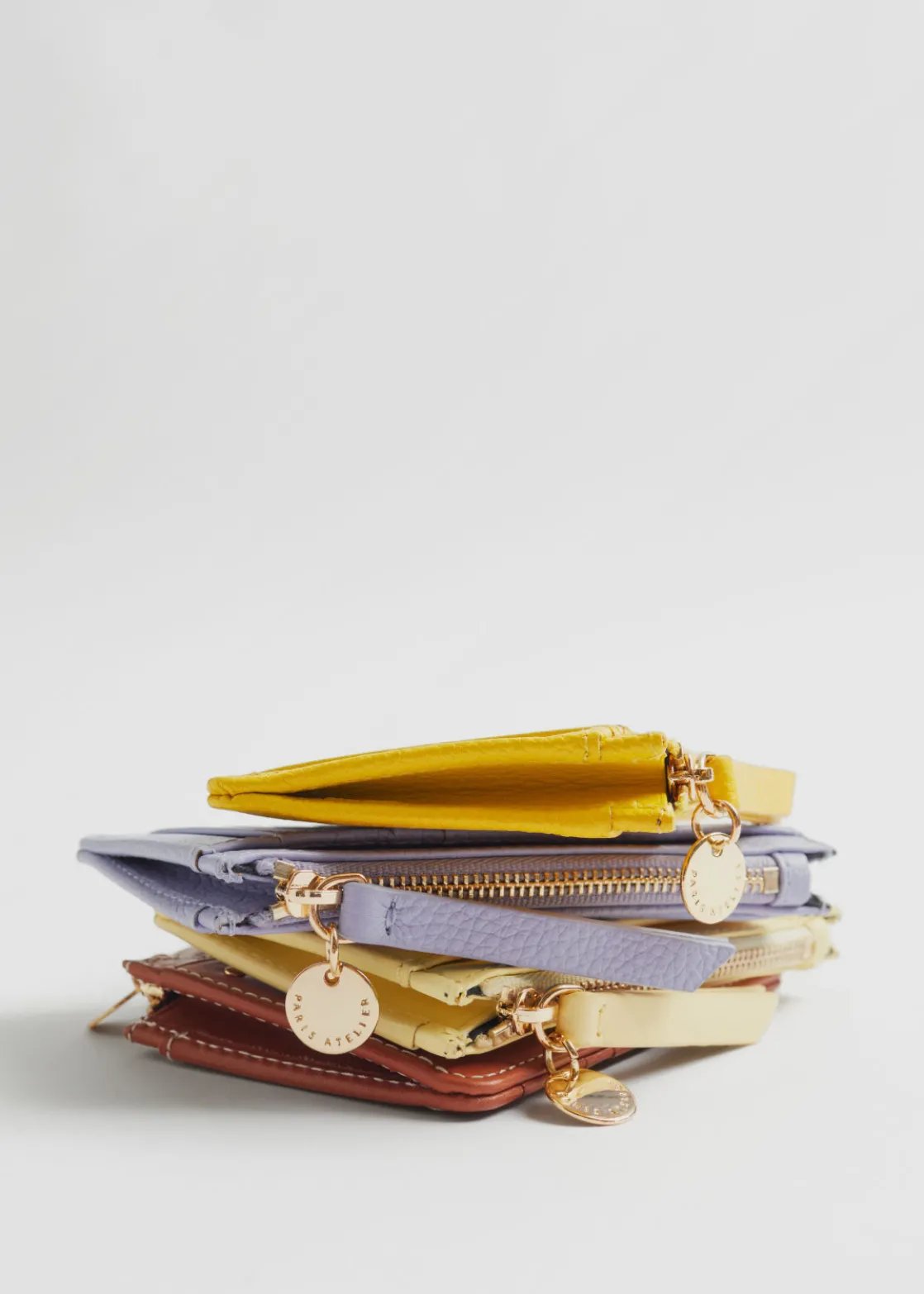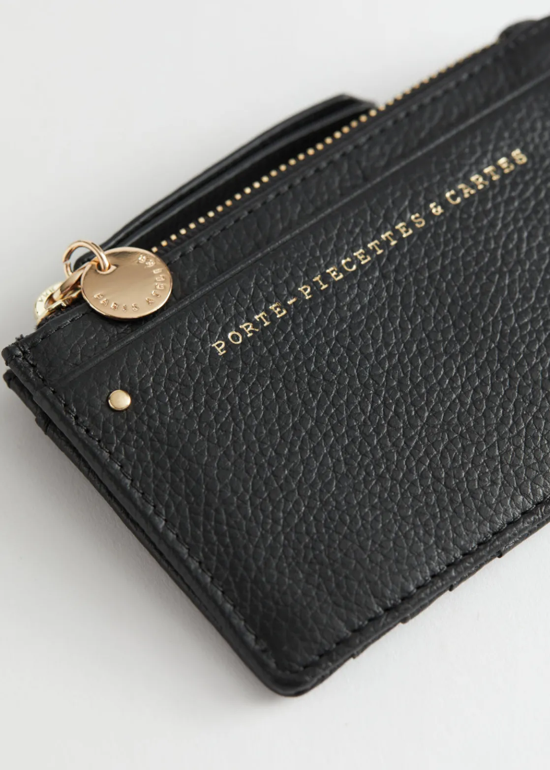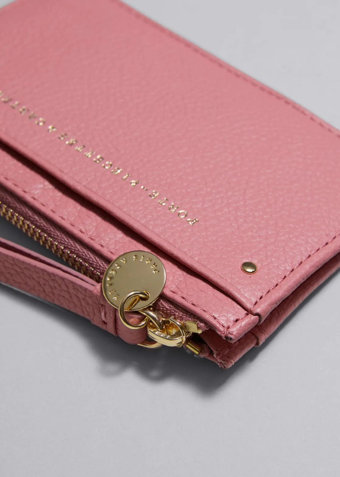 Leather wallet with a zipper compartment, card holder pockets and gold-toned hardware. Featuring a coin pendant with ‘Paris Atelier’ embossed detailing and a pull tab.