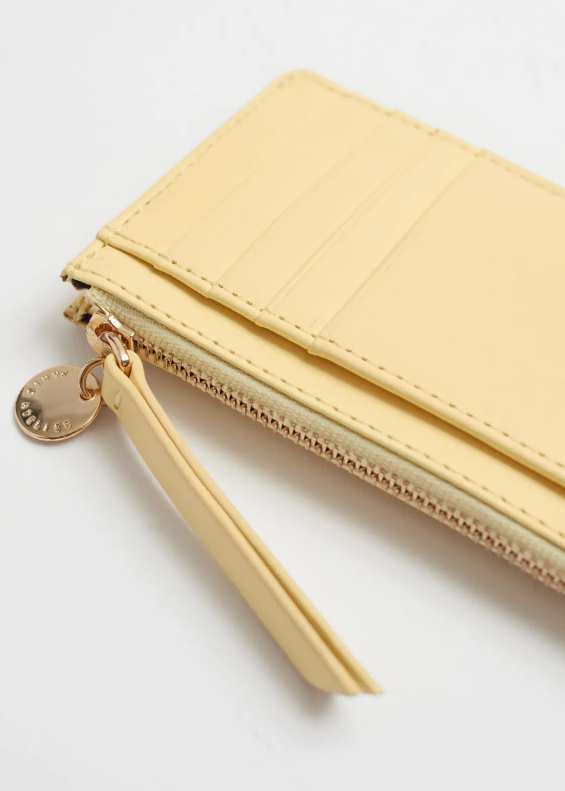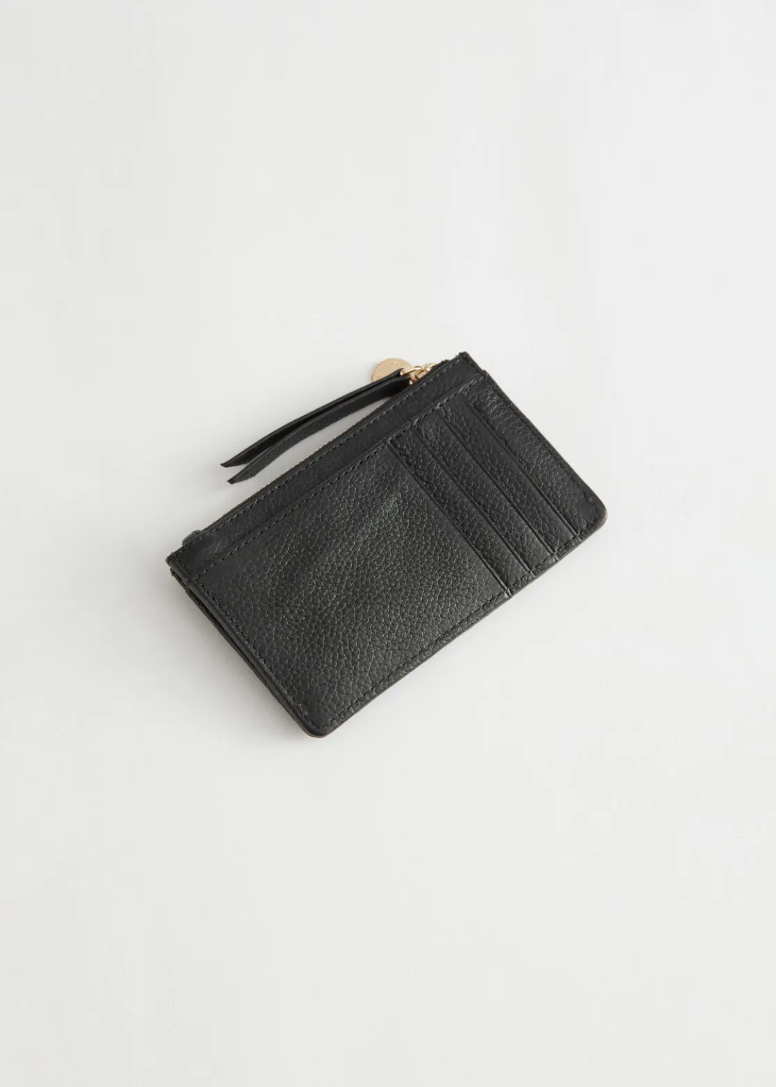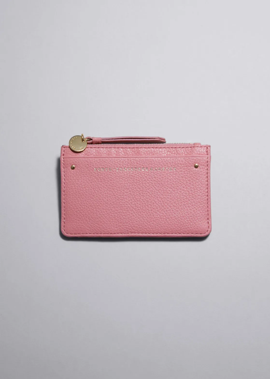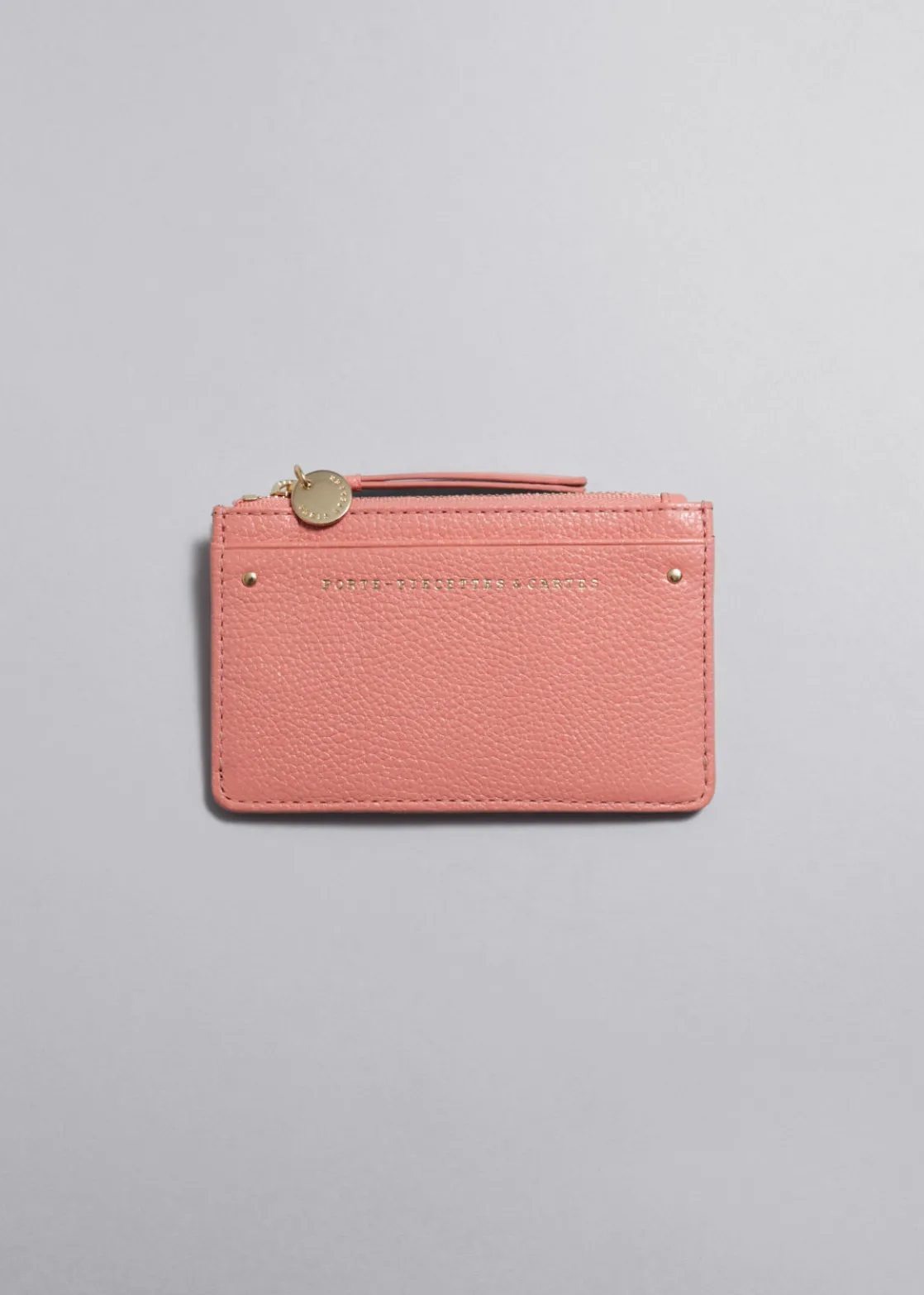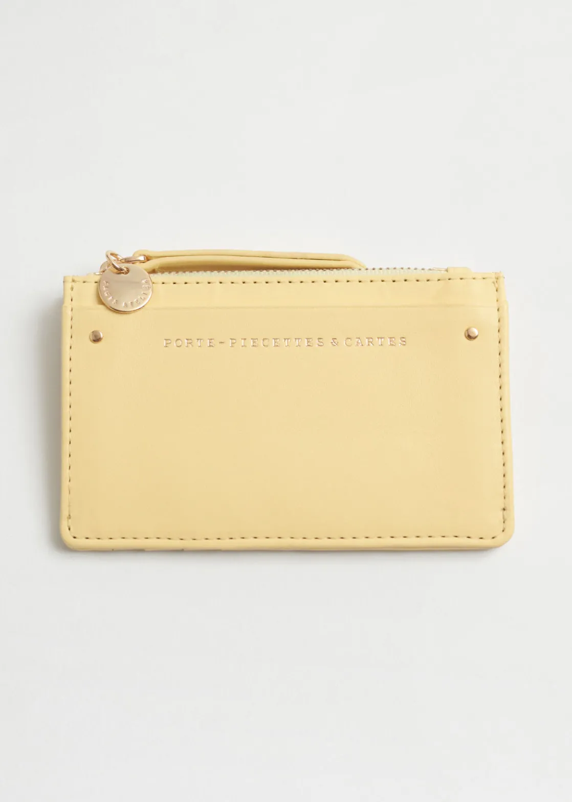 Leather wallet with a zipper compartment, card holder pockets and gold-toned hardware. Featuring a coin pendant with ‘Paris Atelier’ embossed detailing and a pull tab.