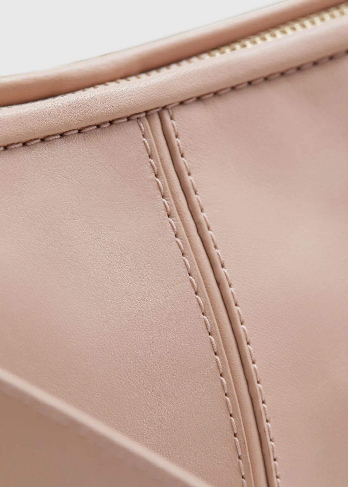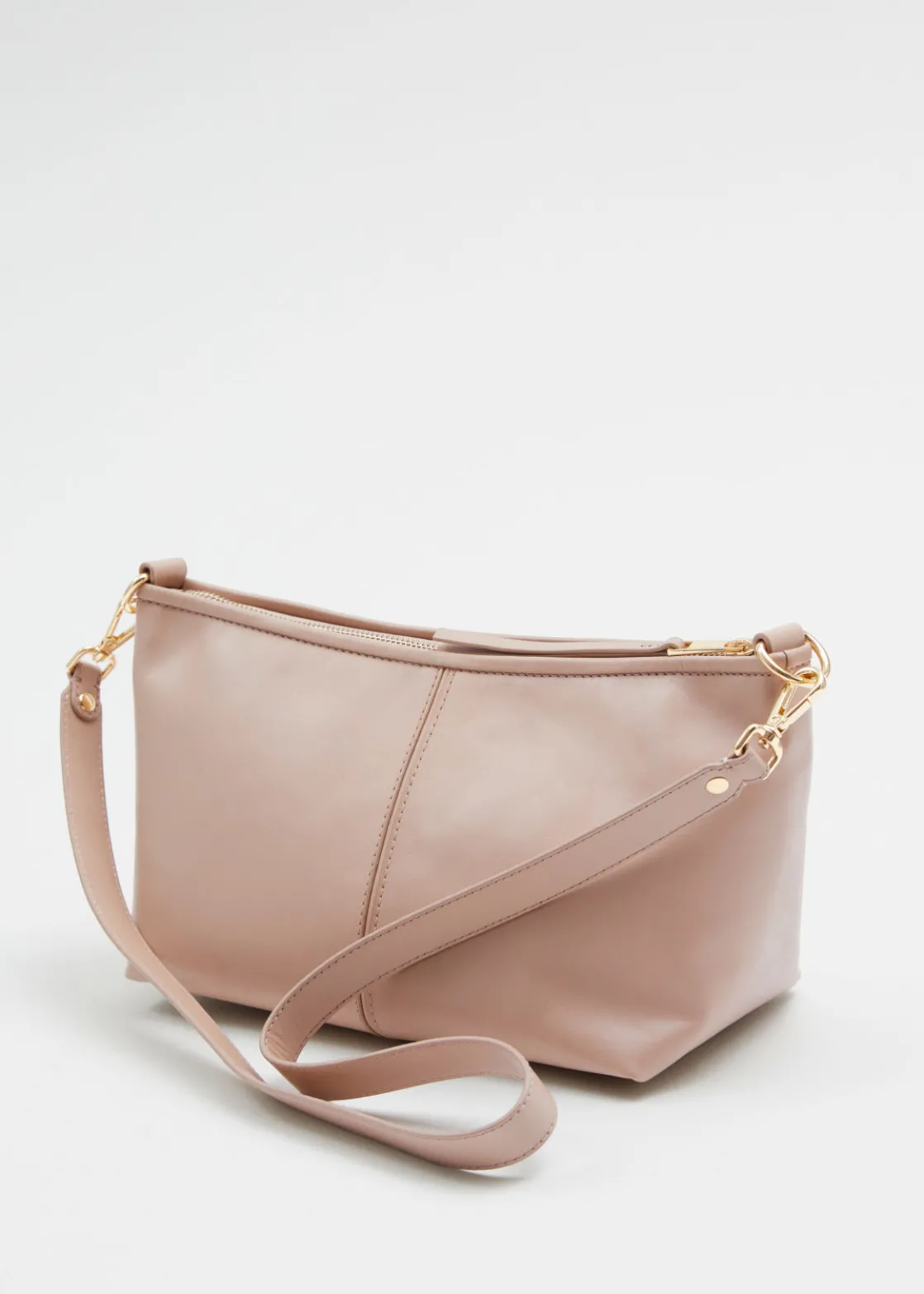 Leather shoulder bag featuring a detachable shoulder strap. Finished with a gold-toned zipper and tonal leather pull-tab, cotton lining and one inner pocket.