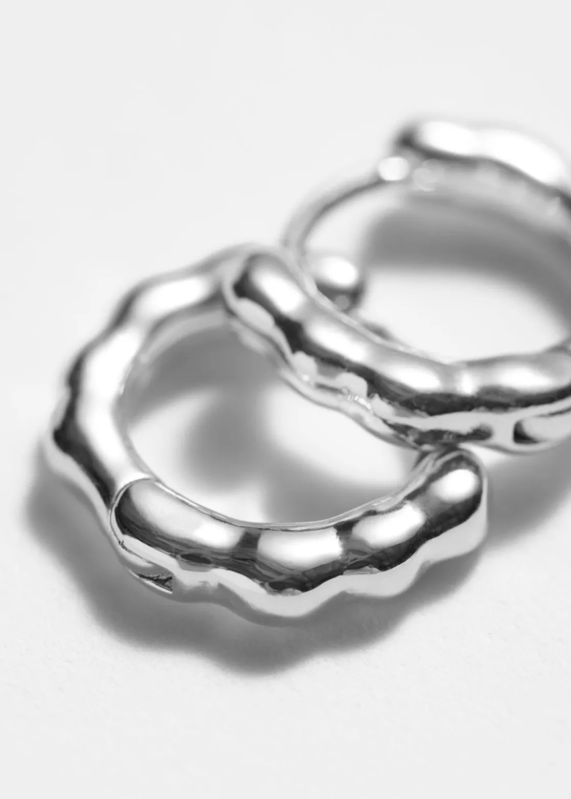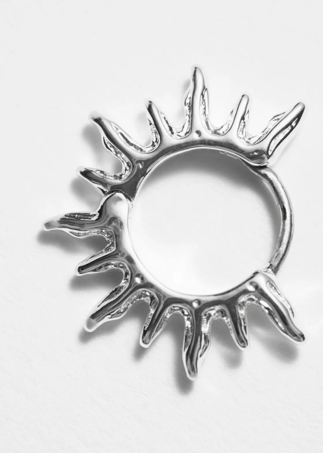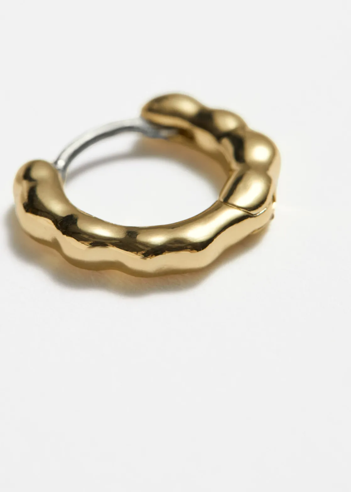 Easily create a coordinated stack with these hoop earrings, which includes one pair of spiky and one pair of hammared hoops that perfectly complement each other. Cast from high-shine plated brass.