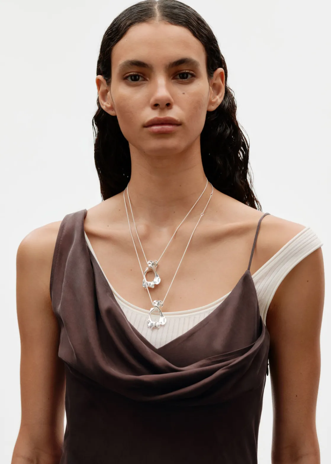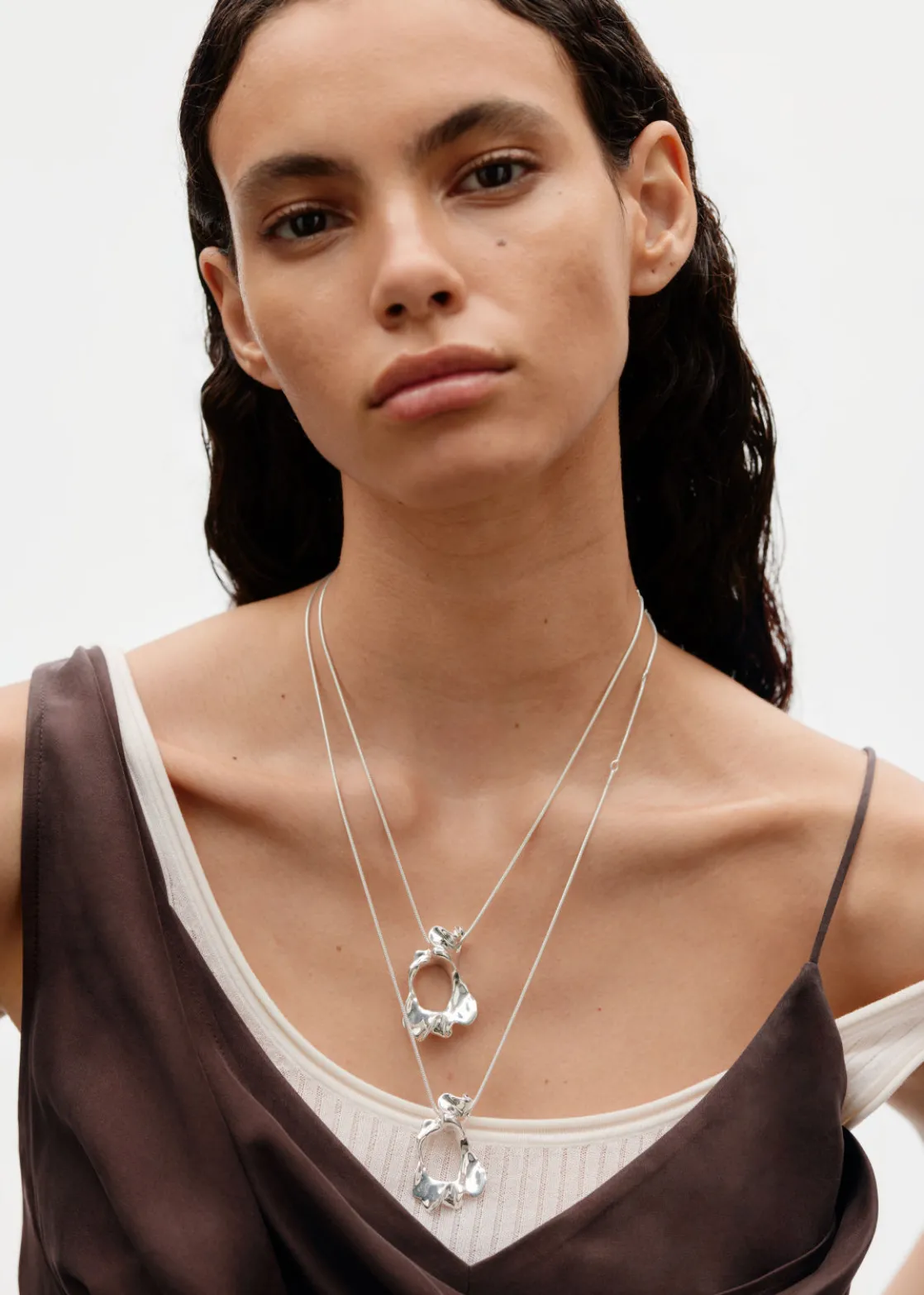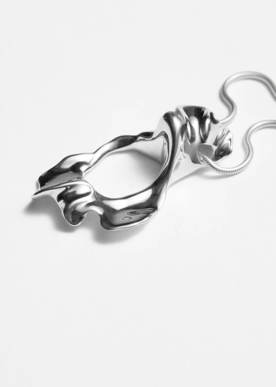 Despite its minimal silhouette, this necklace makes quite a statement as it’s strung with a striking organic shaped pendant. It’s crafted from sterling silver and is designed with a generous extension chain so you can customise the fit.