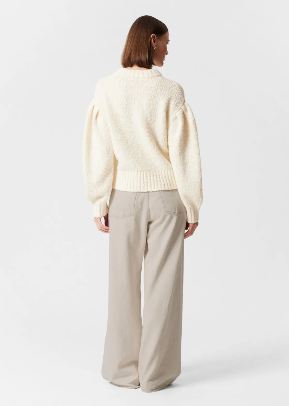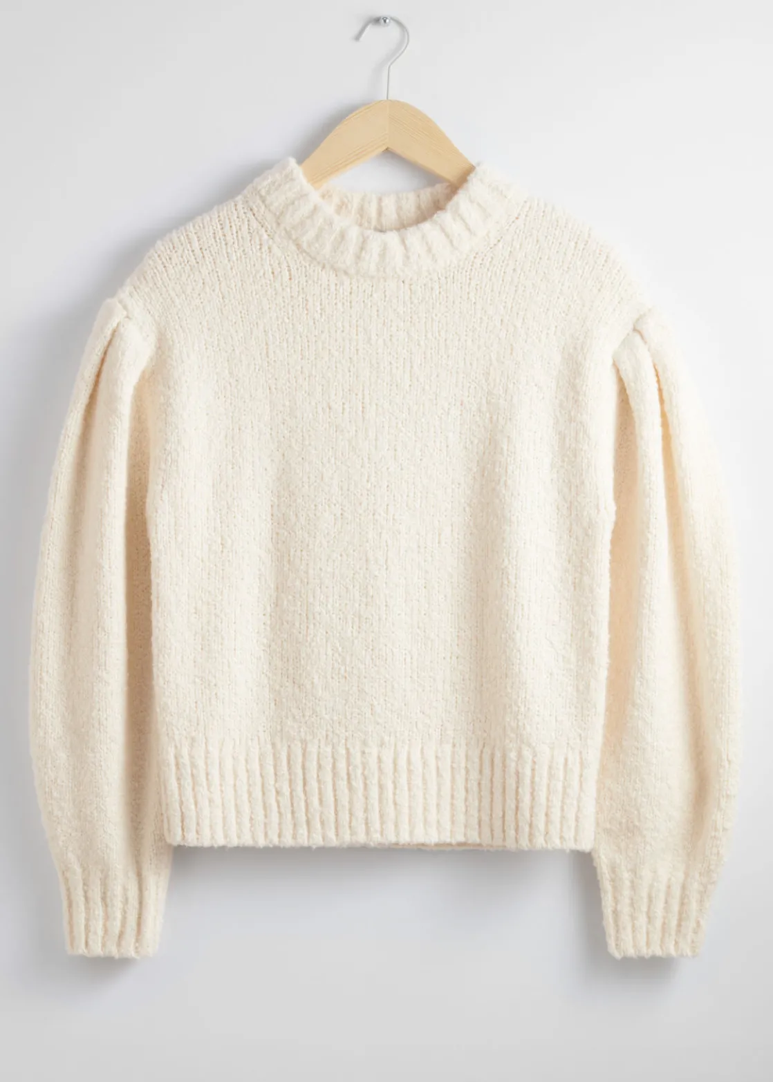 Oversized knit sweater featuring dropped puff sleeves.