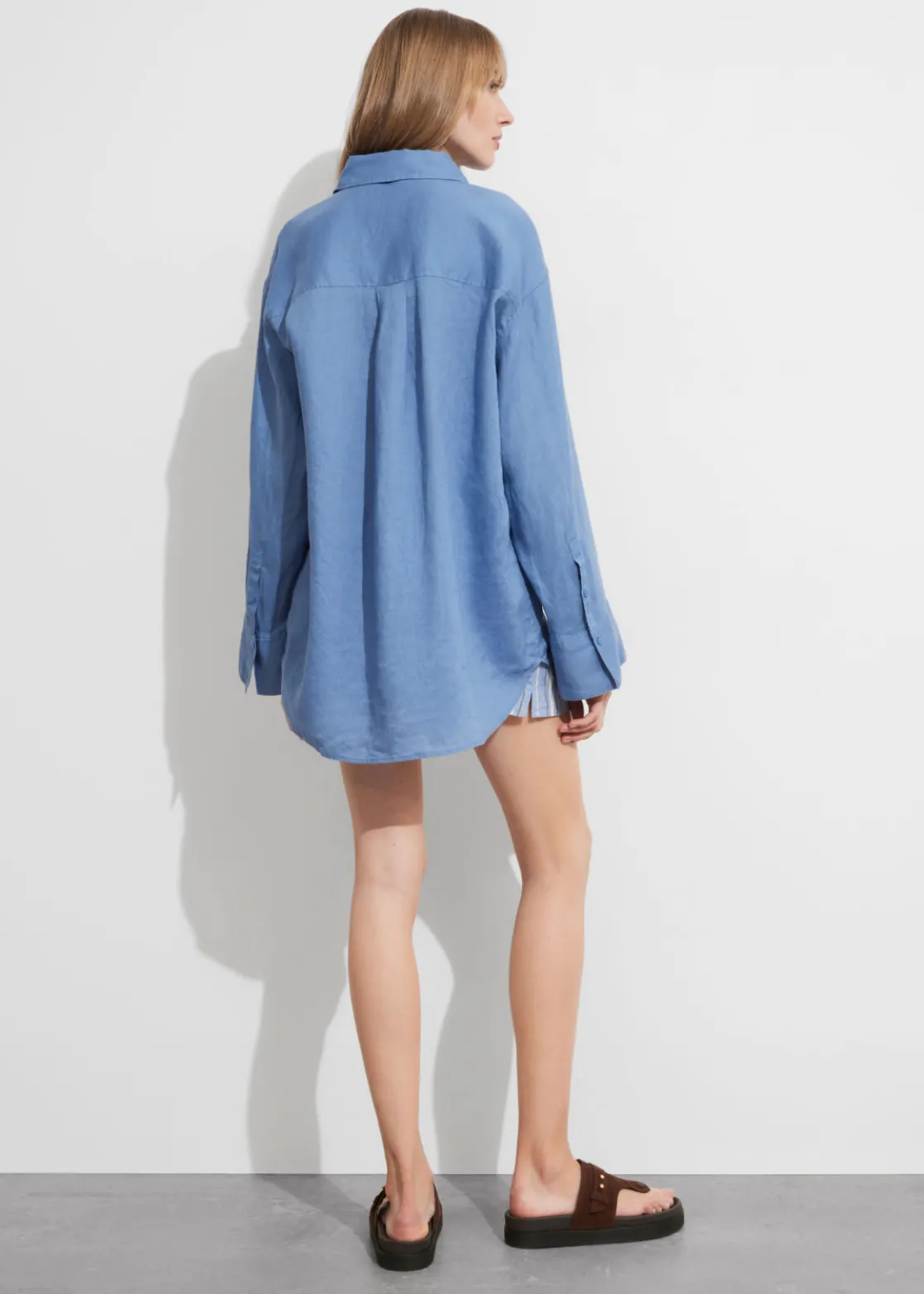 Linen shirt cut to an oversized silhouette. Traced with seven button closures.