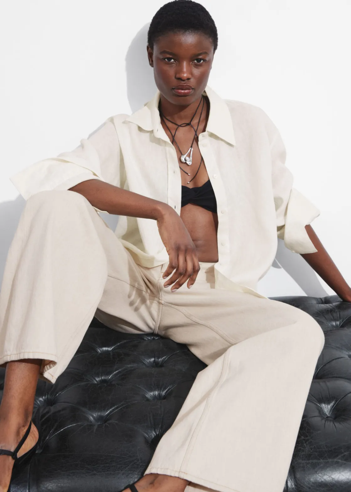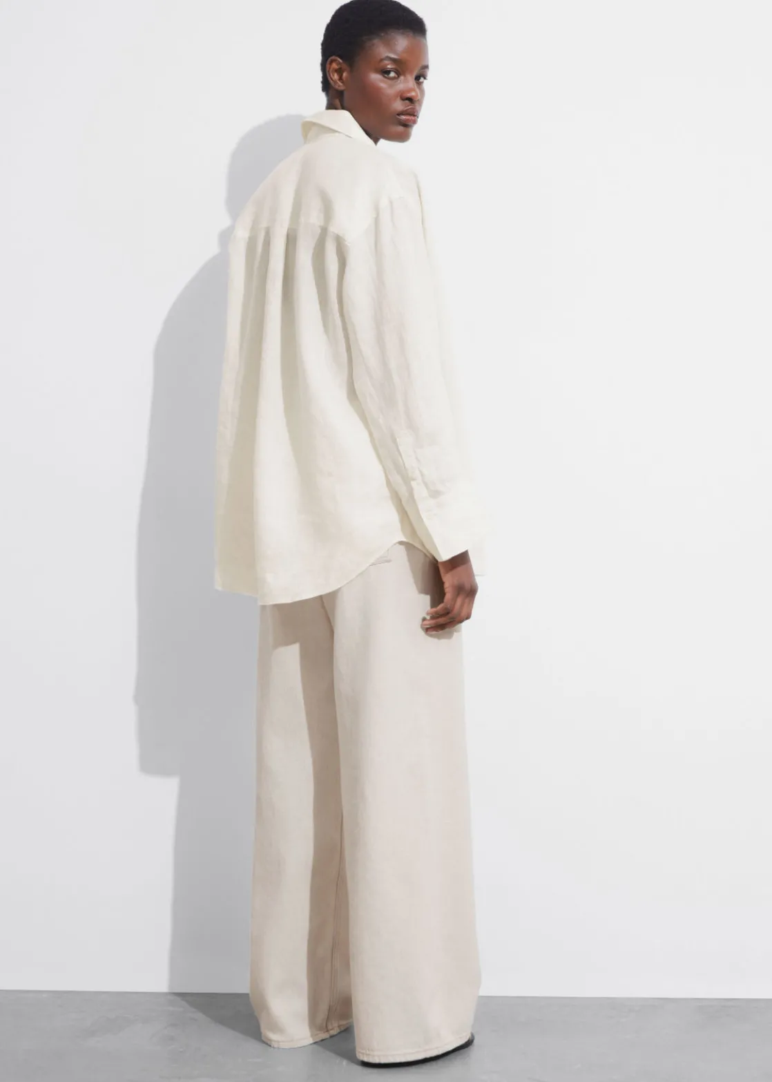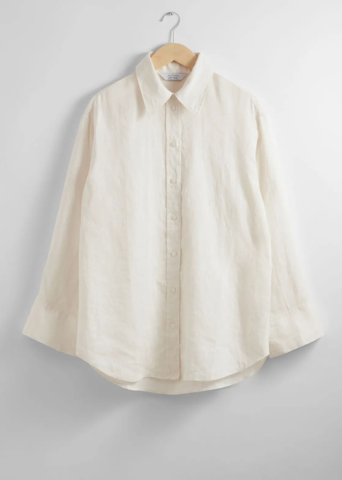Long-sleeve linen shirt with an oversized silhouette.