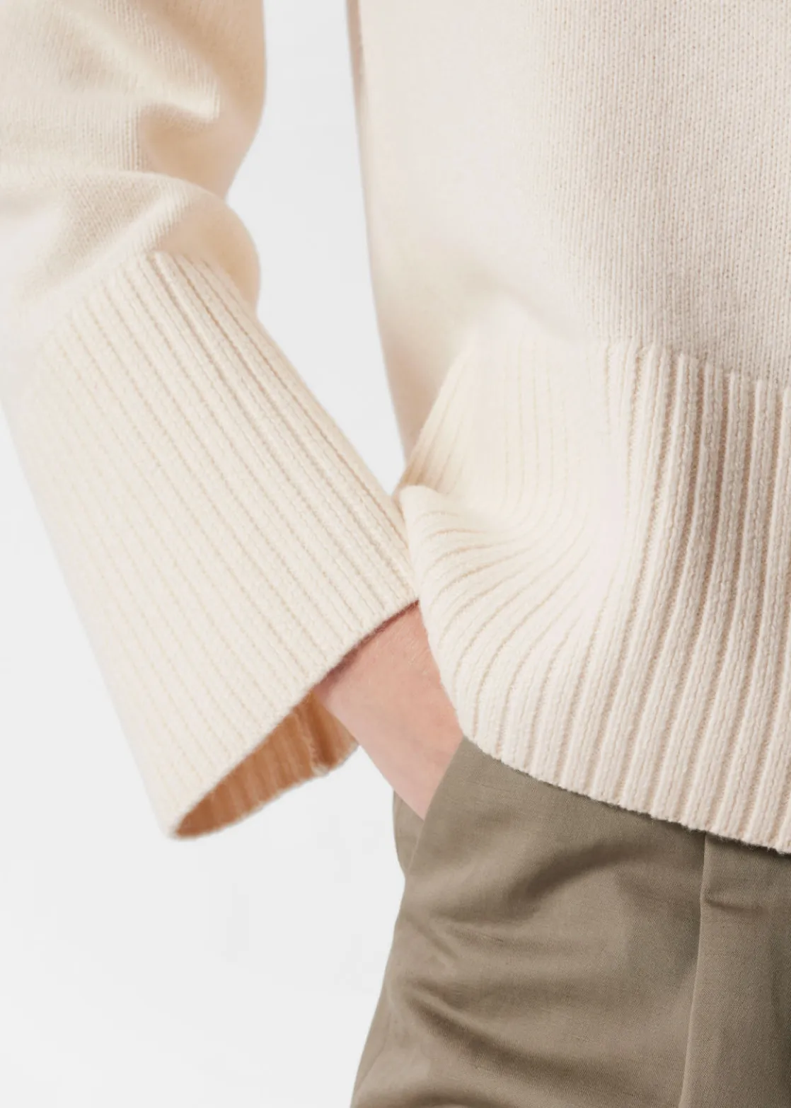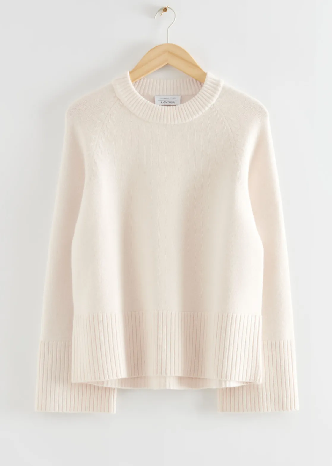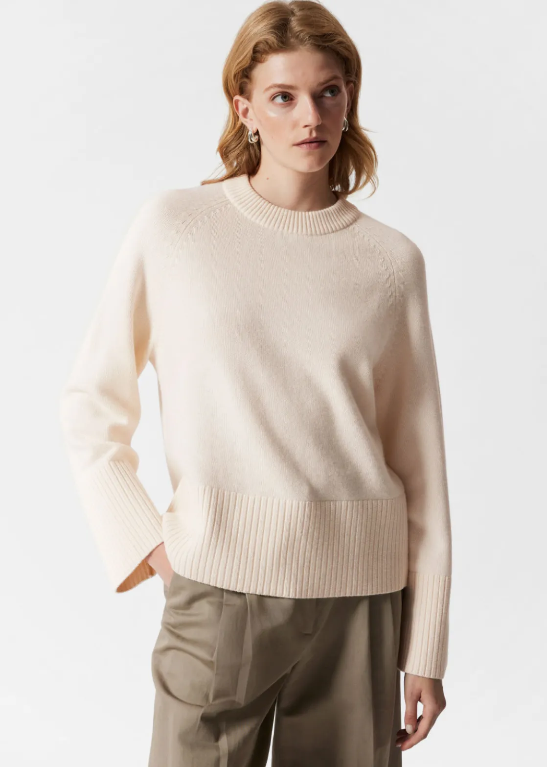 Oversized wool-blend sweater with raglan sleeves and a crewneck neckline. Ribbed trims.