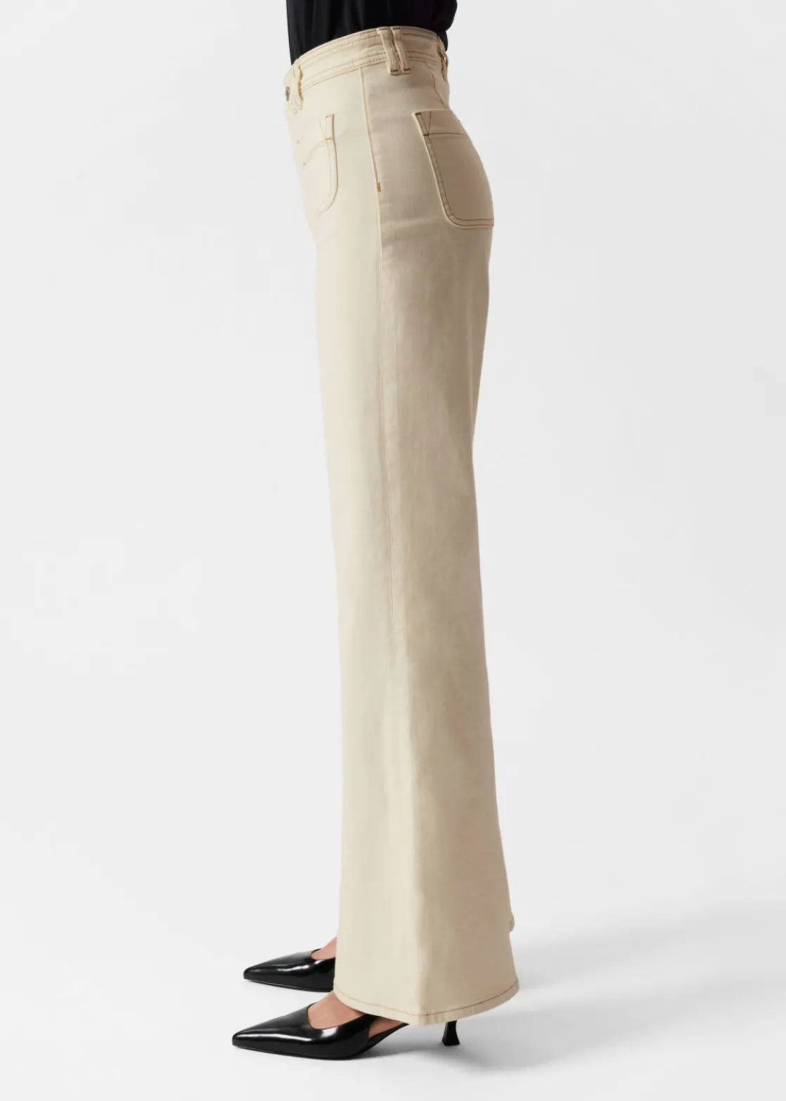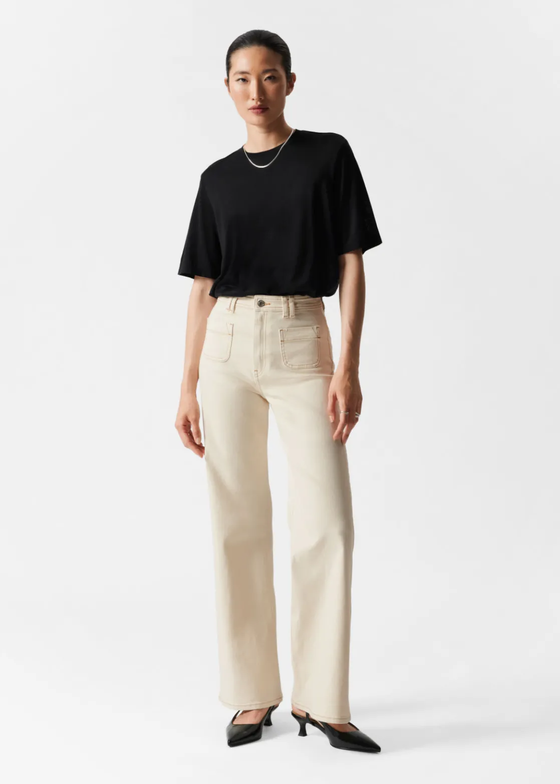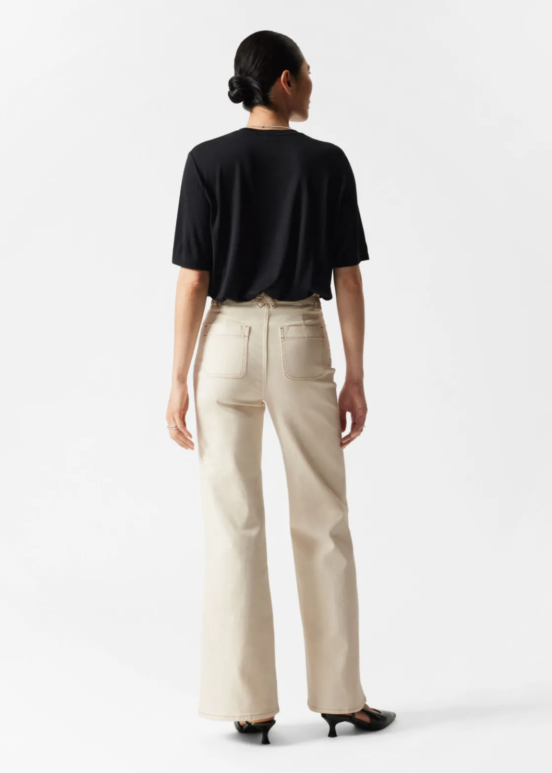 High-waist bootcut jeans detailed with patch pockets at the front and back.
