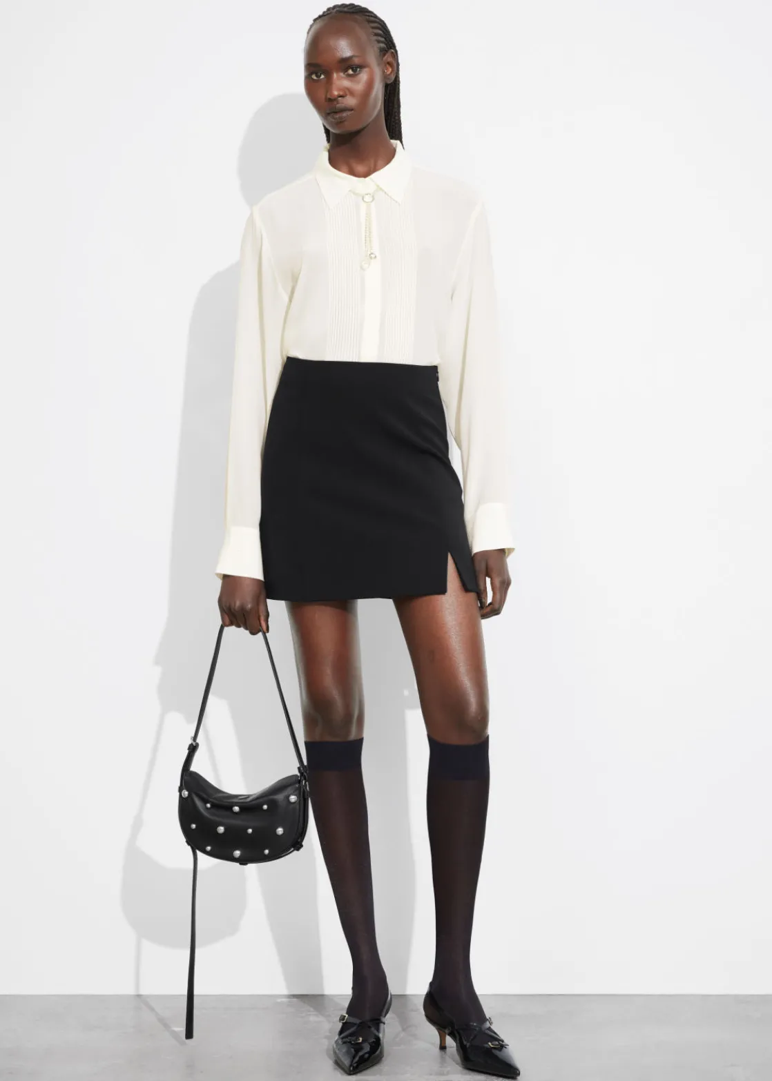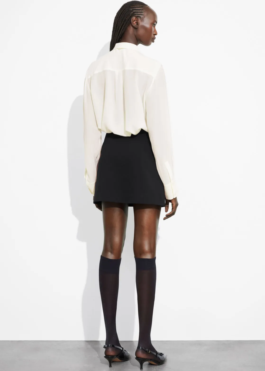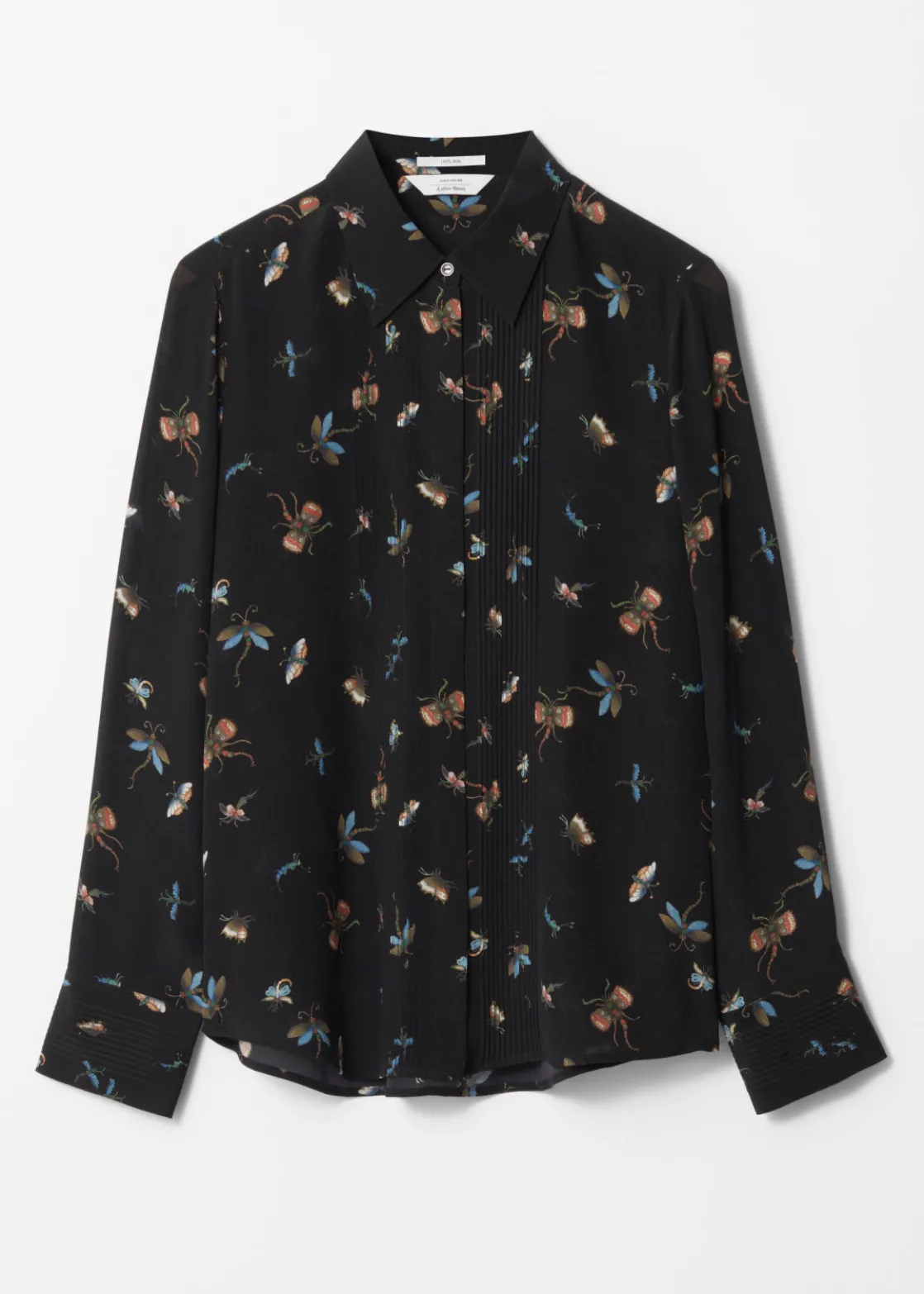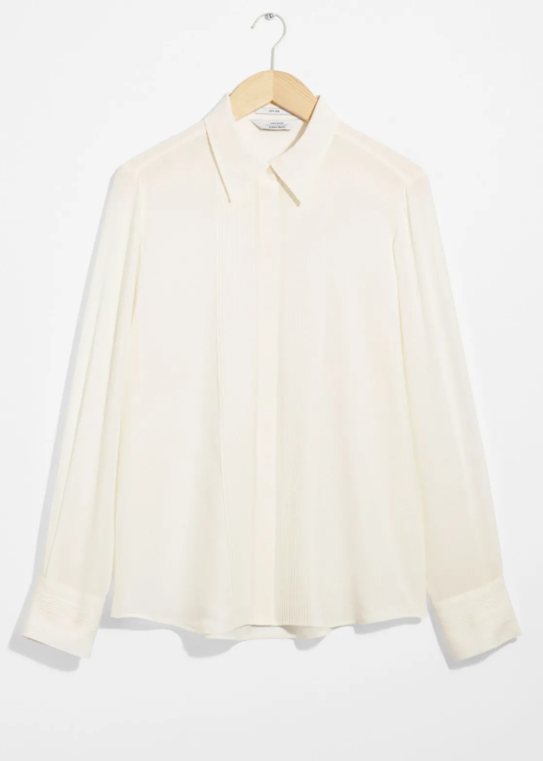 Long-sleeve shirt crafted from silk. Finished with pintuck detailing along the placket and at the cuffs.