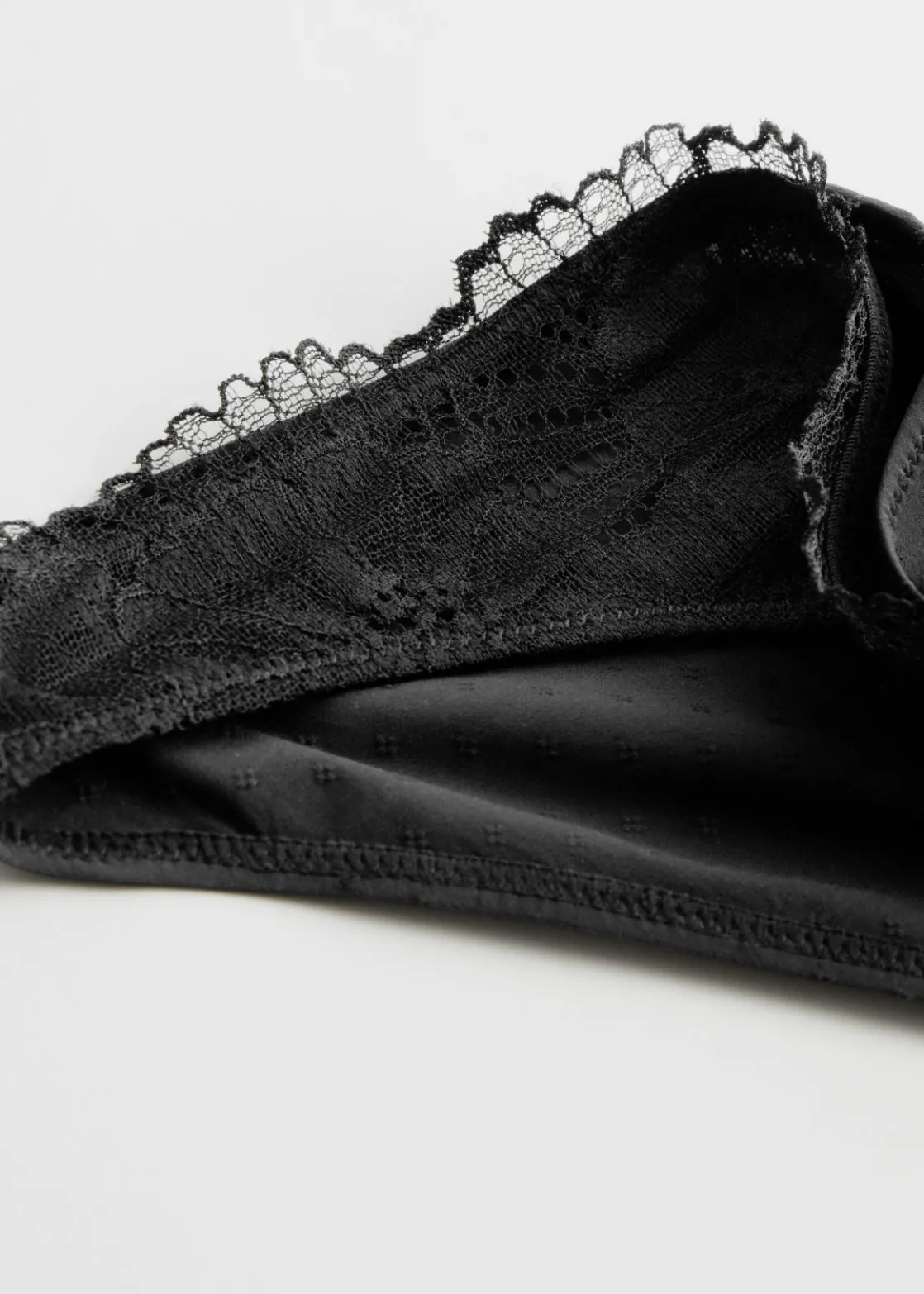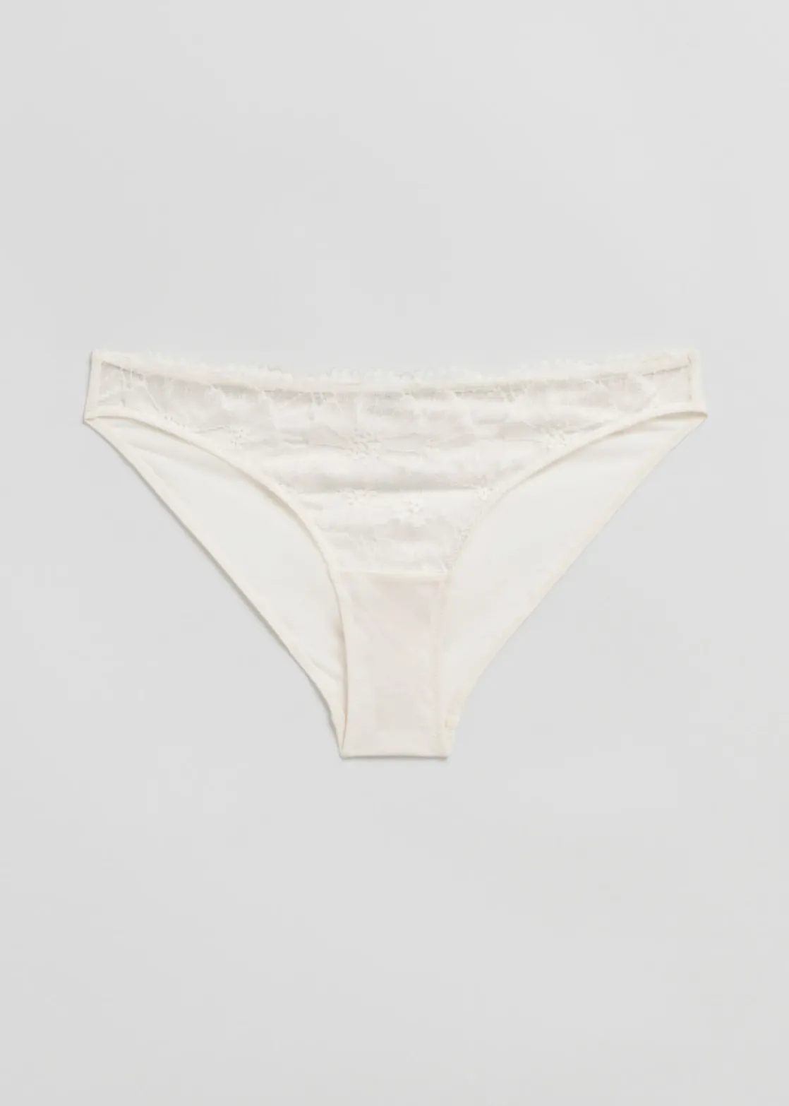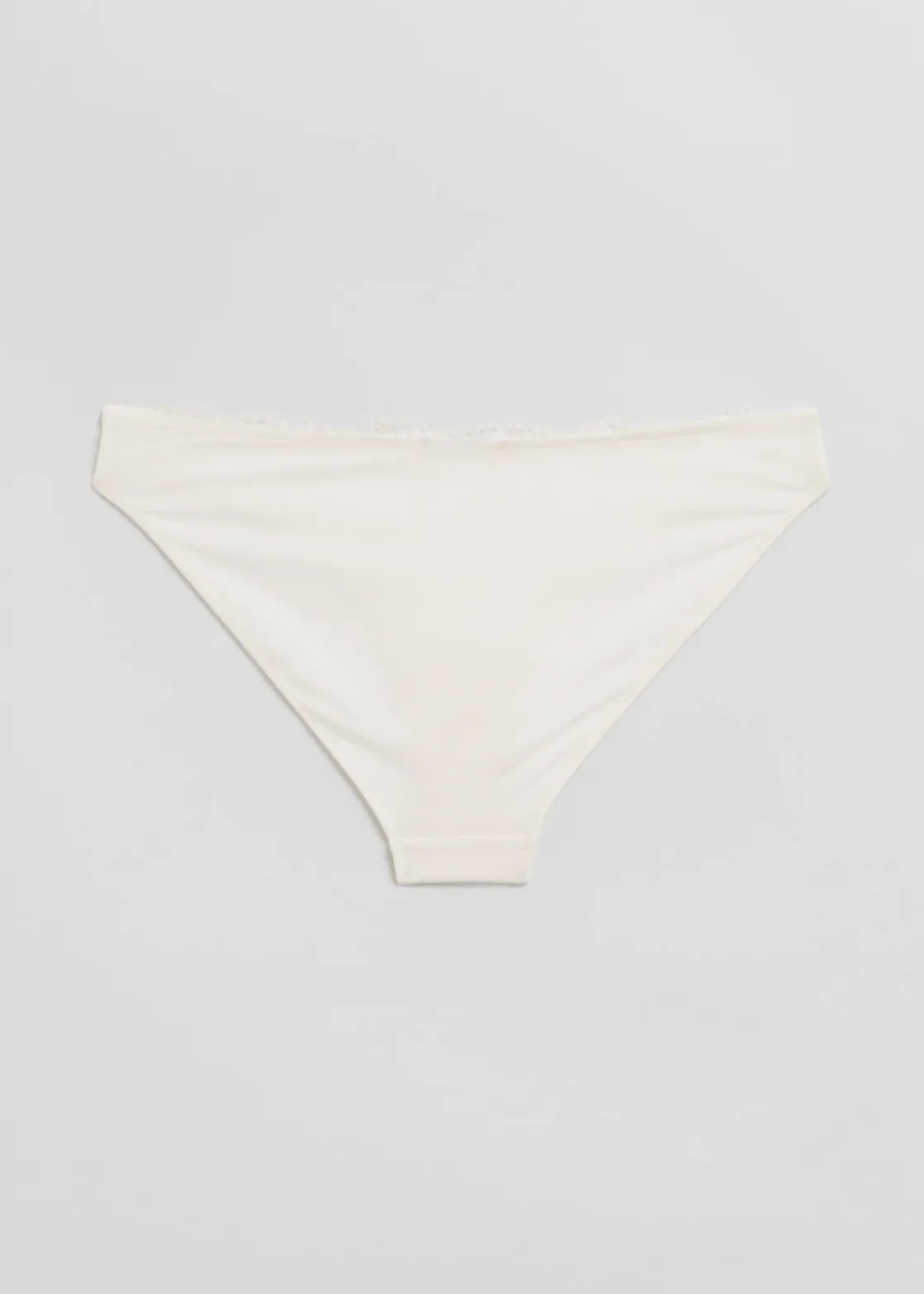 Briefs crafted in soft jersey and fancy elastic lace with an intricate floral lace pattern, scalloped edge and a cotton lined gusset.