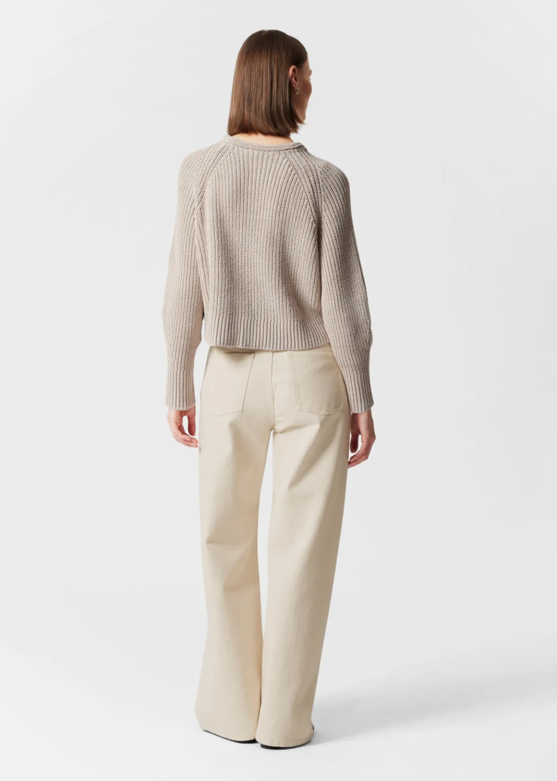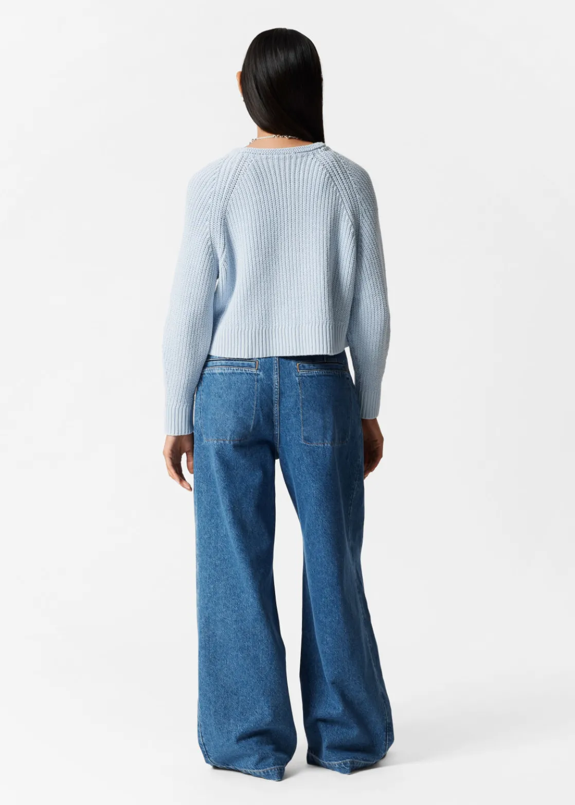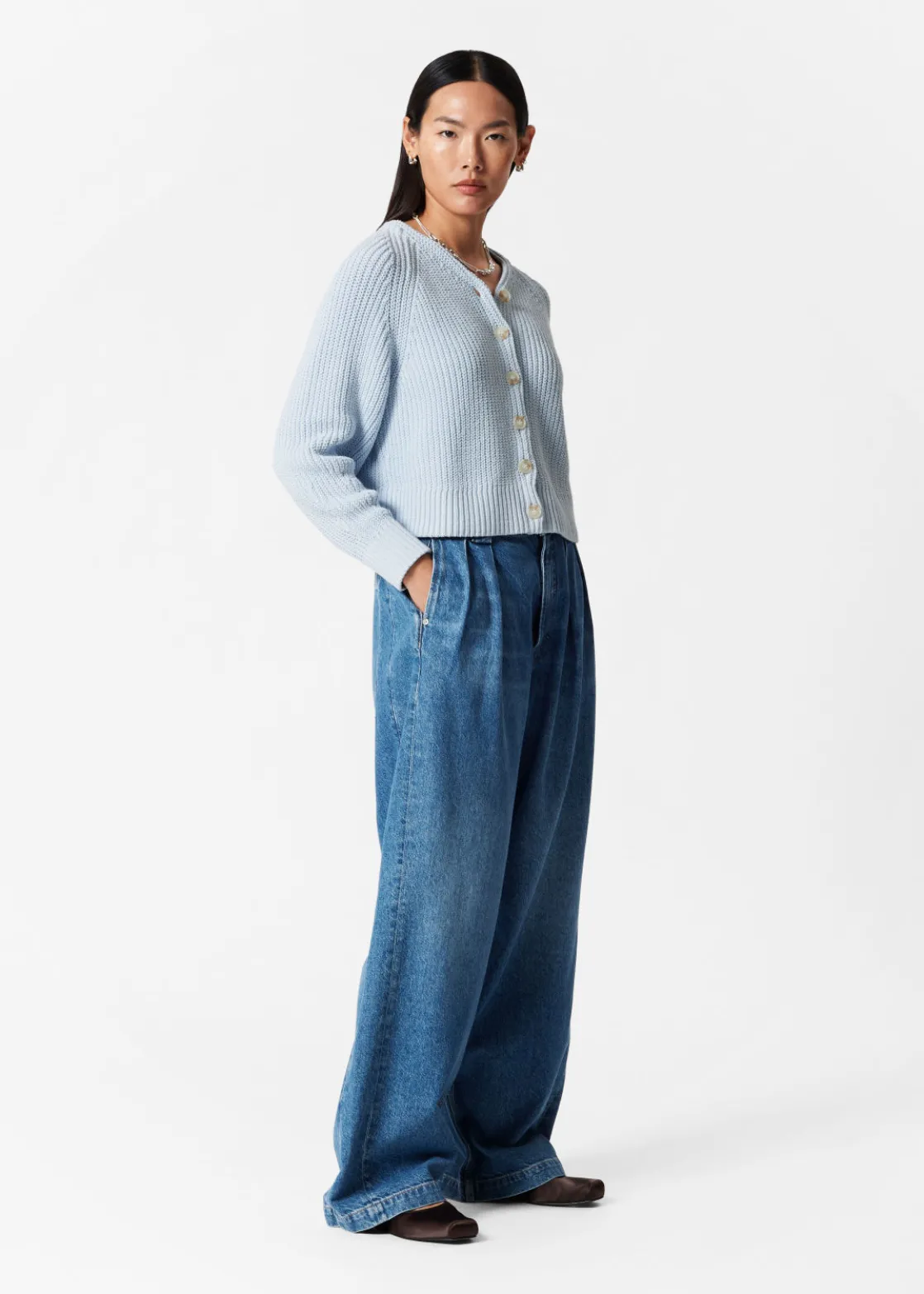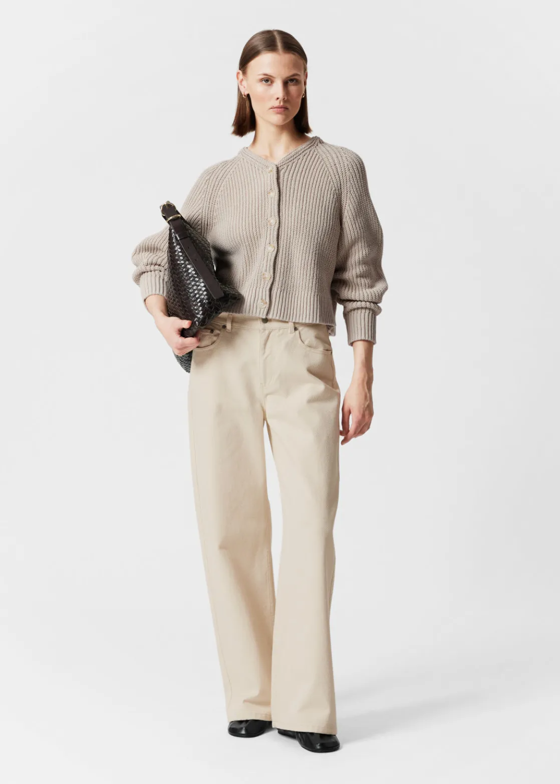 Long-sleeve v-cut knit cardigan with a ribbed finish.