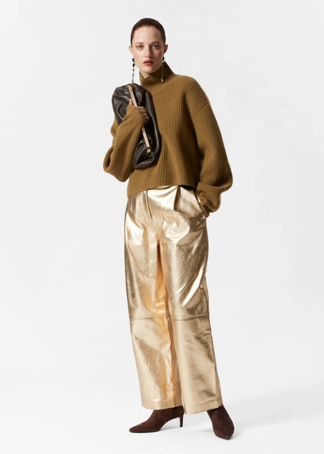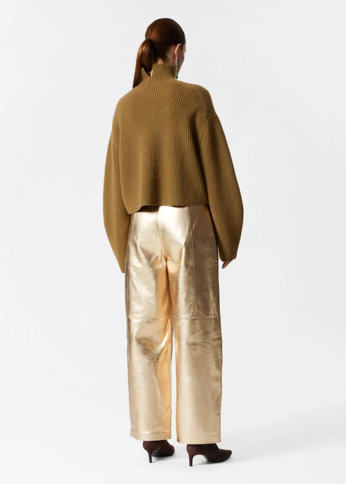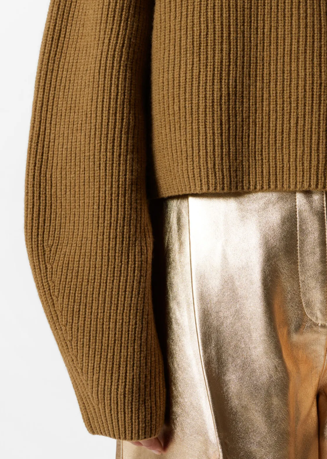 Rib-knit turtleneck jumper with softly rounded sleeves and a slit at the back of the neck.
