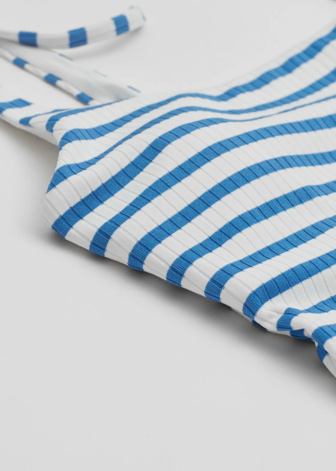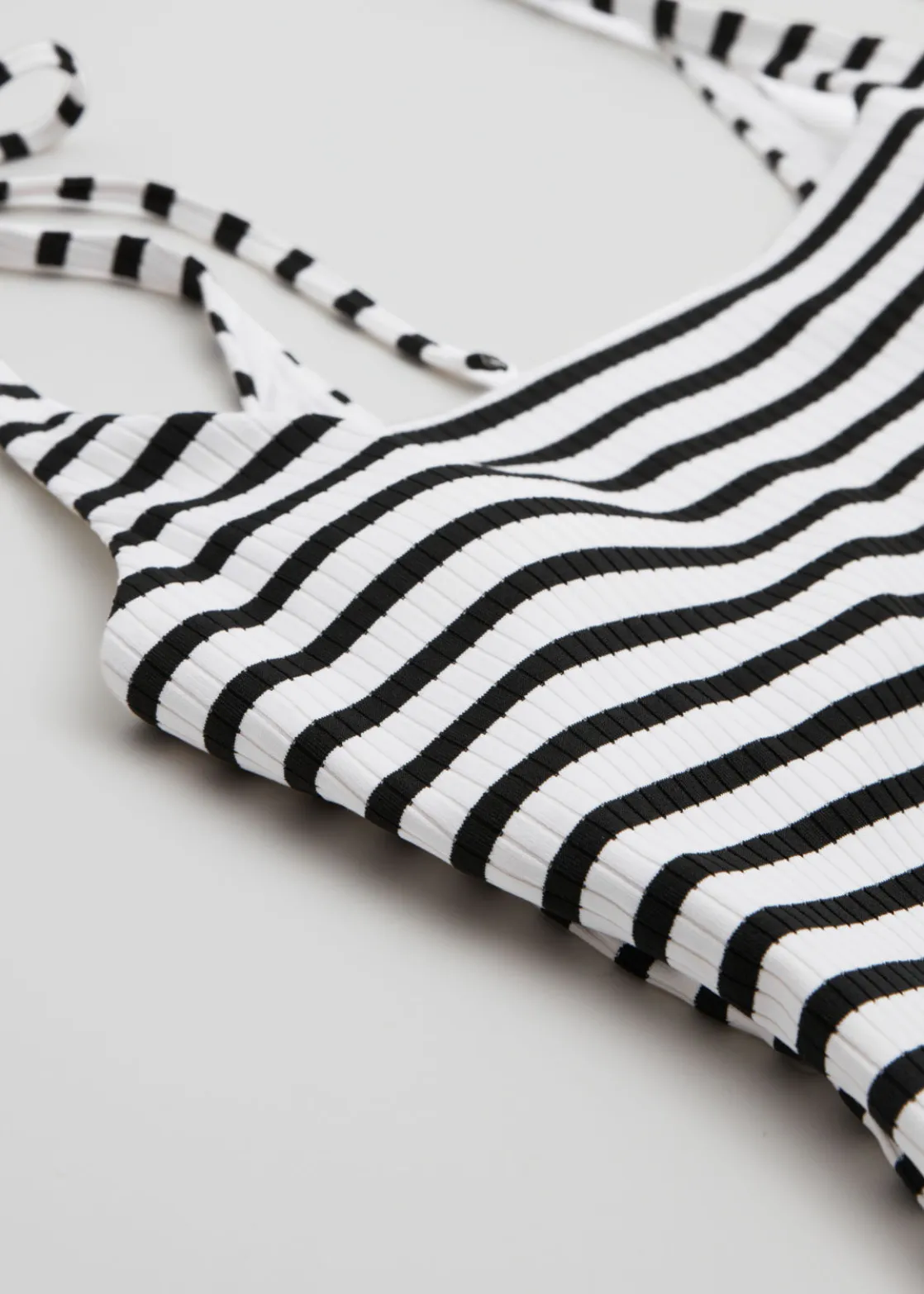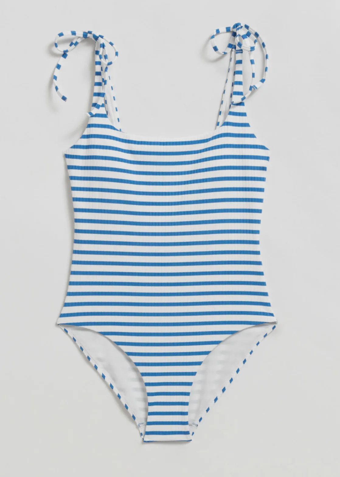 Swimsuit featuring a squared neckline, low back and a ribbed finish.