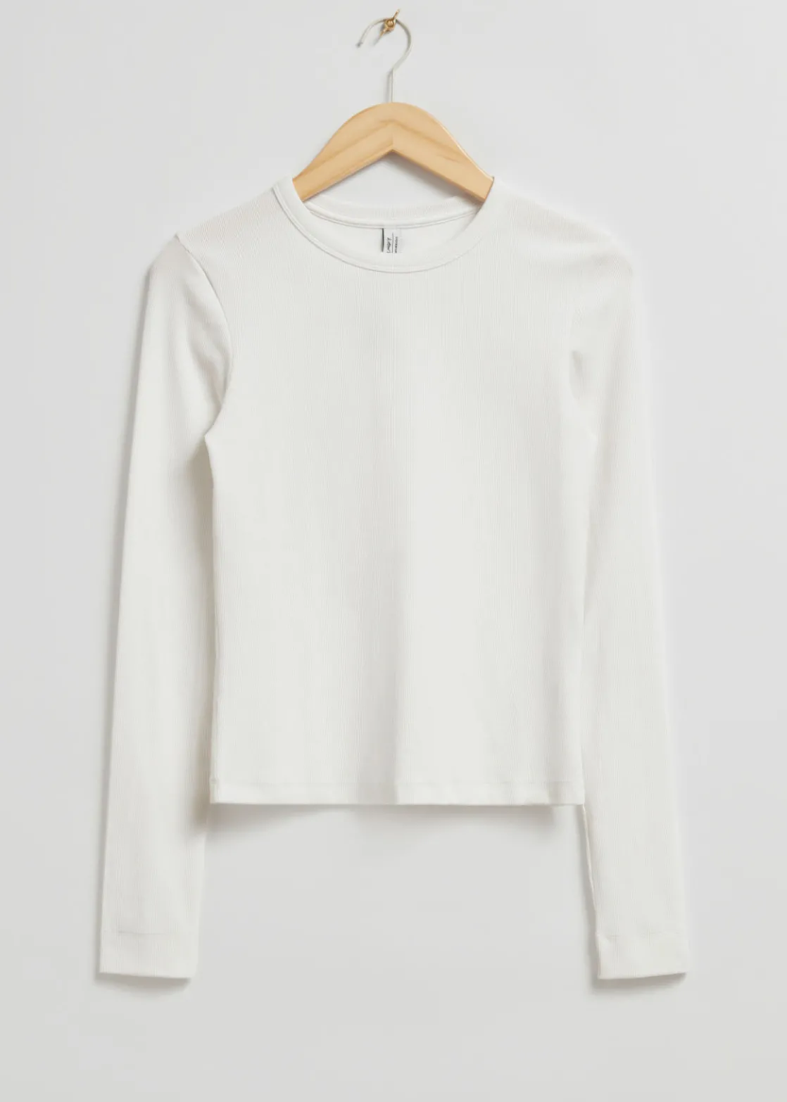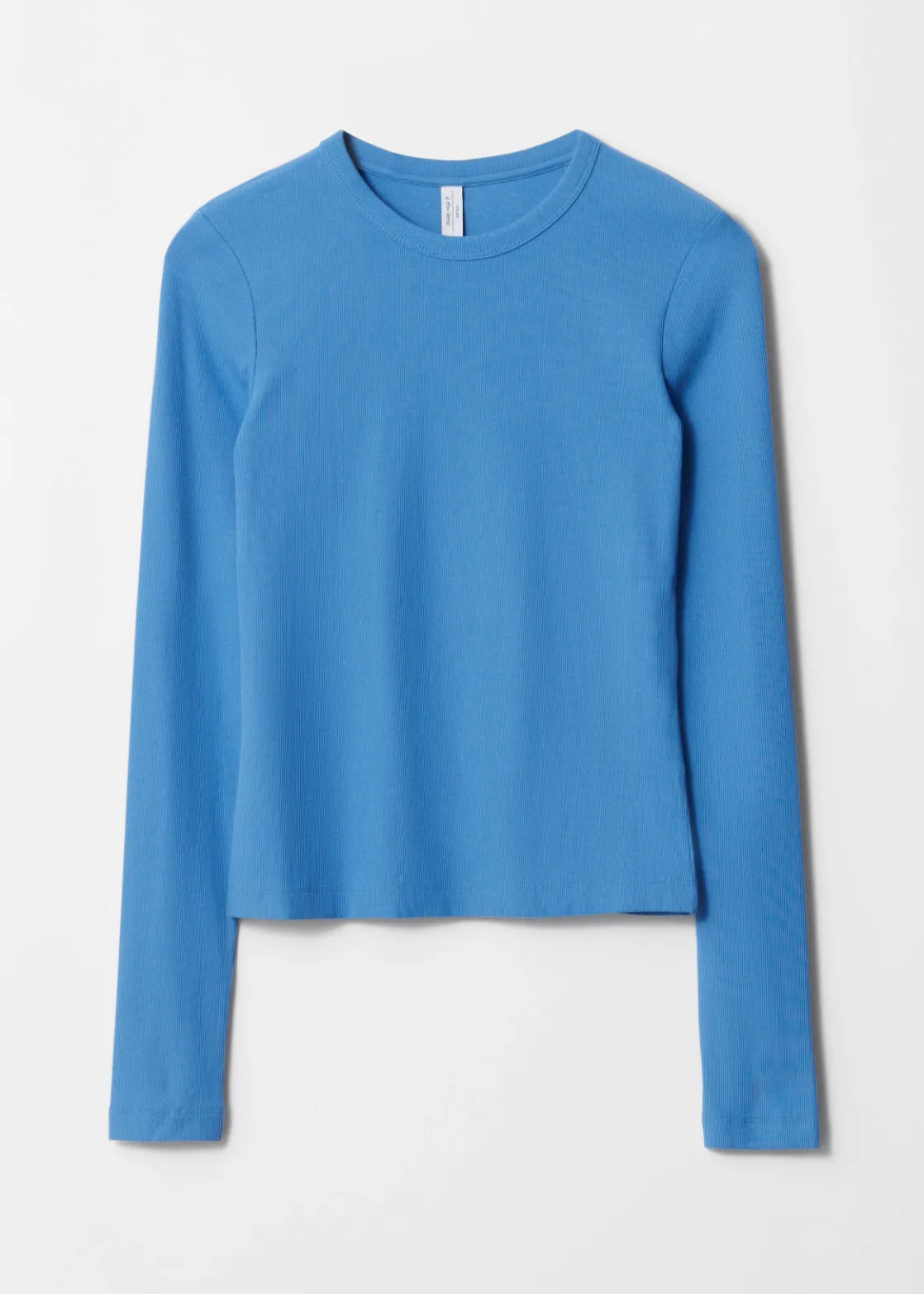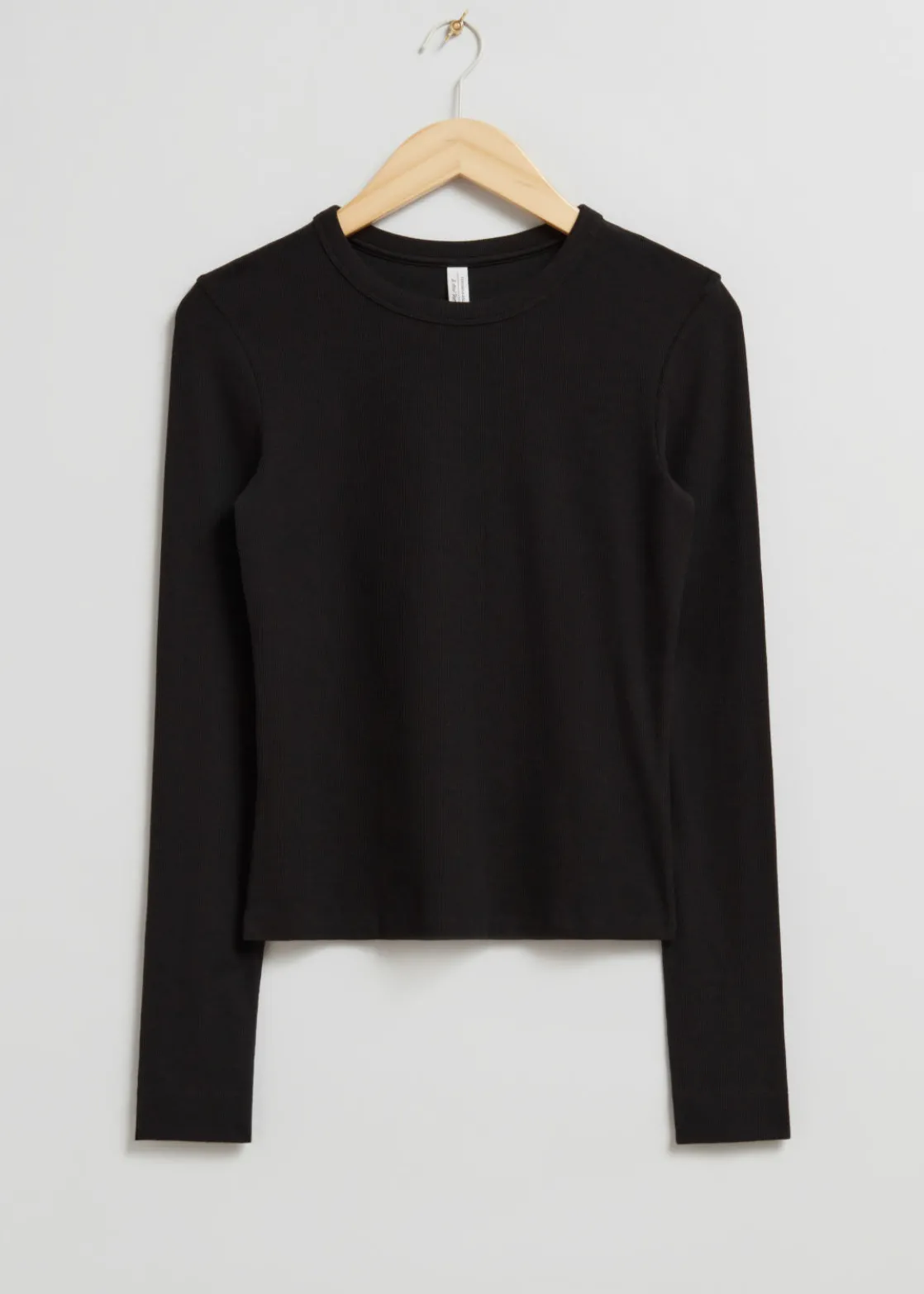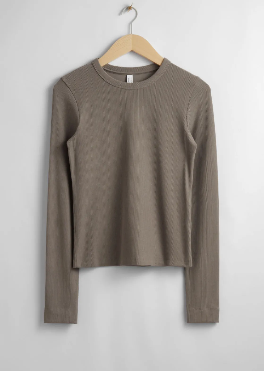 Fitted long-sleeve top with a ribbed finish and a round neckline.
