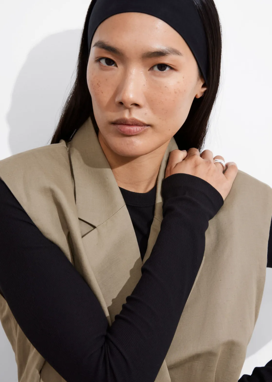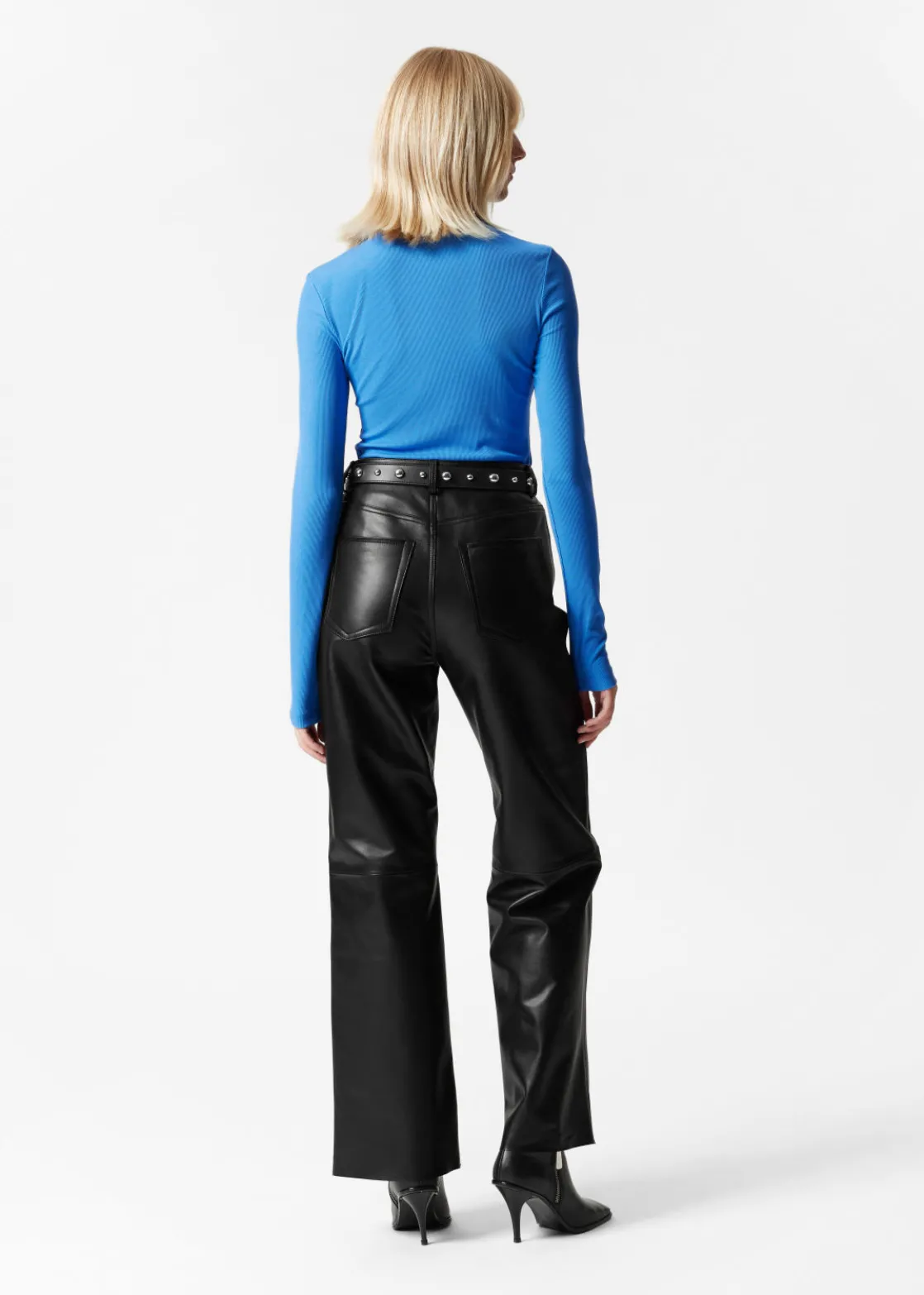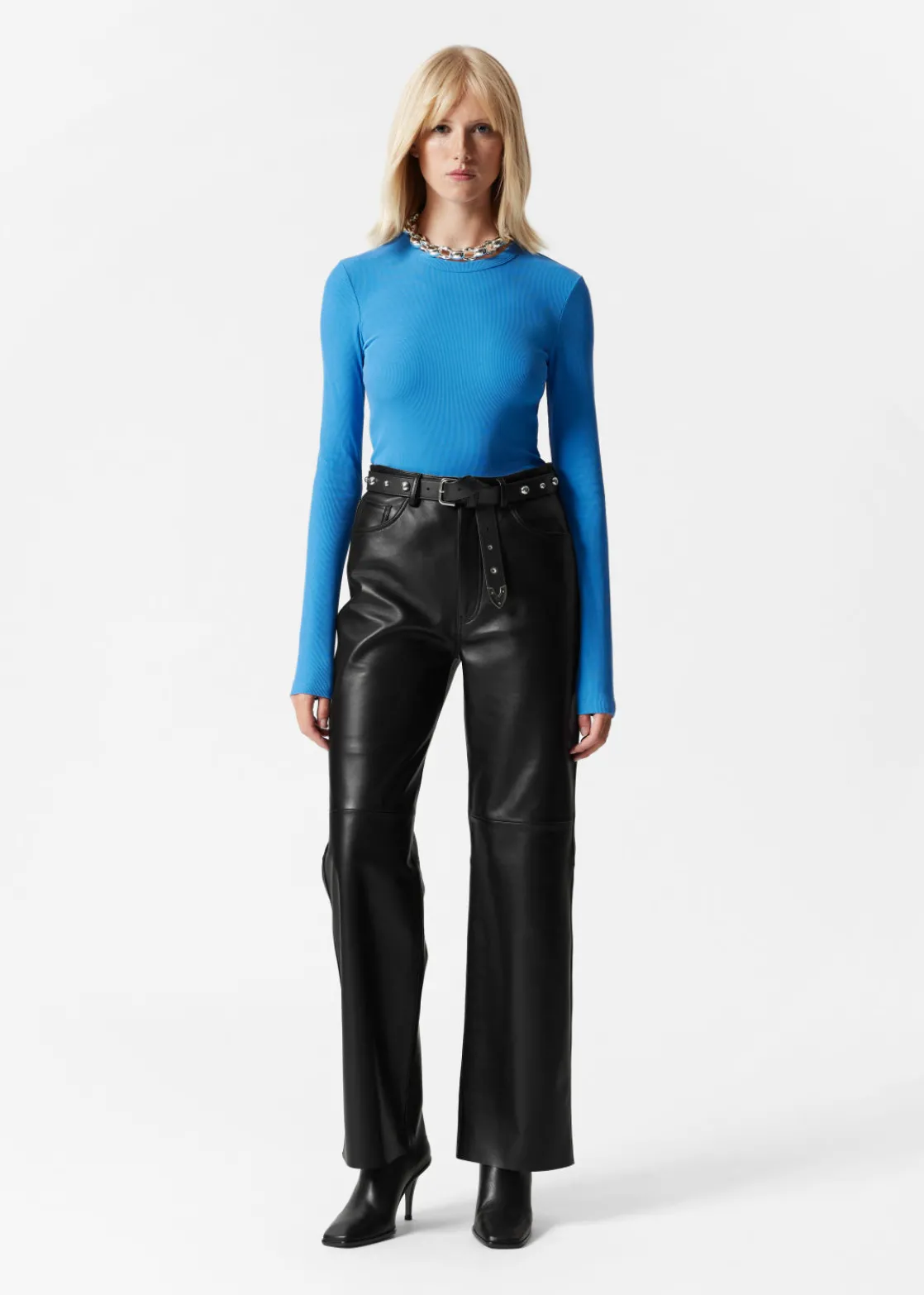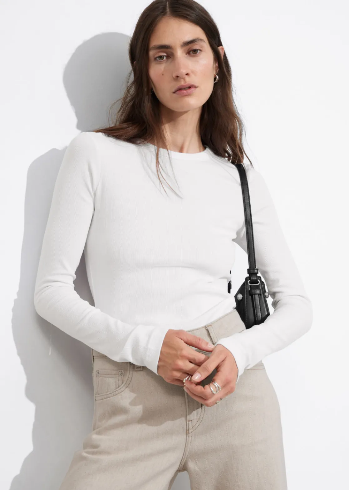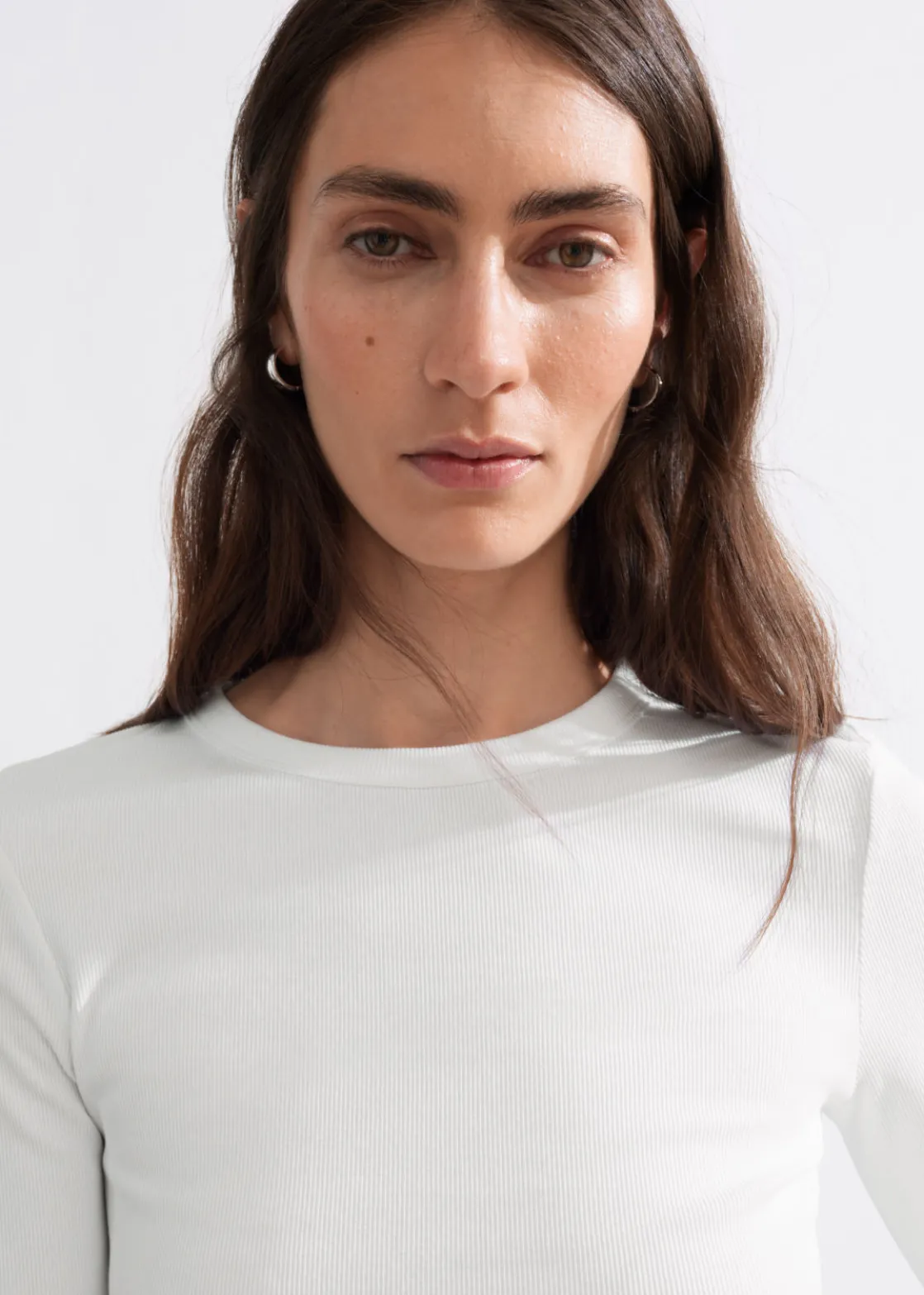 Fitted long-sleeve top with a ribbed finish and a round neckline.