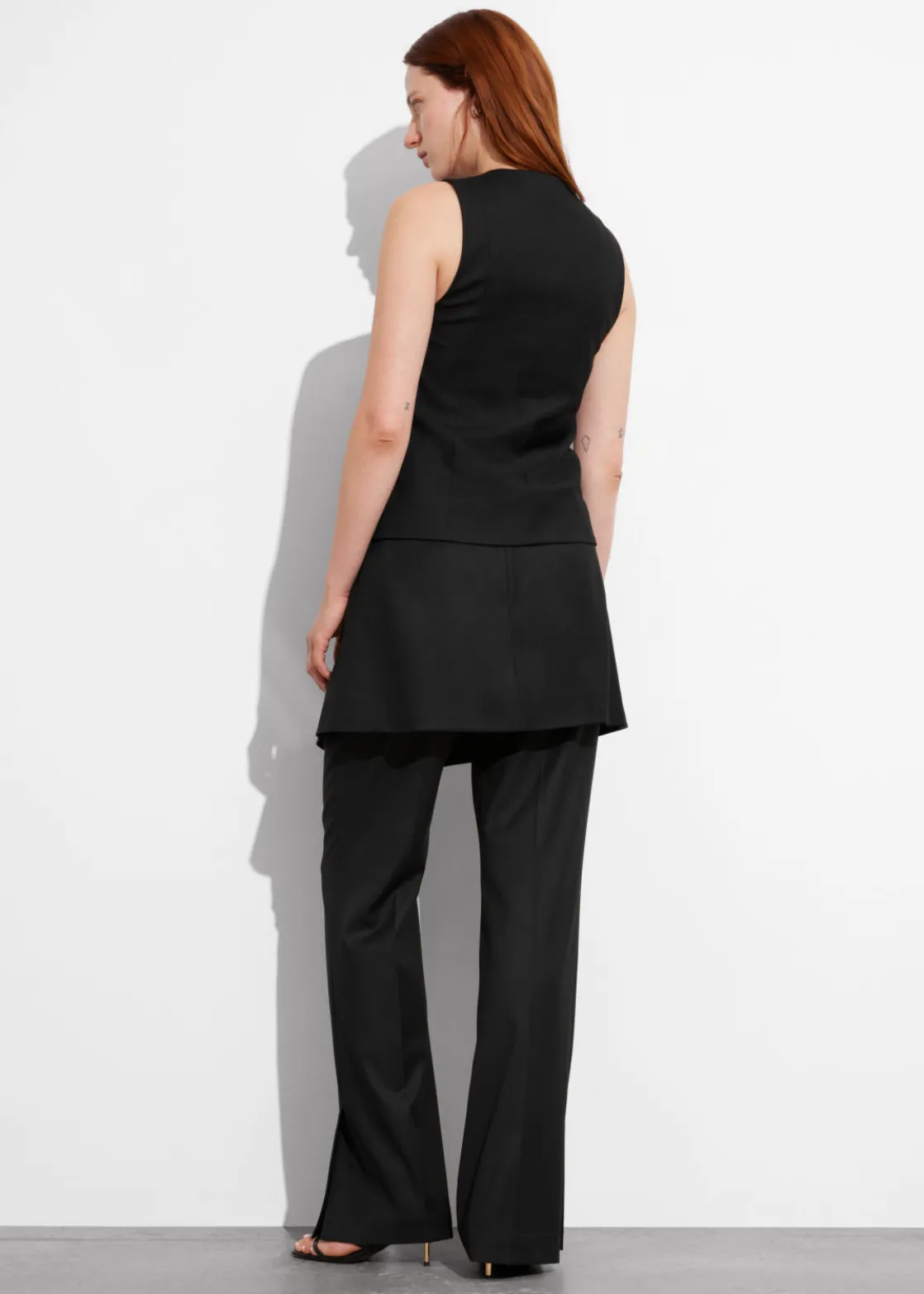 Tailored vest accented with a silver-toned ring at one shoulder.